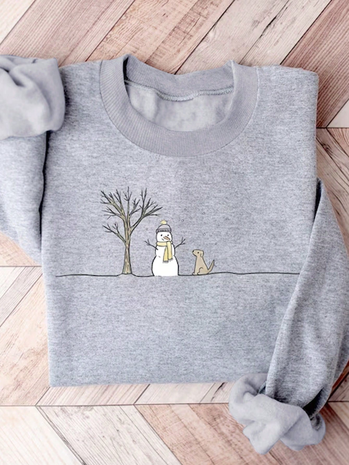 Cozy Snowman Print Sweatshirt for Women - Perfect for Winter Vibes