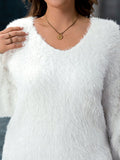 Cozy Up in Style: Plus Size Solid Color Fuzzy Knit Sweater for Autumn & Winter