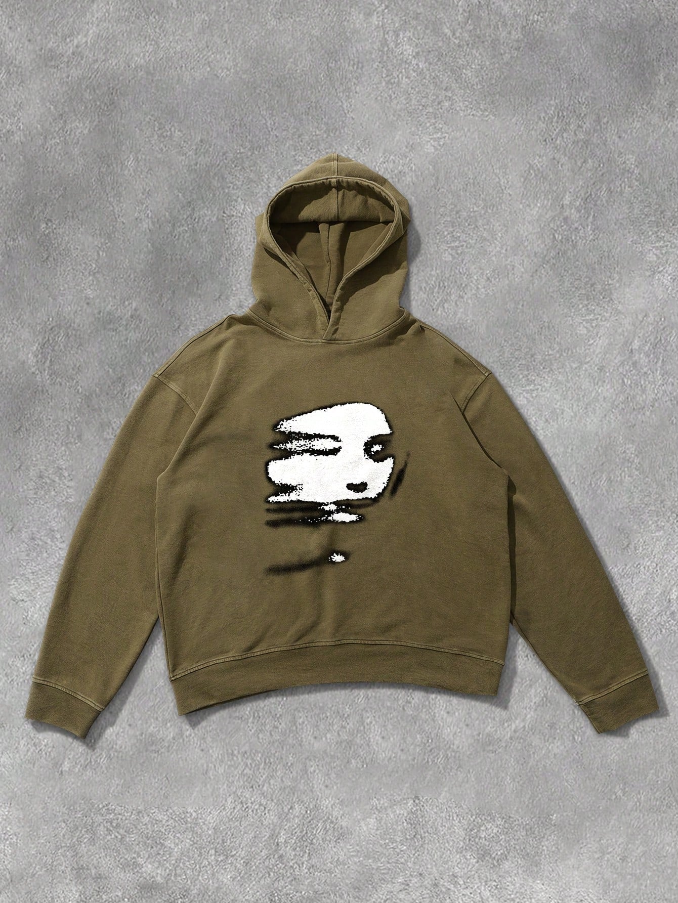 Cozy Vintage Washed Hooded Sweatshirt with Unique Snowflake Human Figure Print