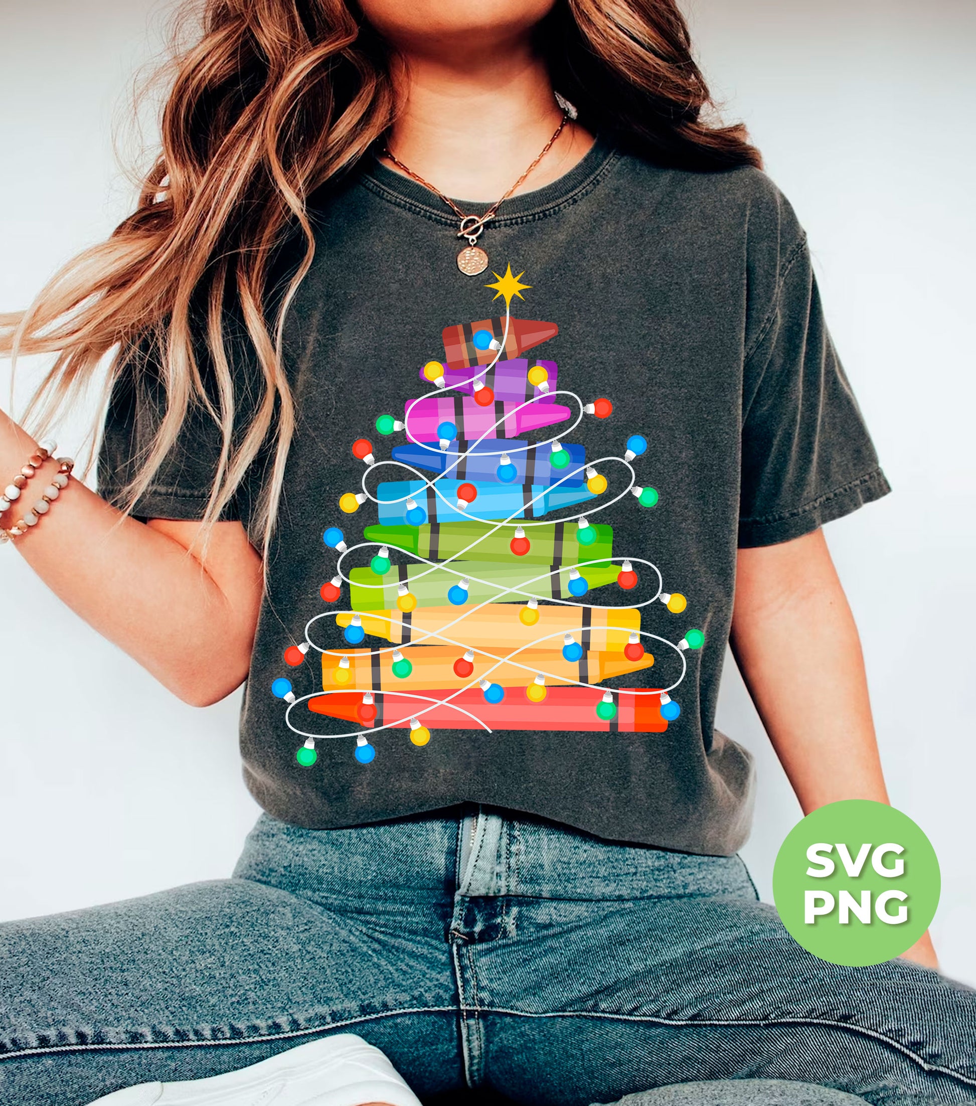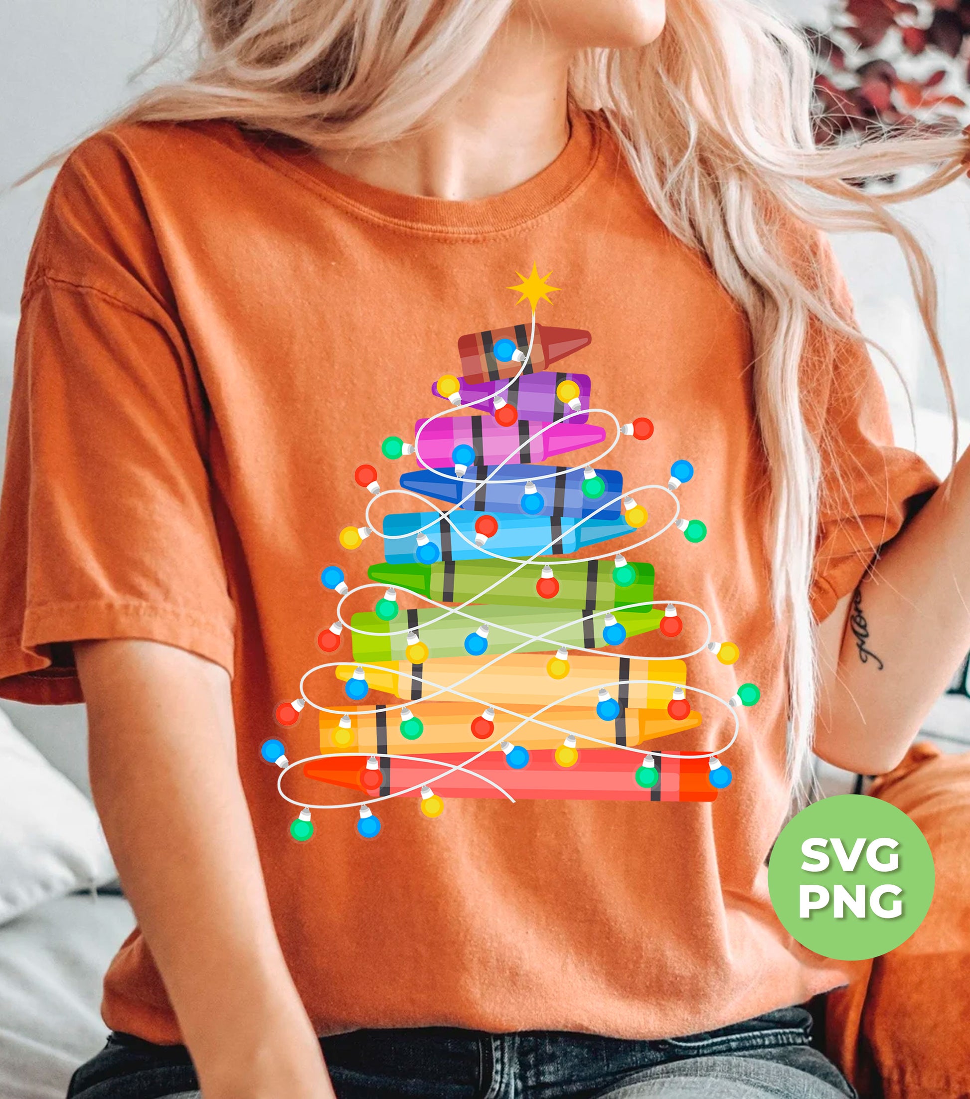 Crayon Xmas Tree, Xmas Tree Made From Crayon, Xmas Lights, Digital Files, Png Sublimation