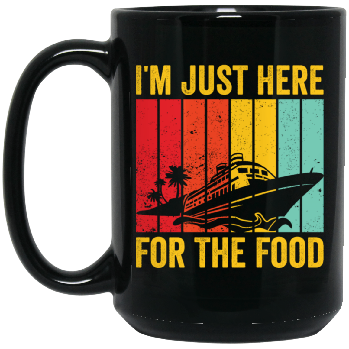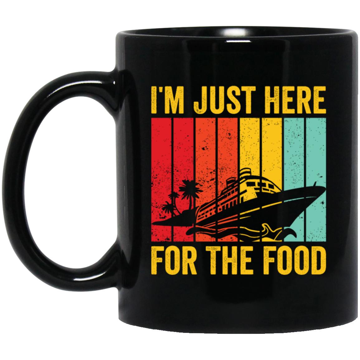 Cruising Gift, Retro Cruiser Ship, I Am Just Here For The Food, Vintage Ship Black Mug
