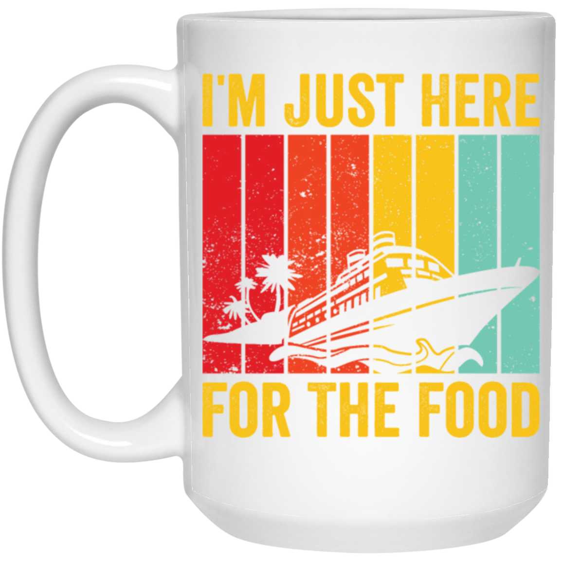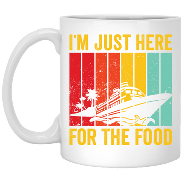Cruising Gift, Retro Cruiser Ship, I Am Just Here For The Food, Vintage Ship White Mug