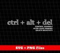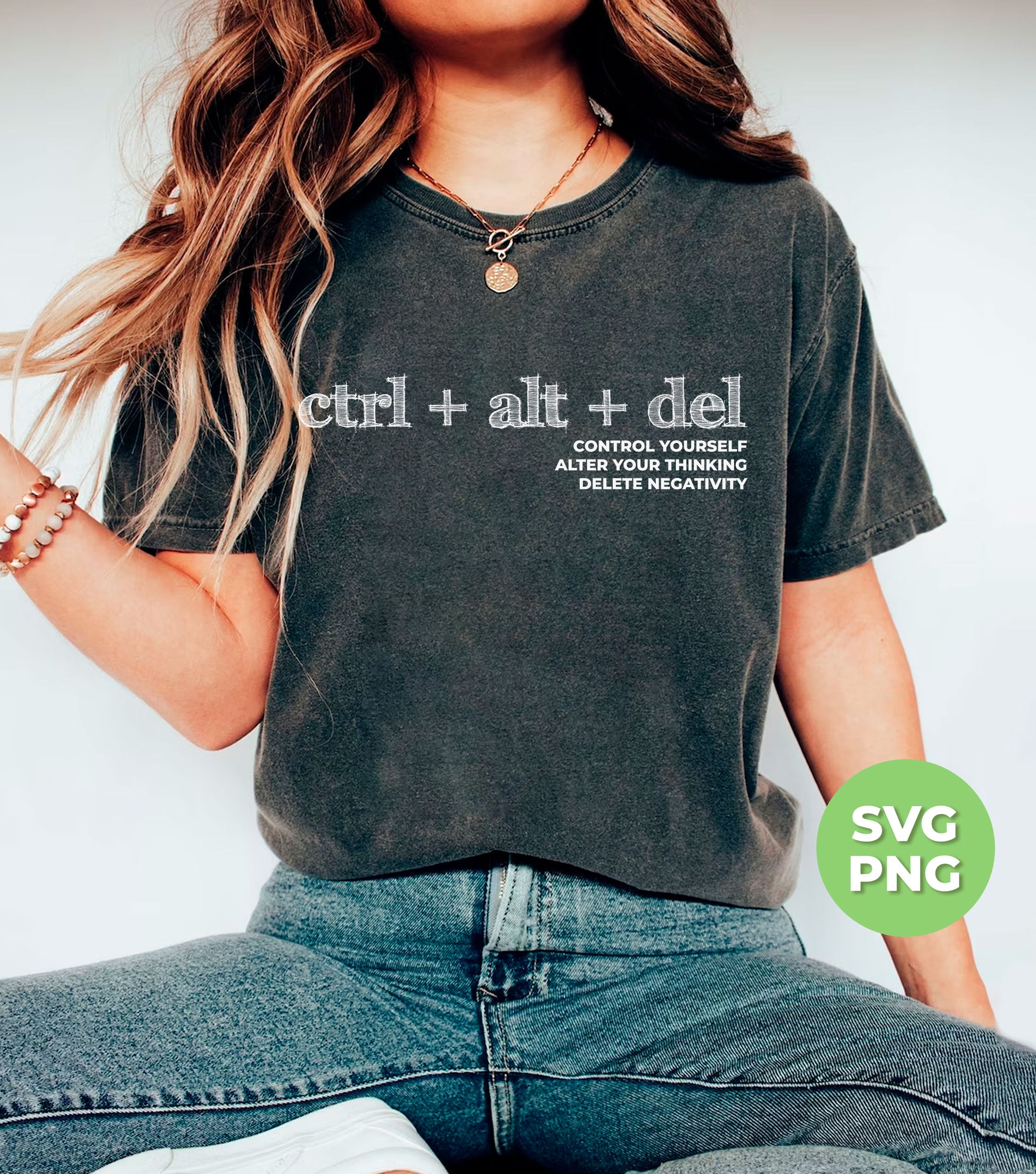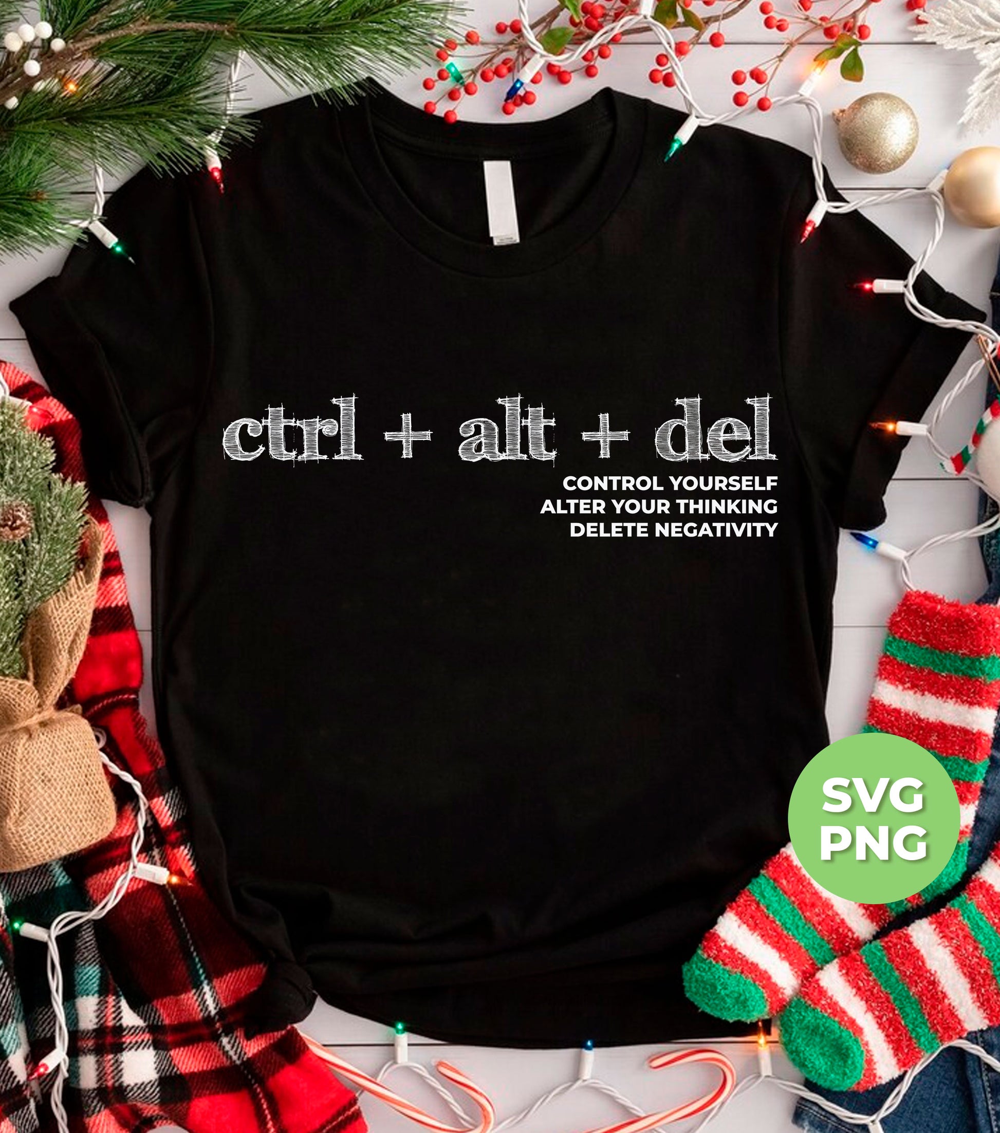 Ctrl Alt Del, Control Yourself, Alter Your Thinking, Delete Negativity, Digital Files, Png Sublimation
