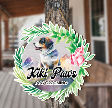 Custom Dog Grooming Wooden Sign, Personalized Flower Plywood Sign WS62