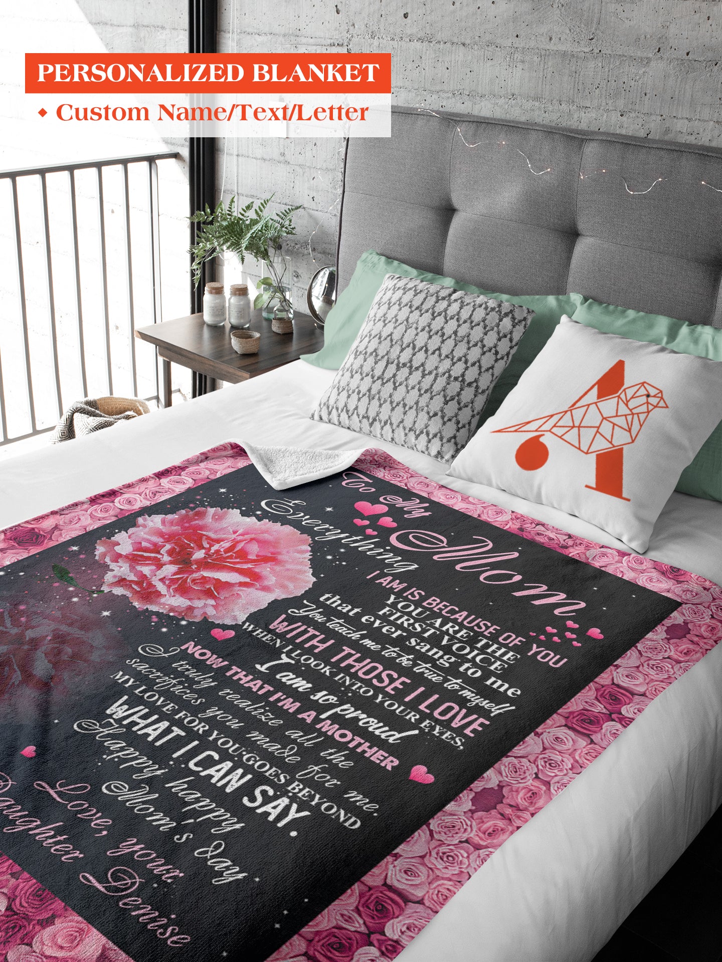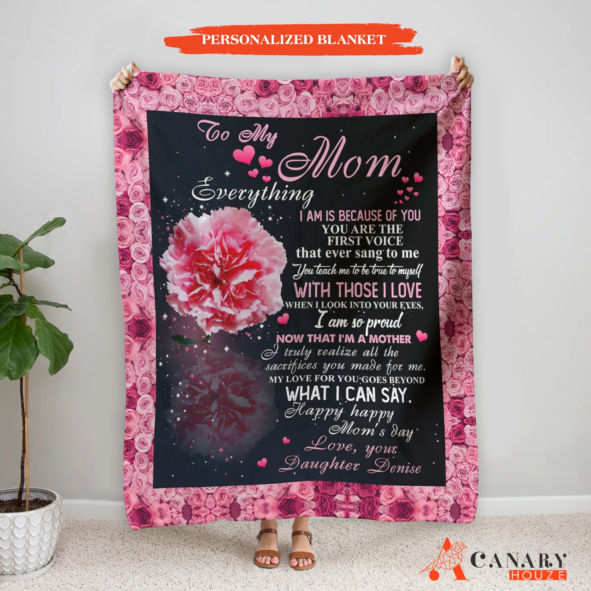 Custom Name Blanket Gift, Mother's Day Gifts, Love My Mom, Love Pink Peony BL138