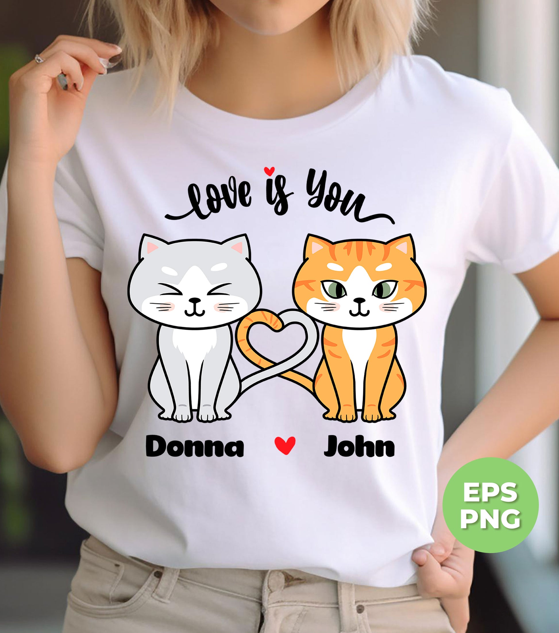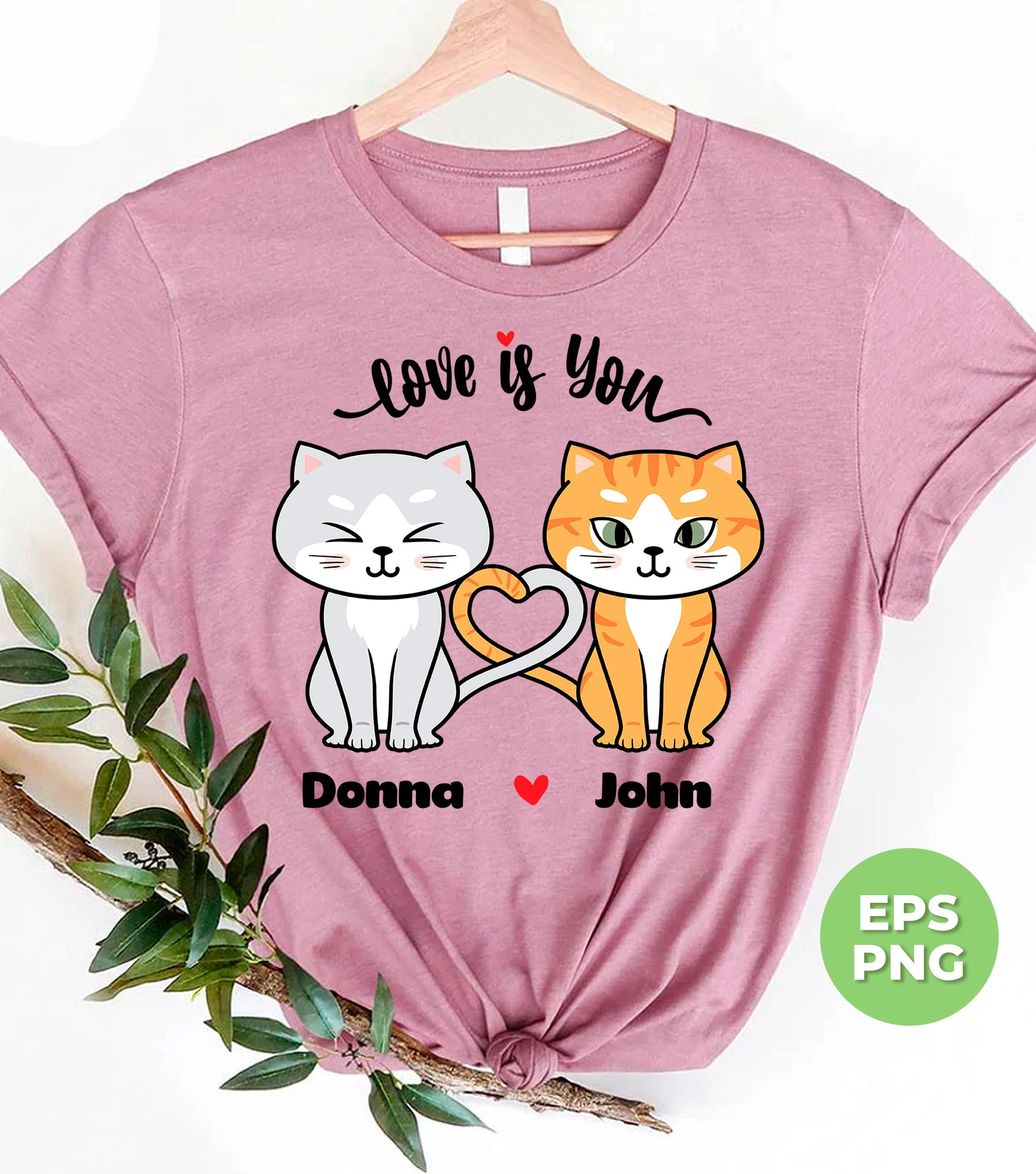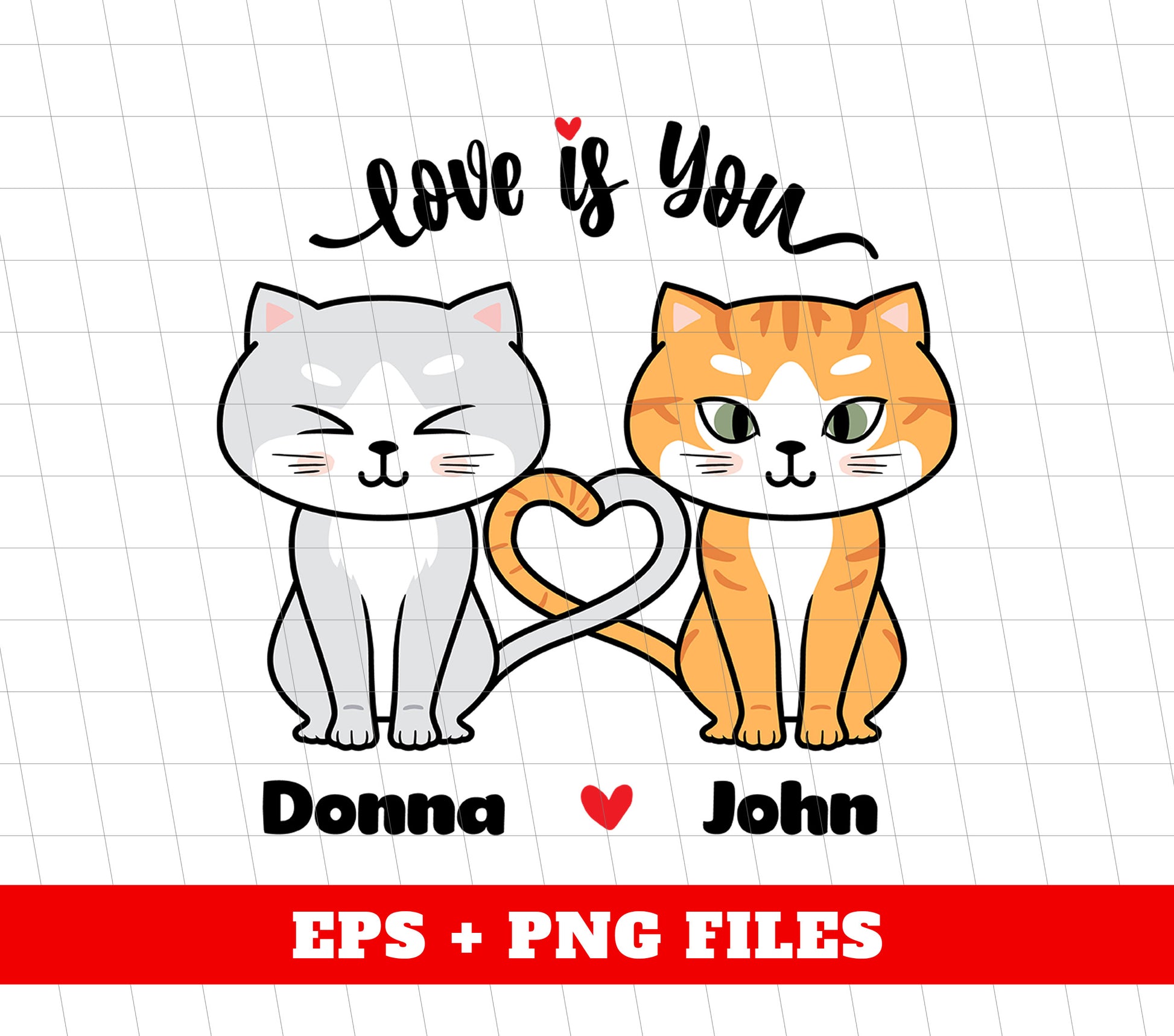 Custom Name Valentine, Cat Couple, Personalized Name Couple, Digital Files, Png Sublimation