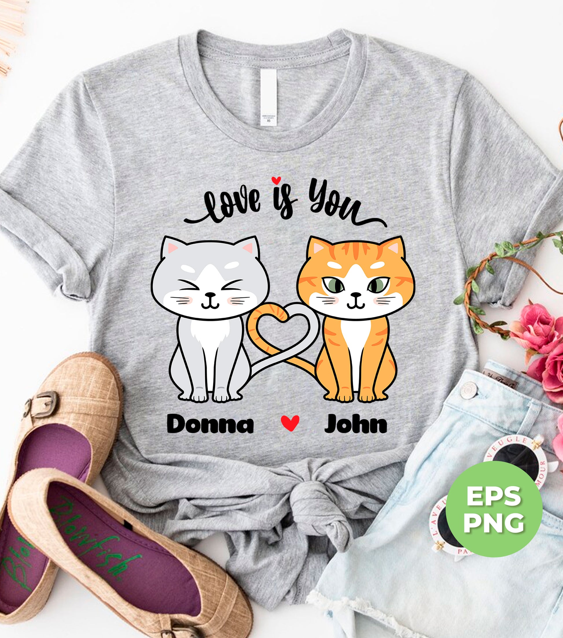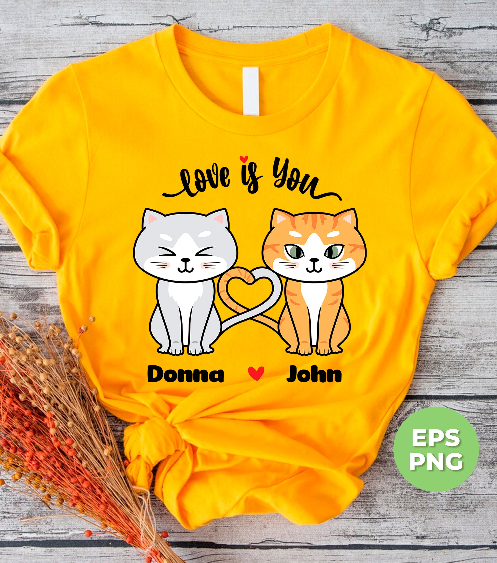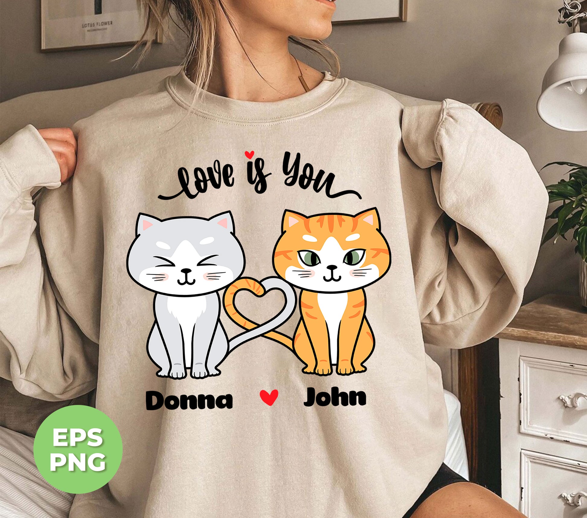Custom Name Valentine, Cat Couple, Personalized Name Couple, Digital Files, Png Sublimation