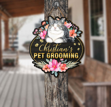 Custom Pet Grooming Wooden Sign, Personalized Flower Plywood Sign WS61