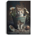 Cute Cat And Broken Flower Pots With Blooming Chrysanthemum