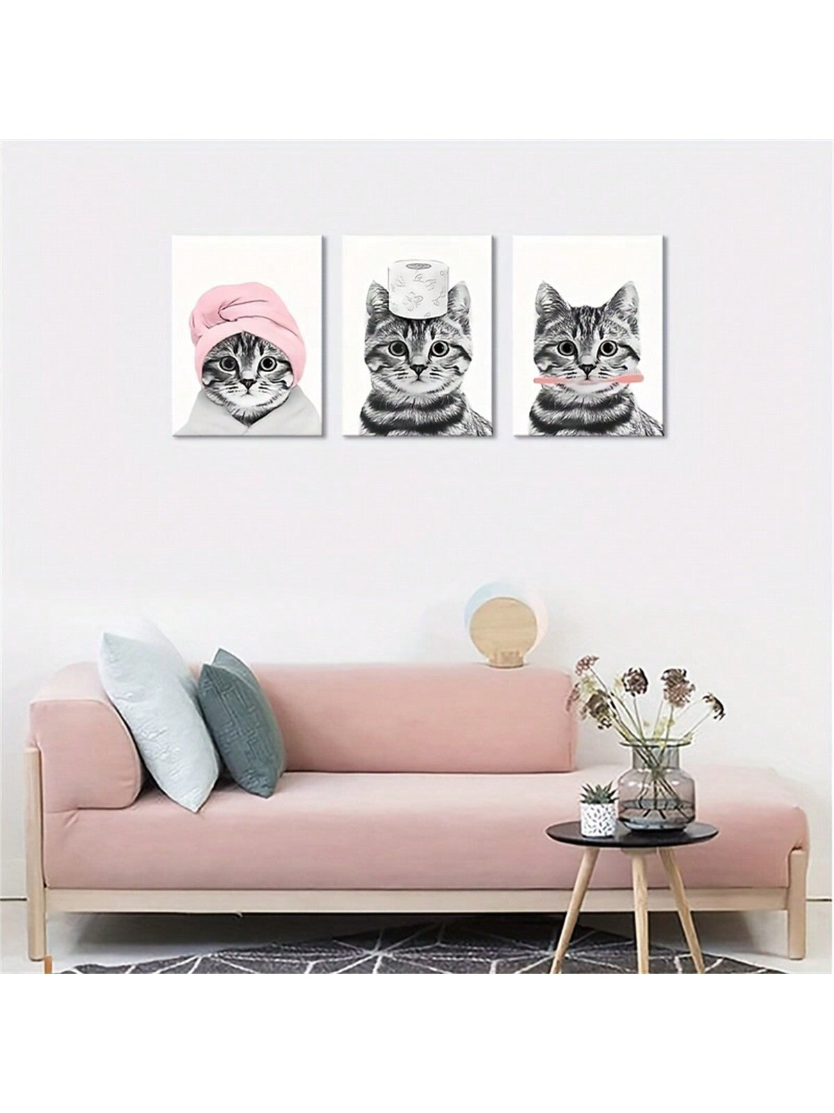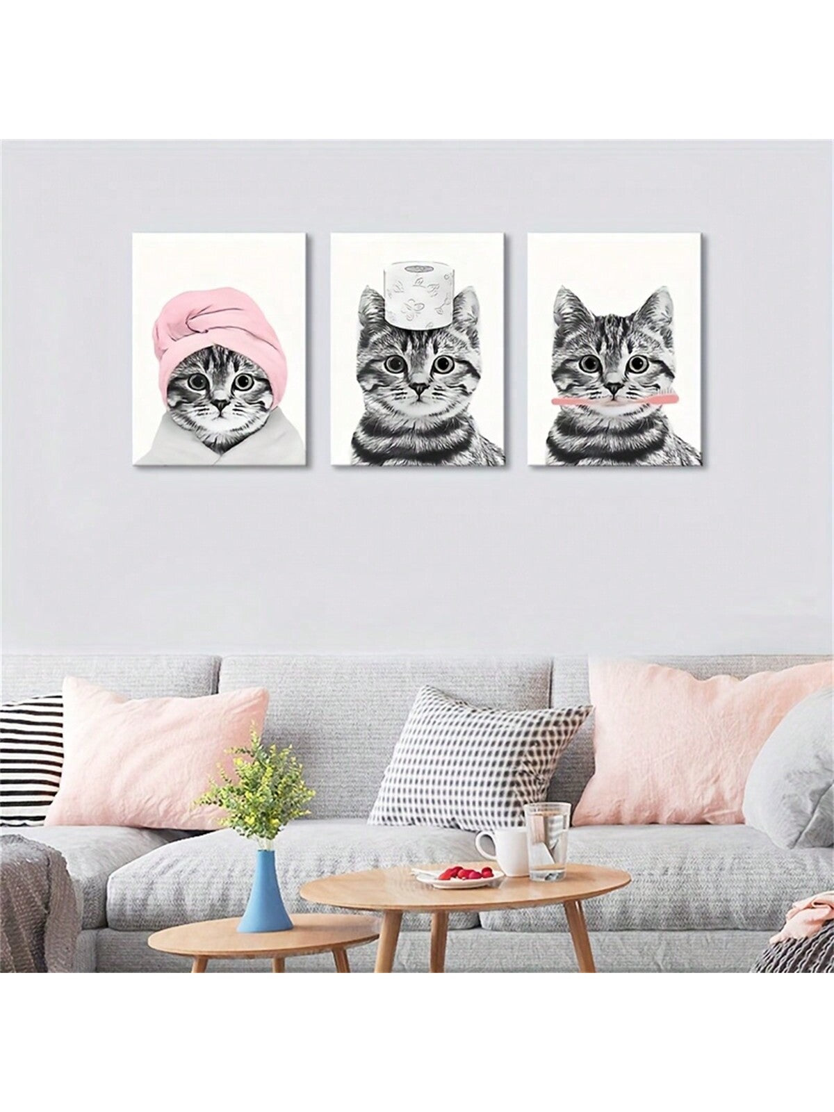 Cute Cat Art Canvas Poster Set: Ideal Fall Decor for Bedroom, Living Room, and Corridor Walls