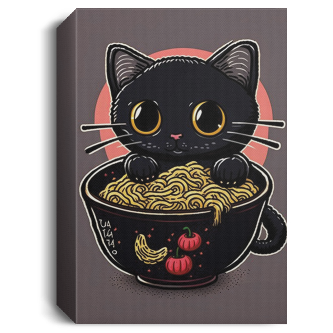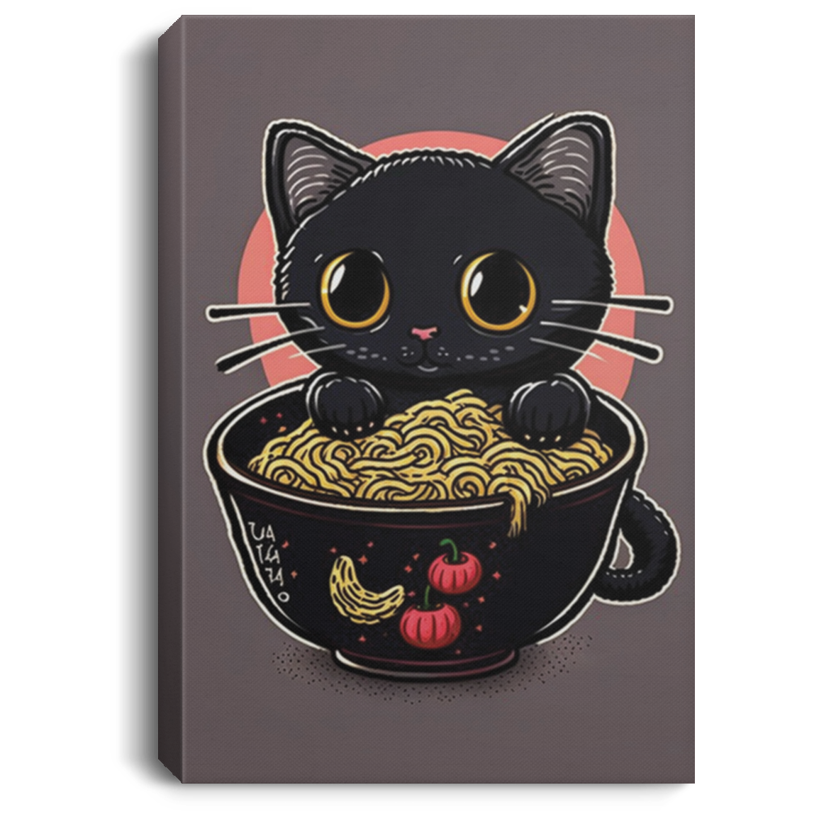 Cute Kawaii Black Cat Kitten Ramen, Black Cat And Ramen, Cute Kitten Love Japanese Noodles