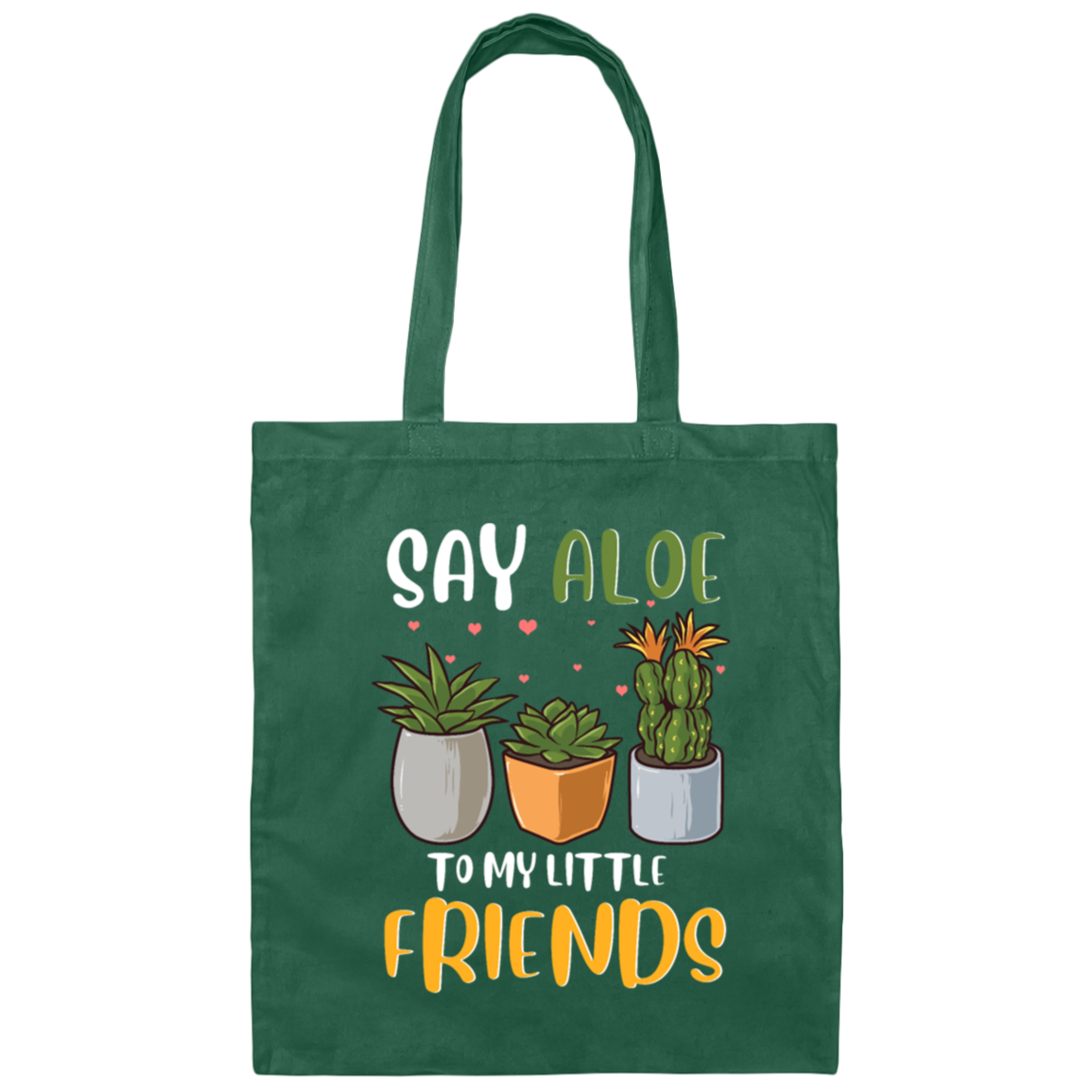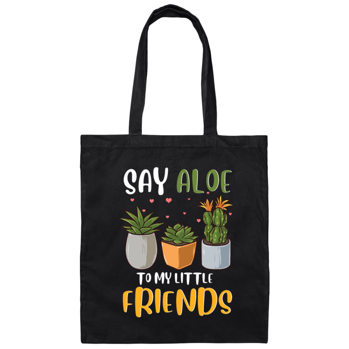 Cute Plant Pun, Funny Say Aloe To My Little Friends, Succulents Lover Gift Canvas Tote Bag