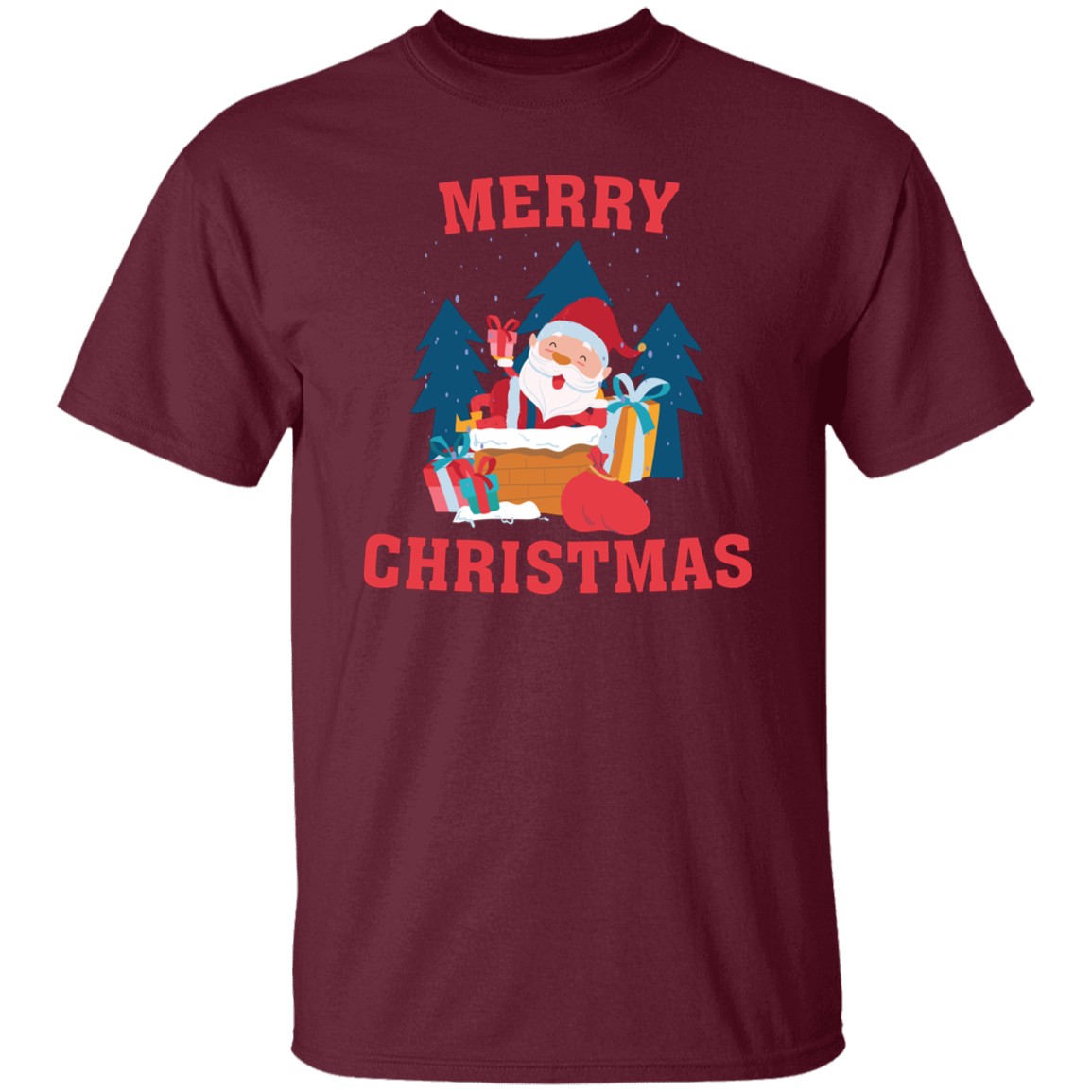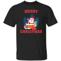 Cute Santa, Happy Santa, Funny Santa, Santa With Gift, Merry Christmas, Trendy Christmas Unisex T-Shirt