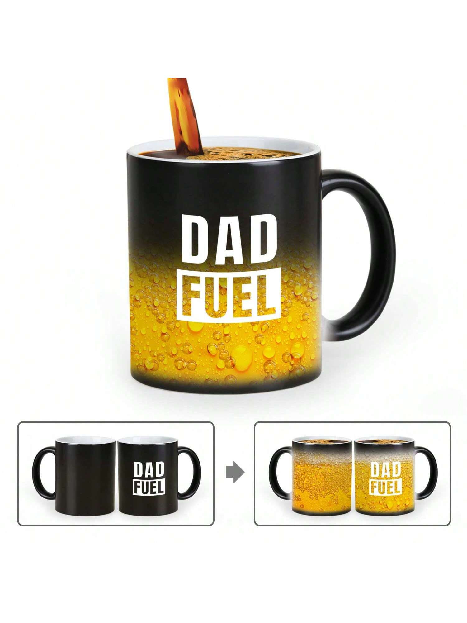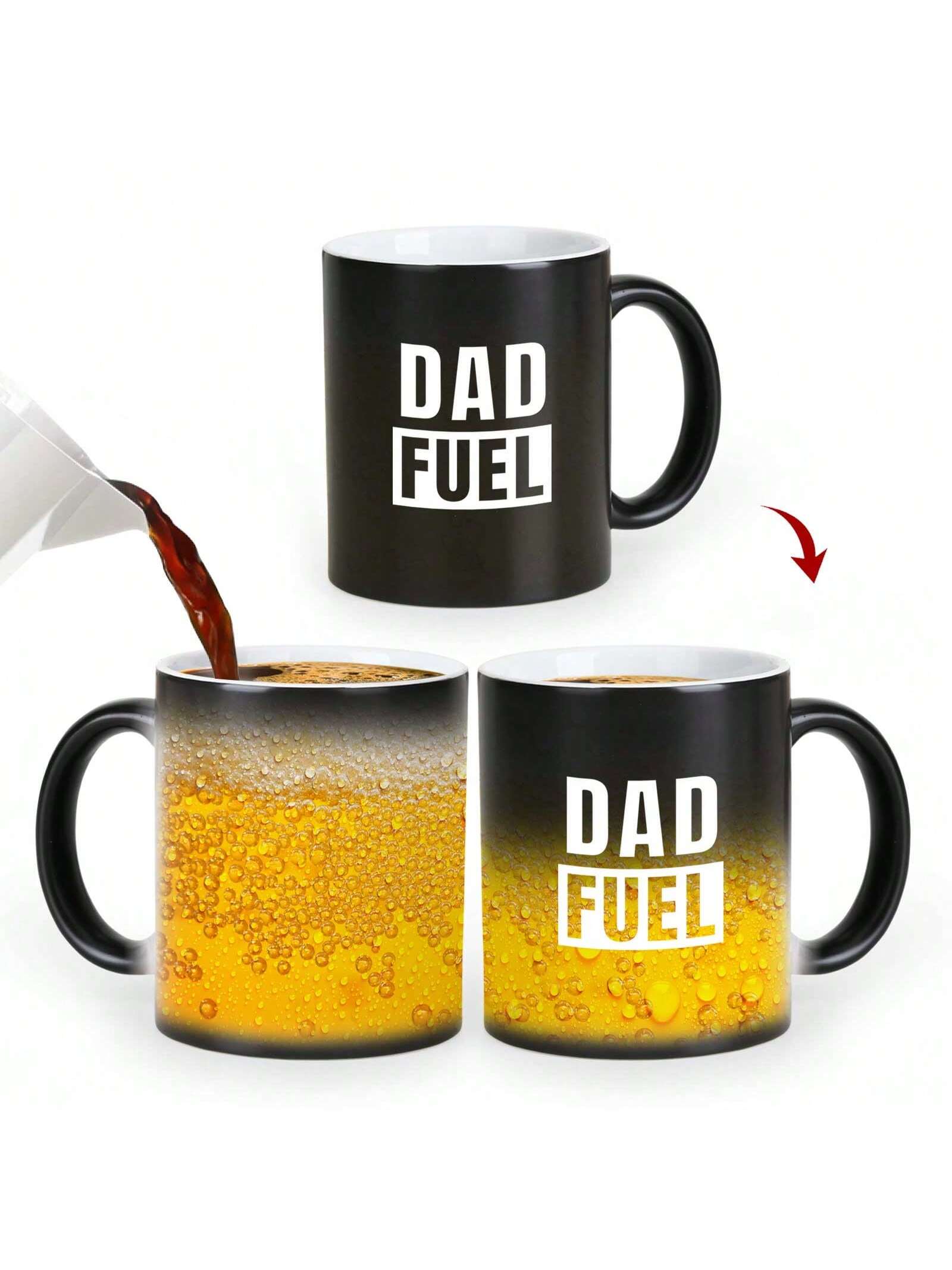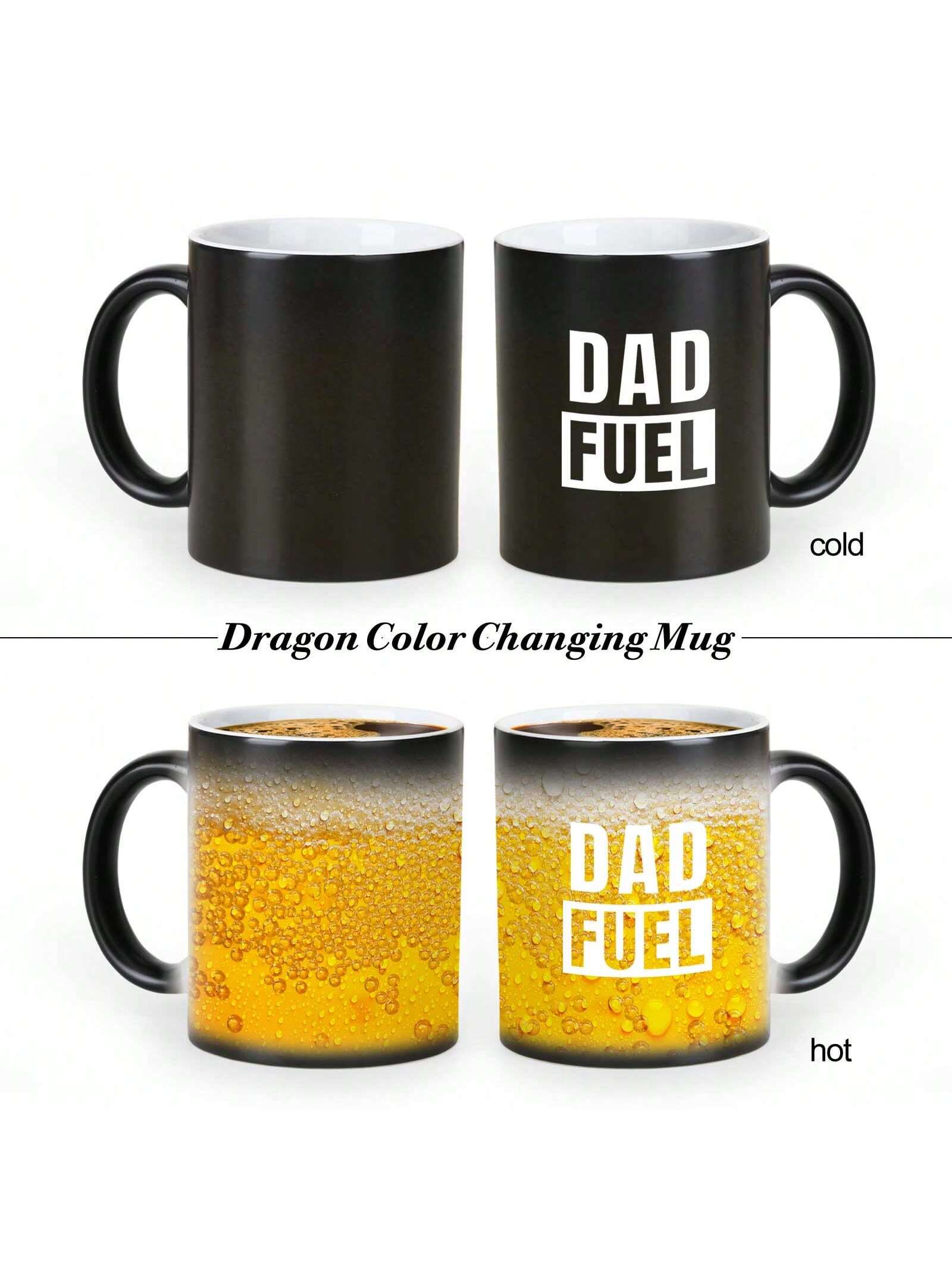 Mug! Perfect for any dad, this mug changes color with hot liquids, revealing a fun and quirky design. Made with high-quality materials, it's the ideal gift for the best dad in your life. Start your day with a smile and a warm cup of Dad Fuel."