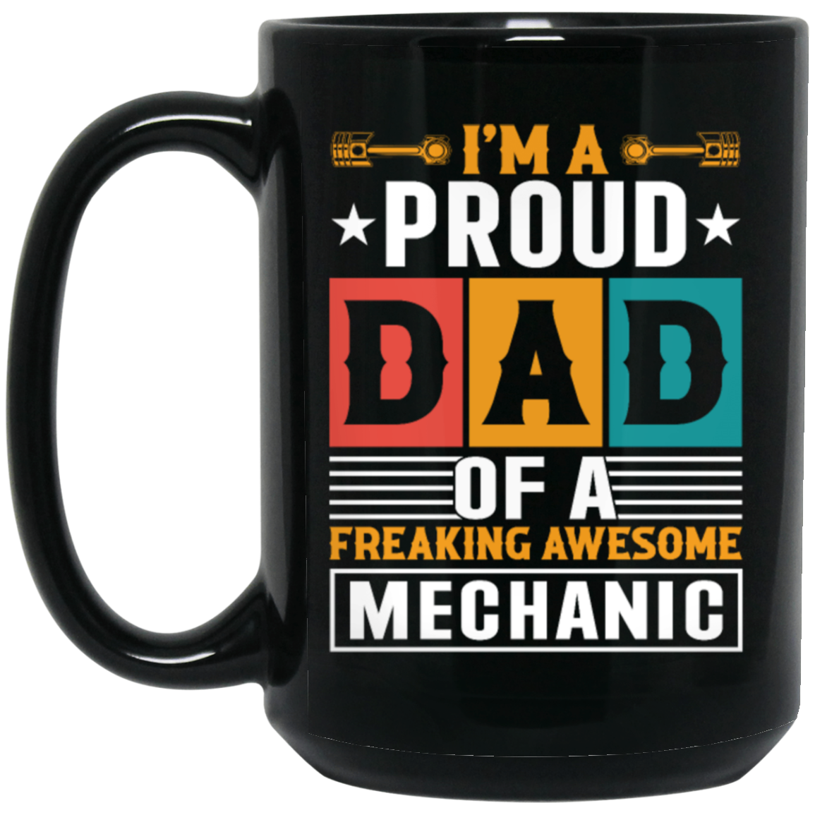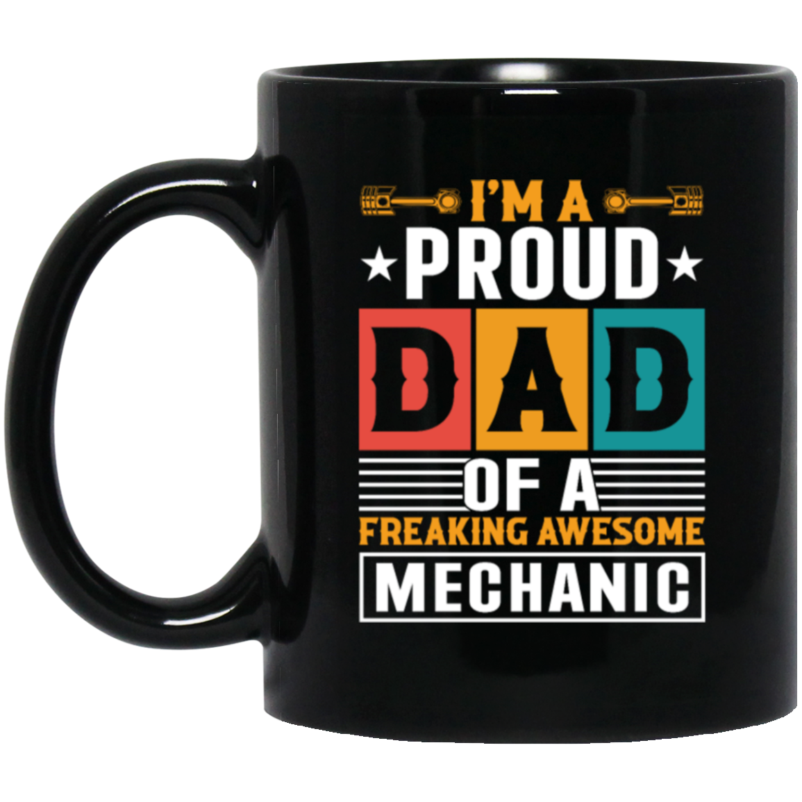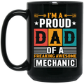 Dad Gift, I Am A Proud Dad Of A Freaking Awesome Mechanic, Love Mechanic Black Mug