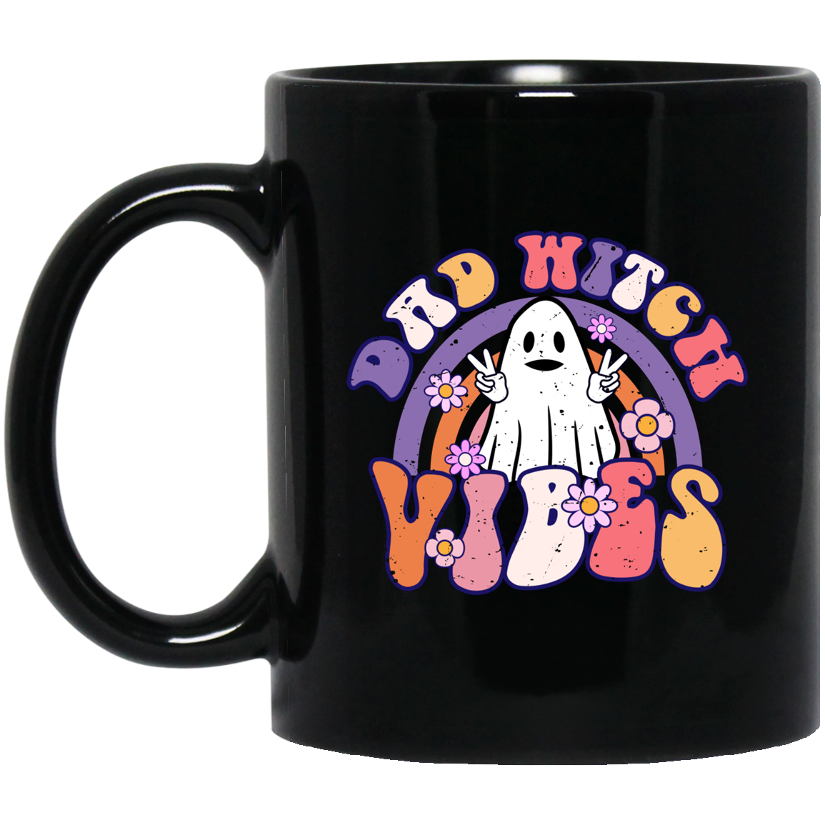 Dad Witch Vibes, Ghost Halloween, Groovy Halloween Black Mug