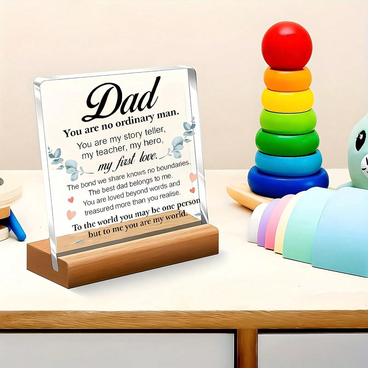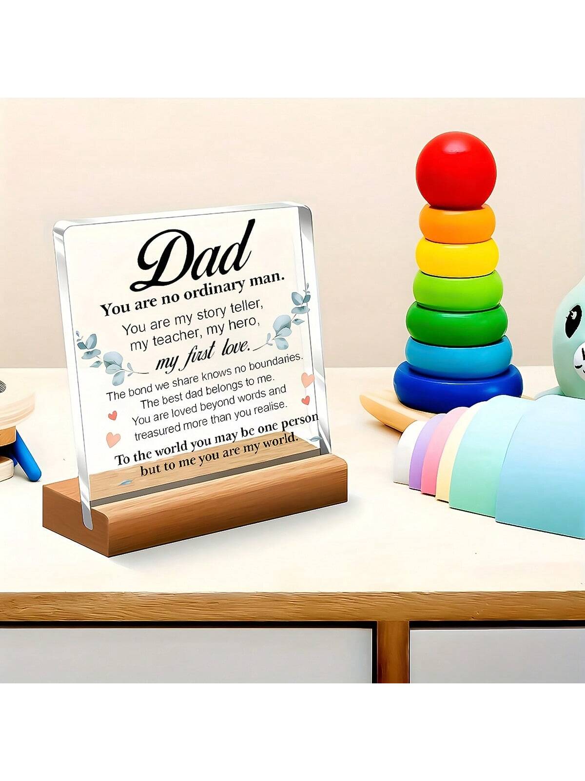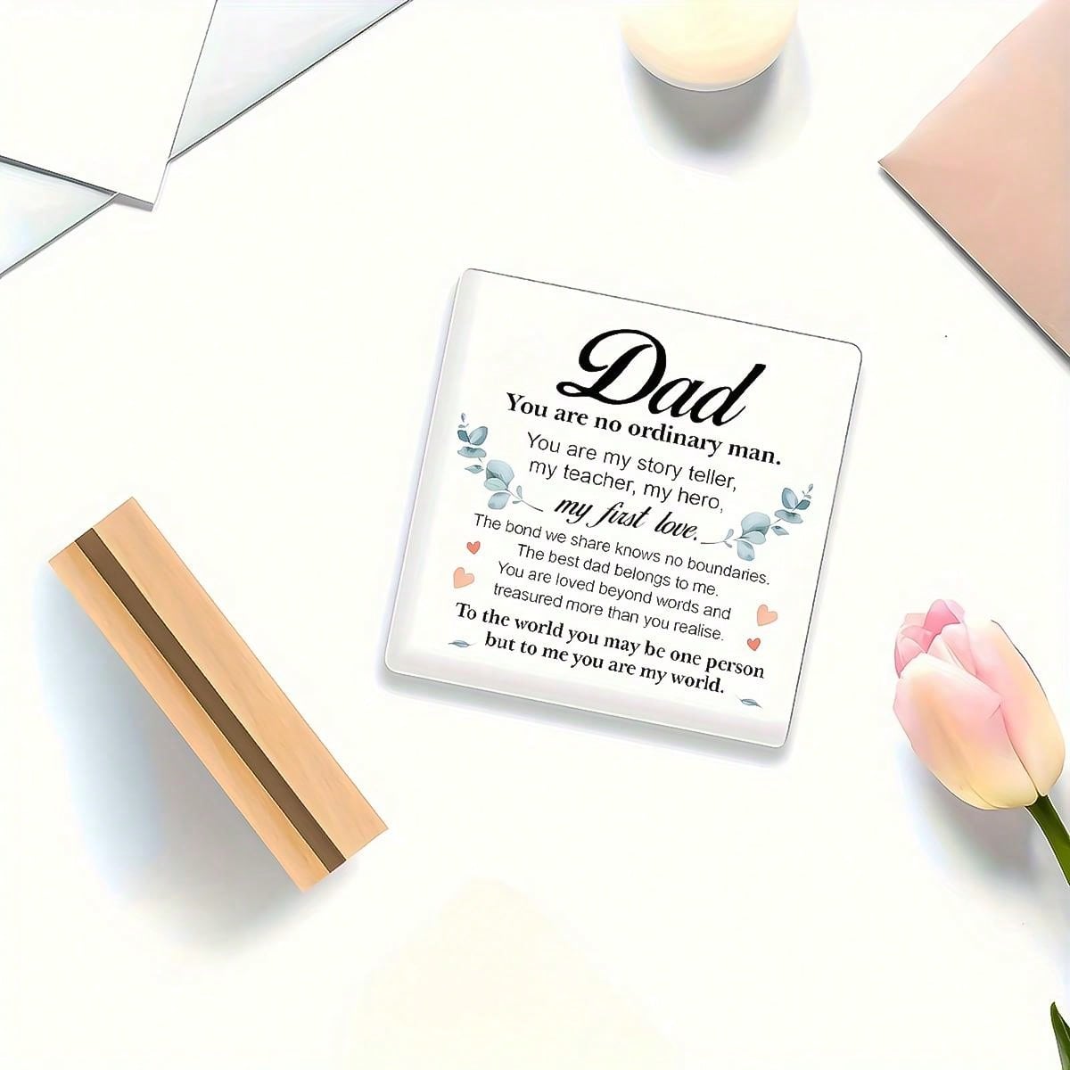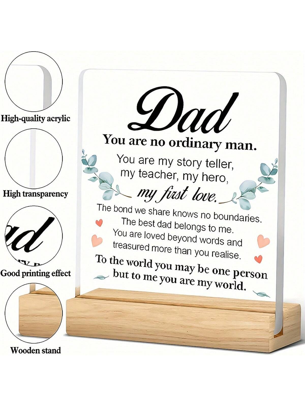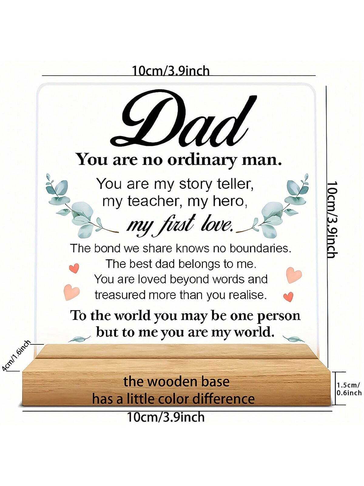 Celebrate your relationship with Dad with this beautifully crafted desk decoration. Made from high-quality acrylic, it features a heartfelt message and a sleek design to show your love. Perfect for Father's Day, birthdays, or any special occasion. Show Dad he's the Best Dad ever with this thoughtful gift.