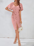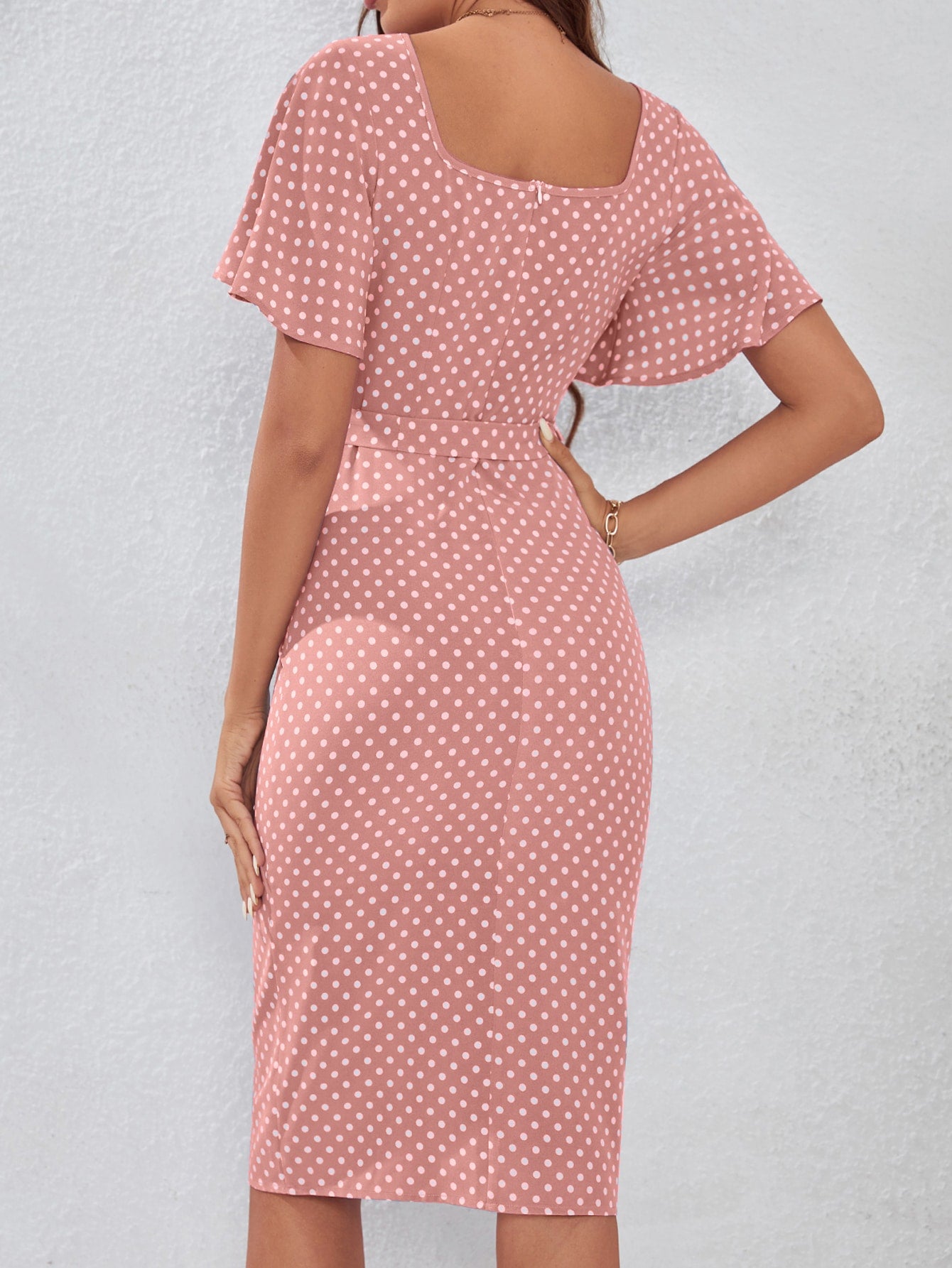 Dainty Darling: Frenchy Polka Dot Print Dress with Sweetheart Neck Button Decor