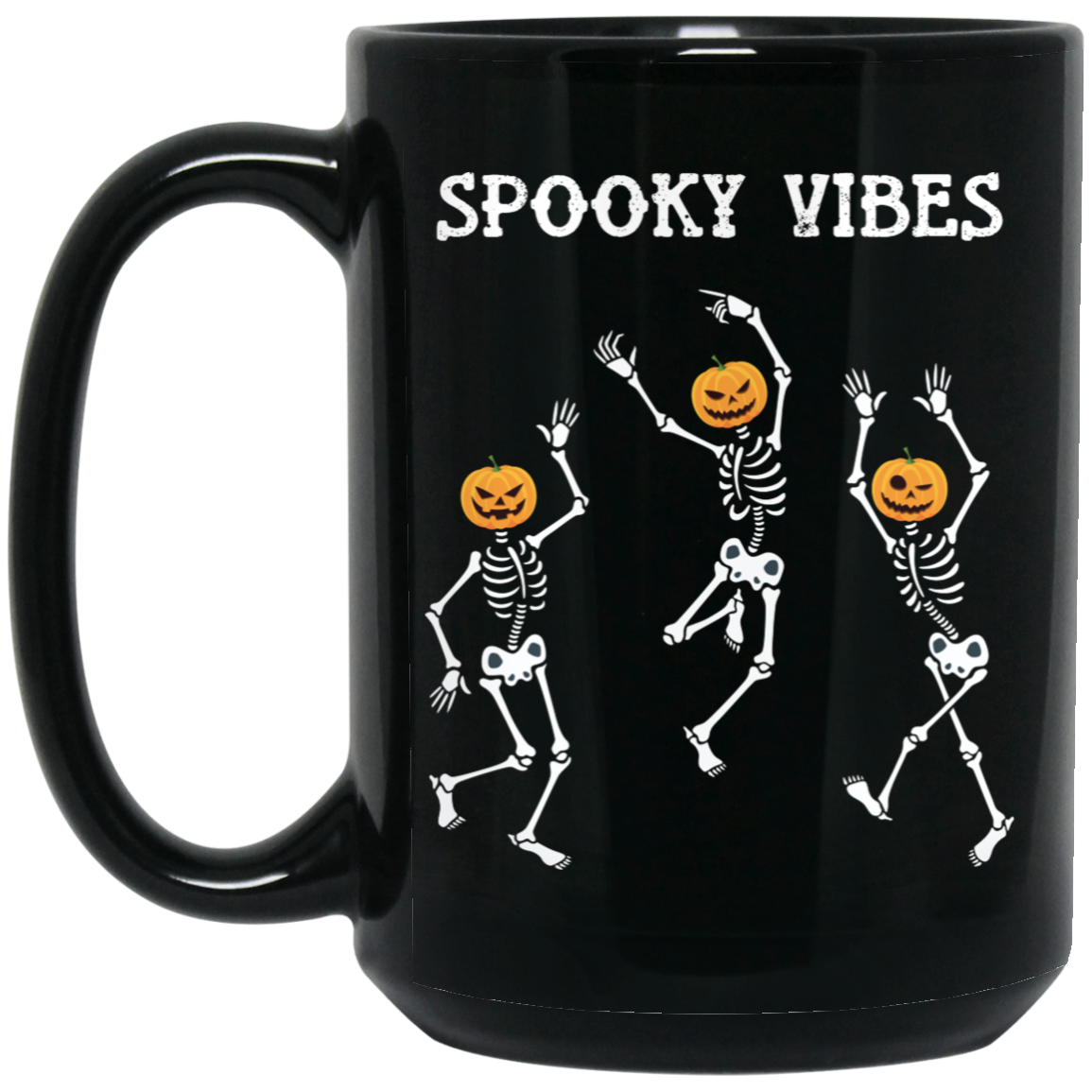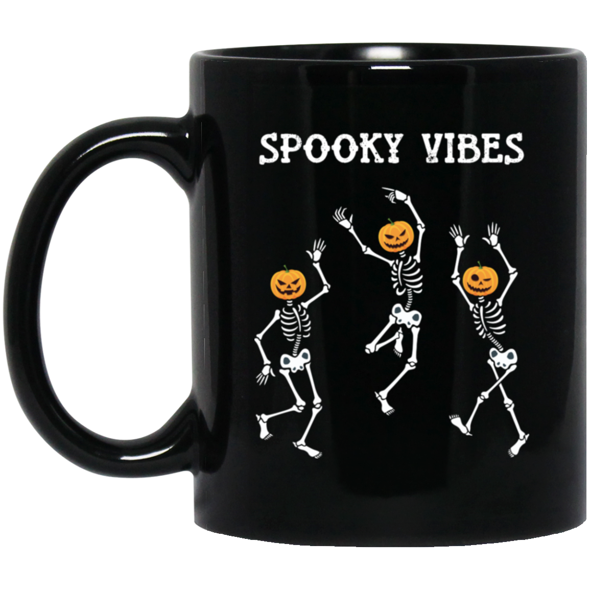 Dancing Skeleton, Spooky Vibes, Happy Halloween Black Mug