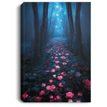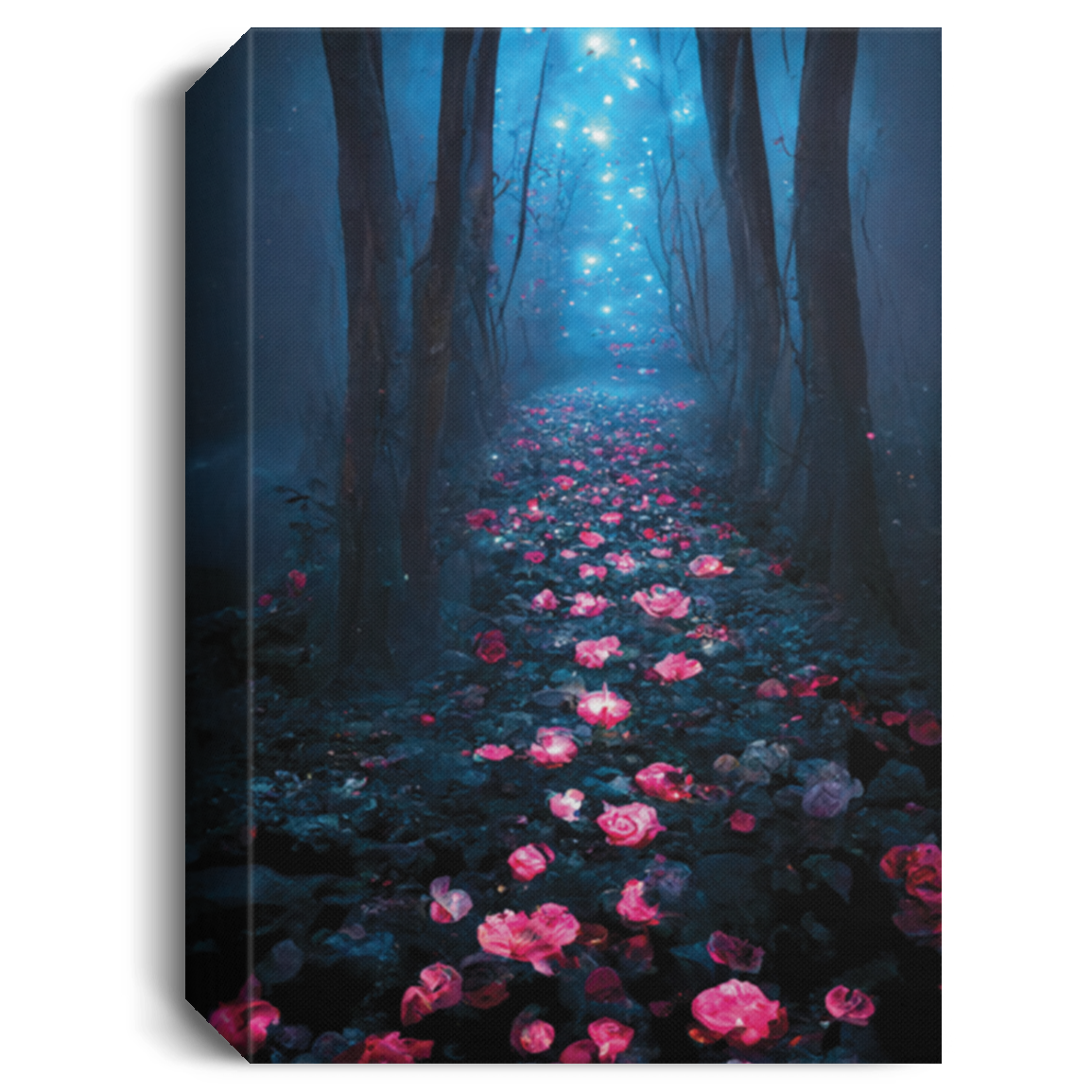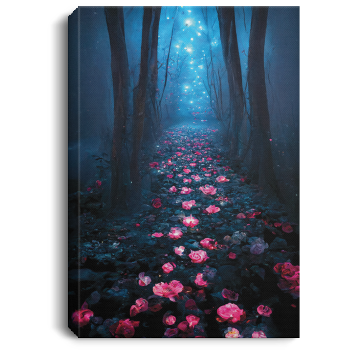 Dark Rose Forest. A Rose Path, Long Floating Blue Roses On The Ground, Secret Forest, Miracle Forest