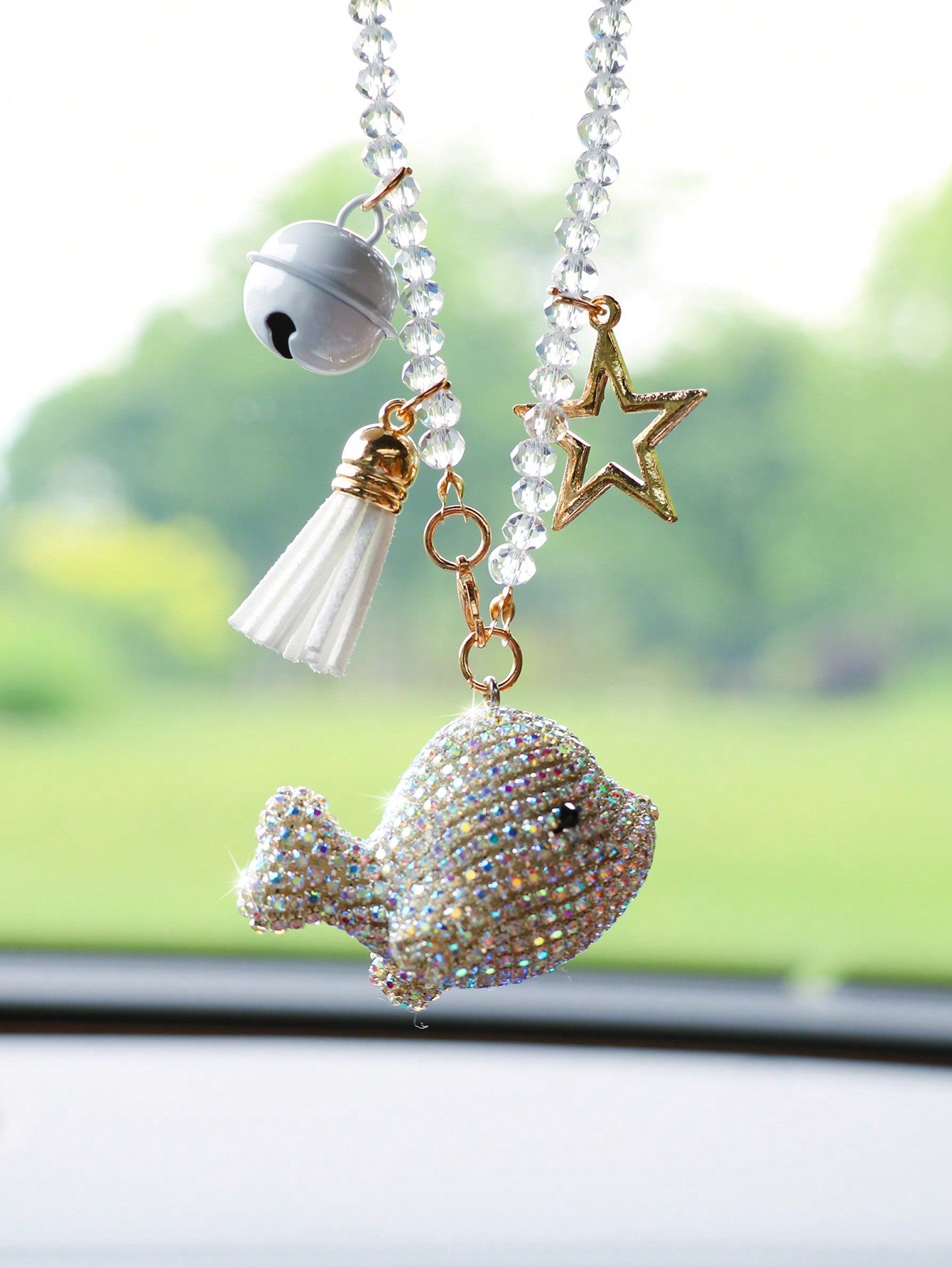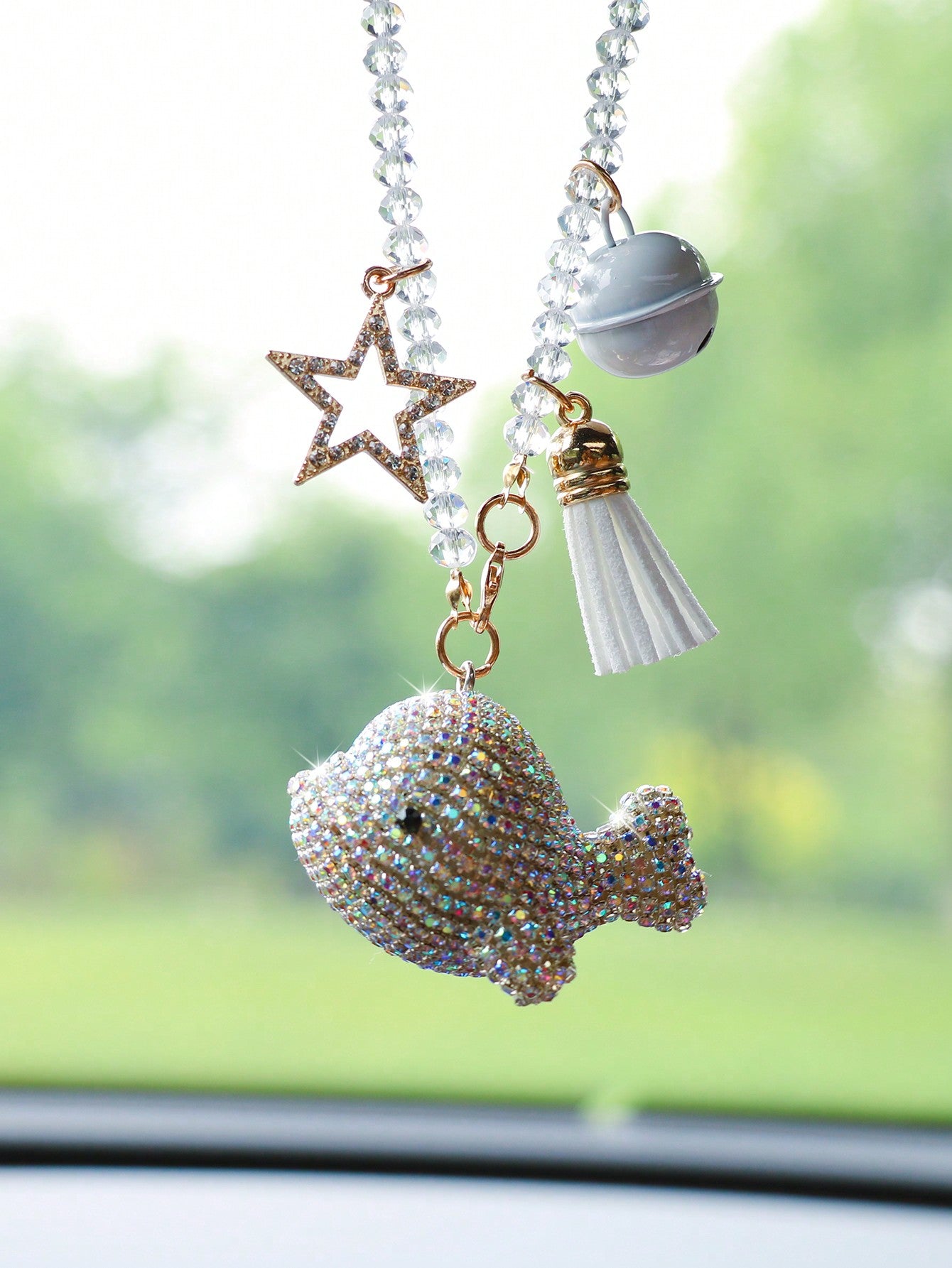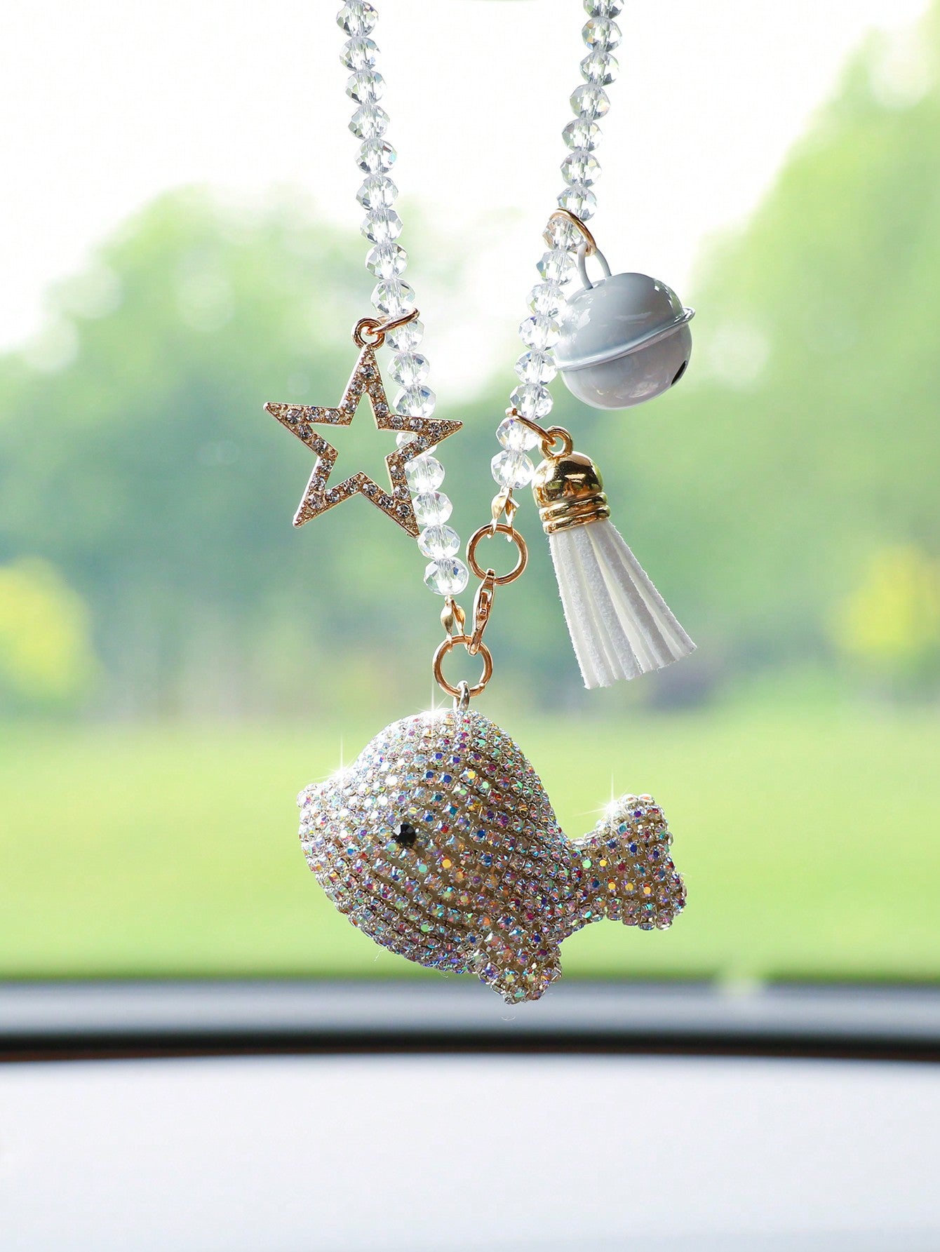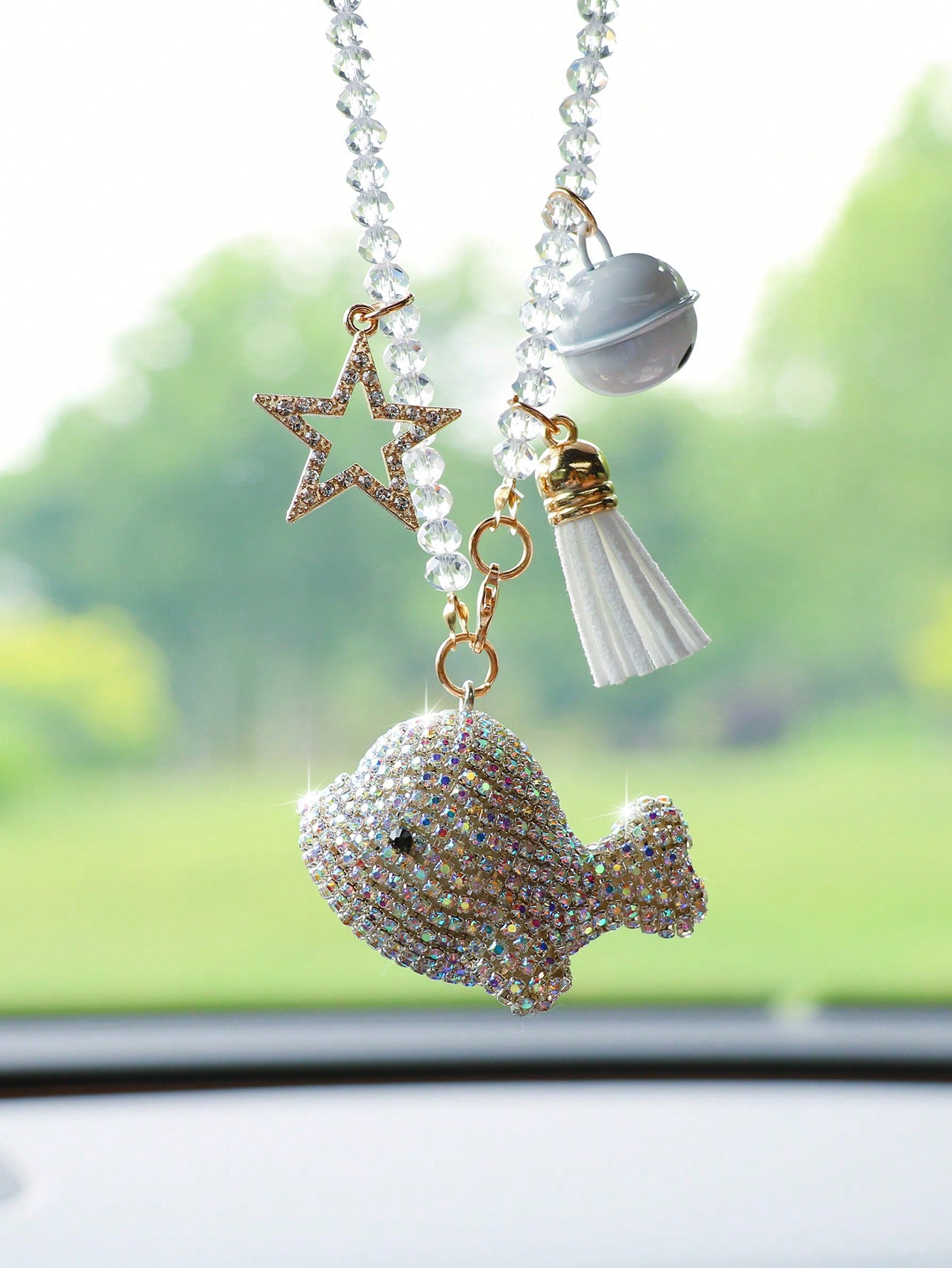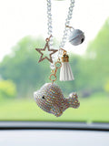 Dazzling White Dolphin Car Interior Ornament with Full Rhinestones - Sparkle and Shine on the Go!