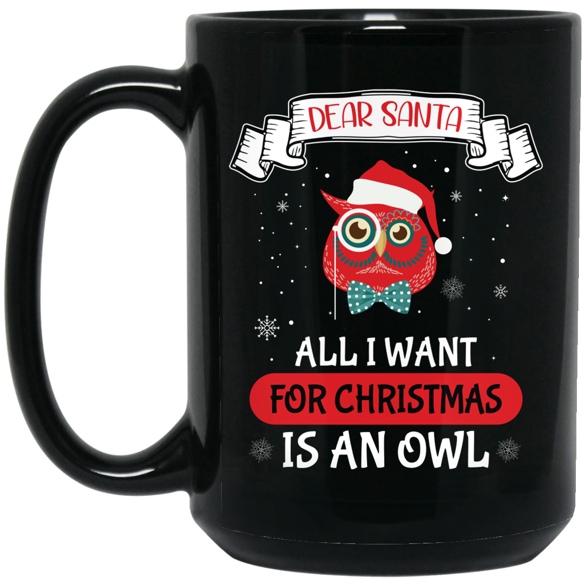 Dear Santa, All I Want For Christmas Is An Owl, Merry Xmas Black Mug