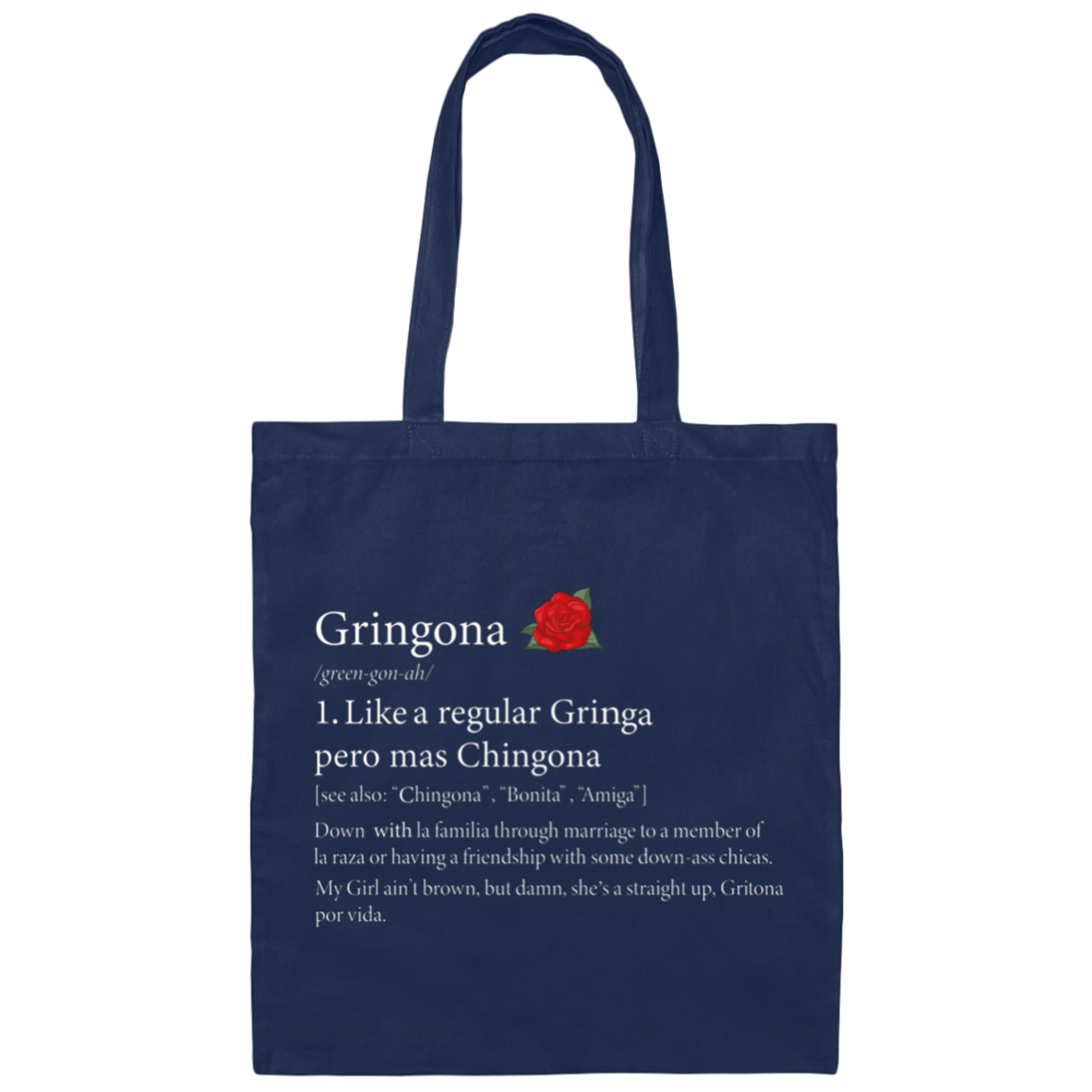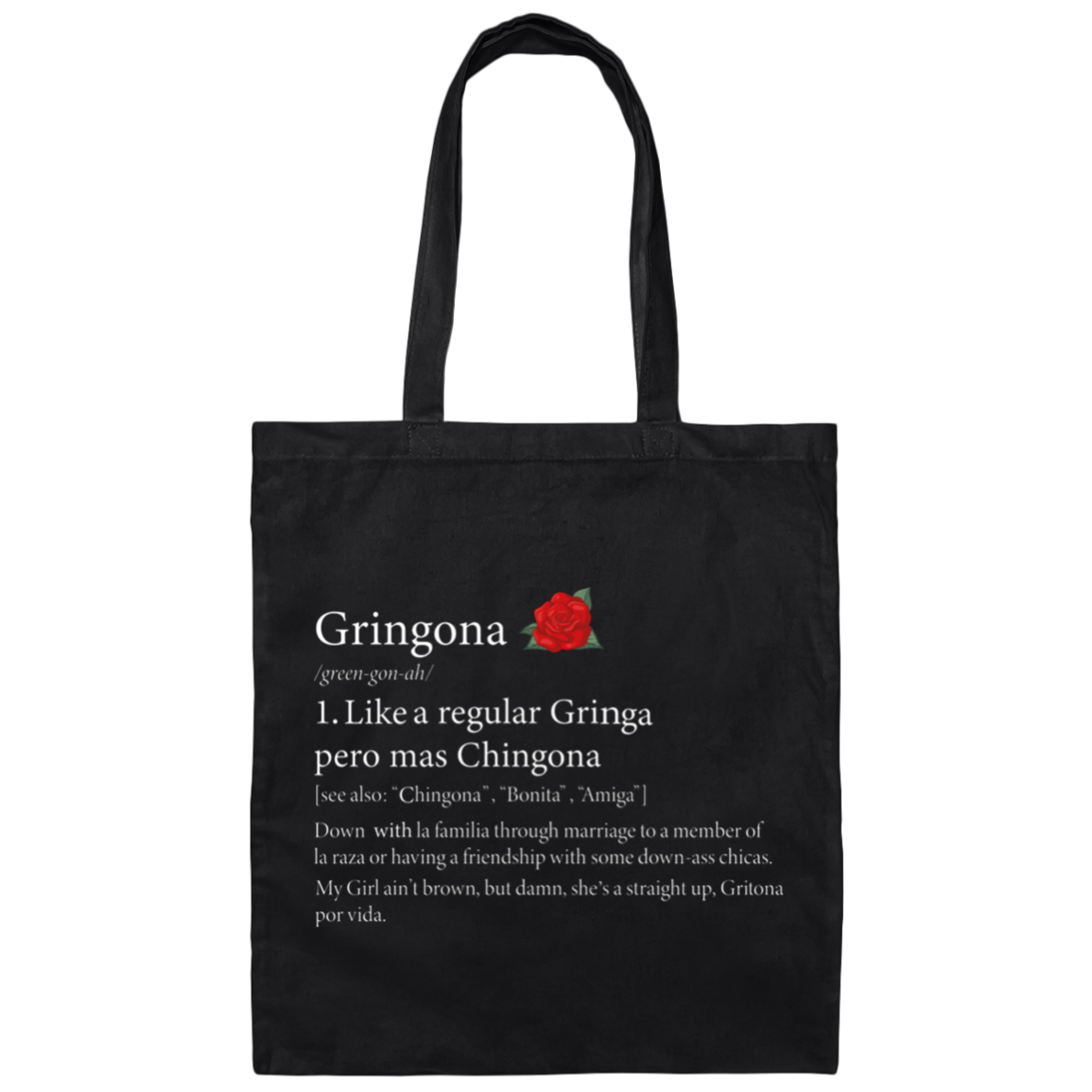 Definition Of Gringona, Gringa Mixed Chingona, Gringa Rose Canvas Tote Bag