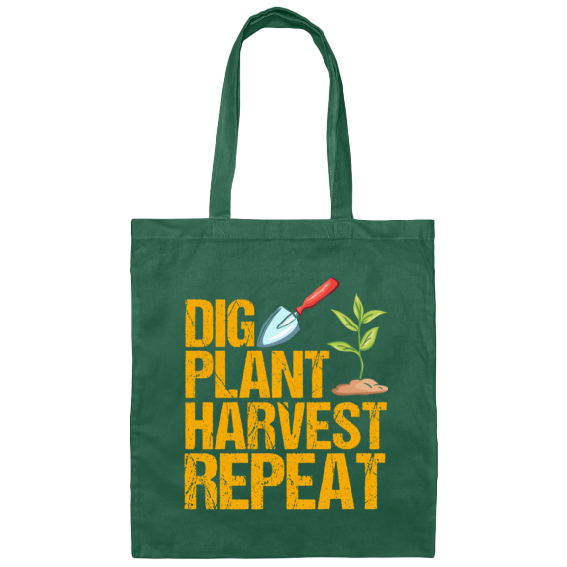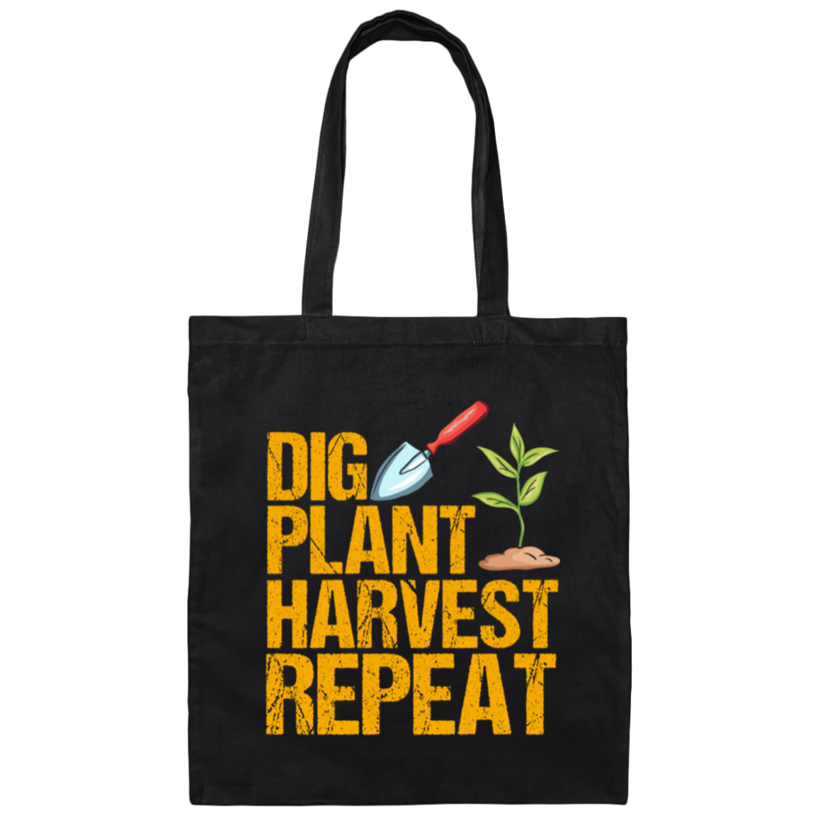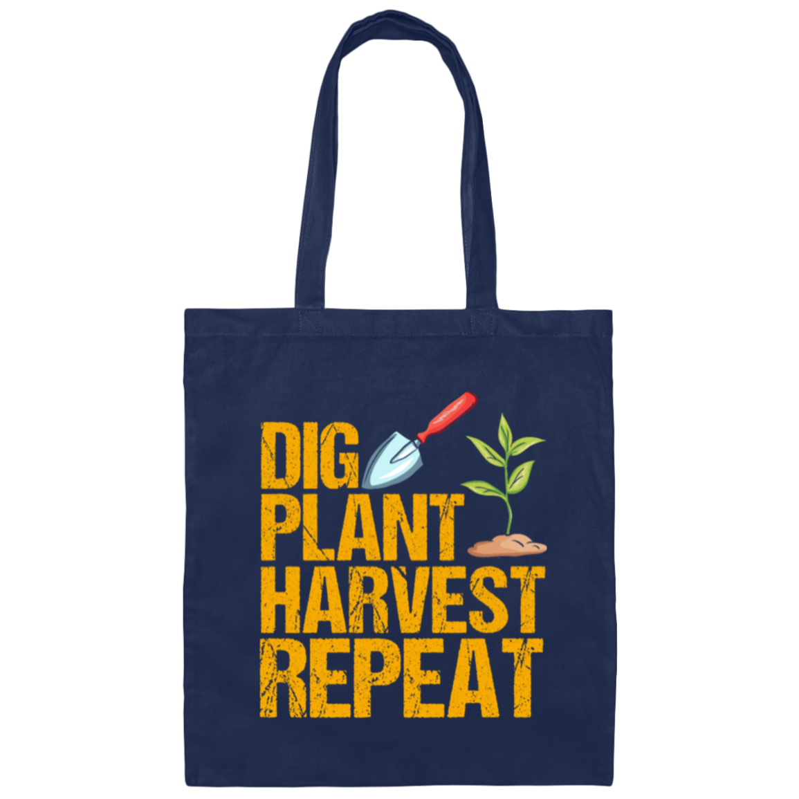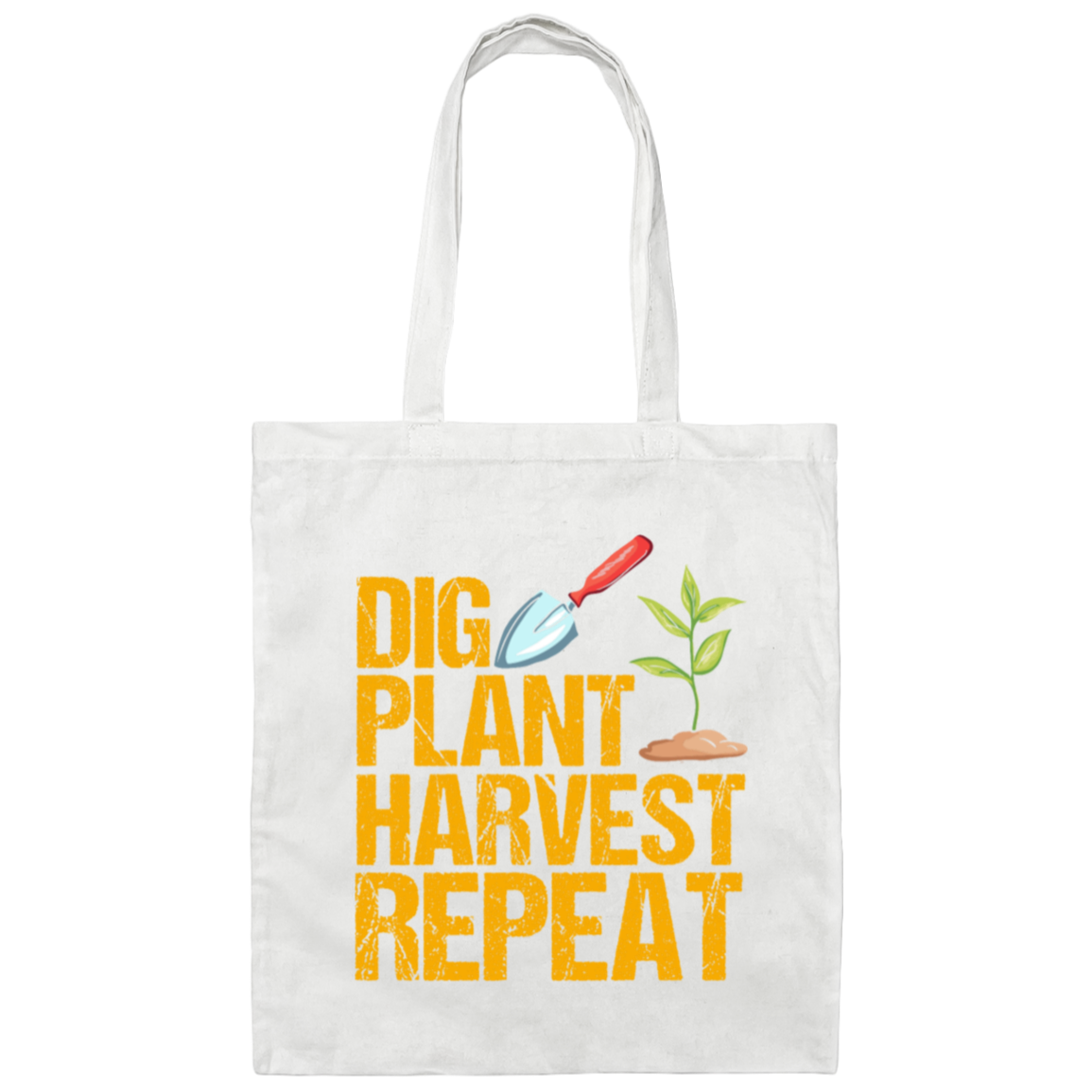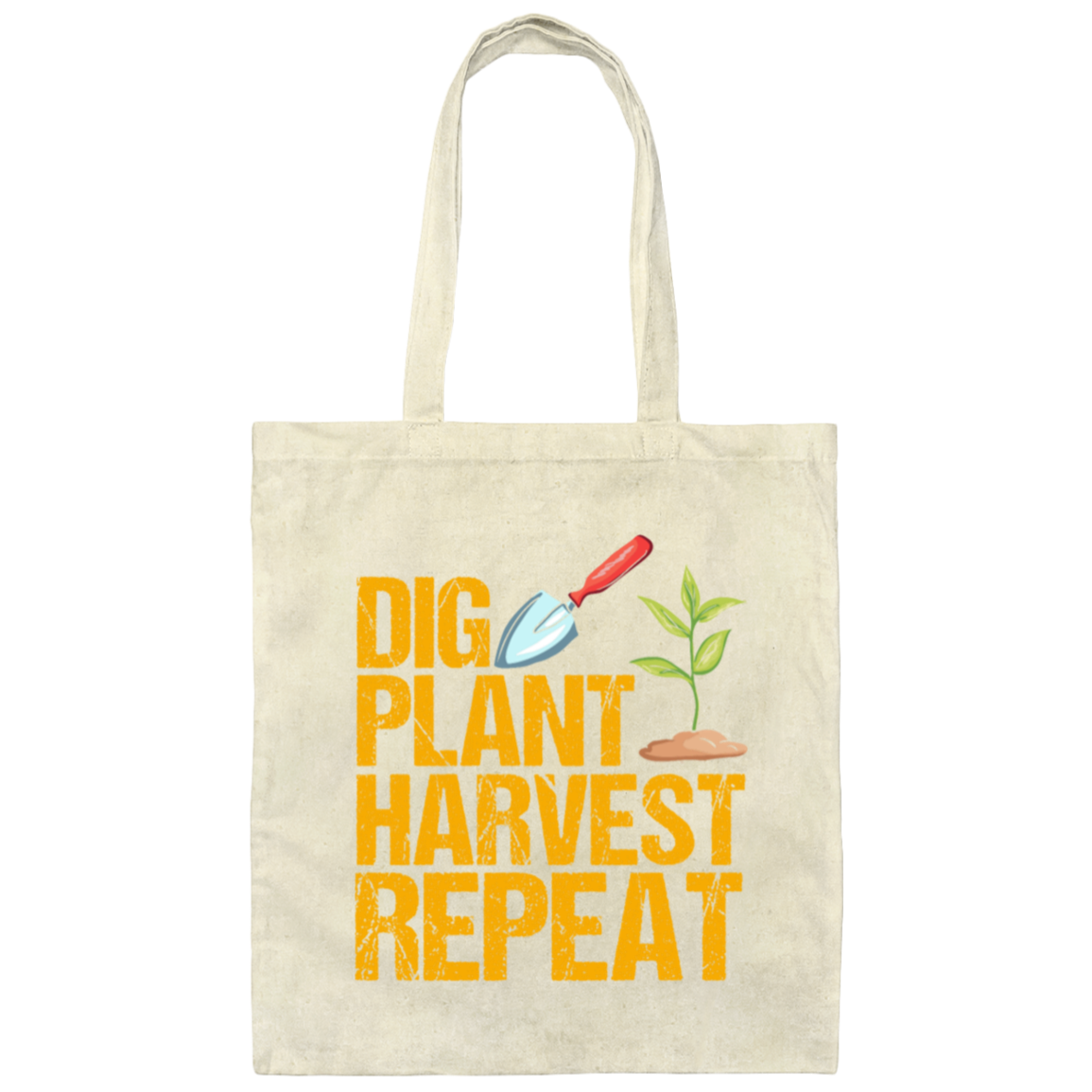 Dig Plant Harvest Repeat, Funny Gardening Lover Canvas Tote Bag