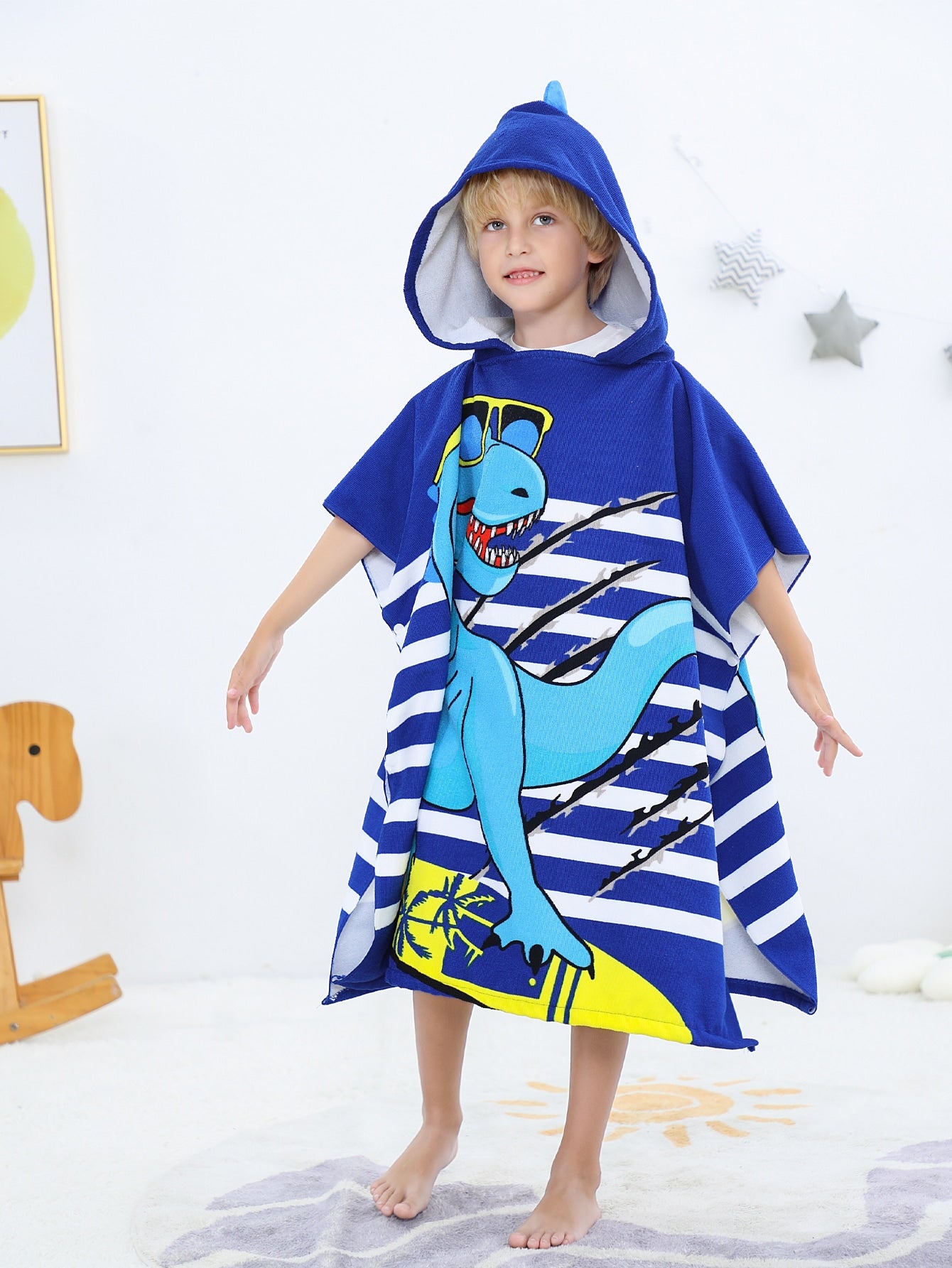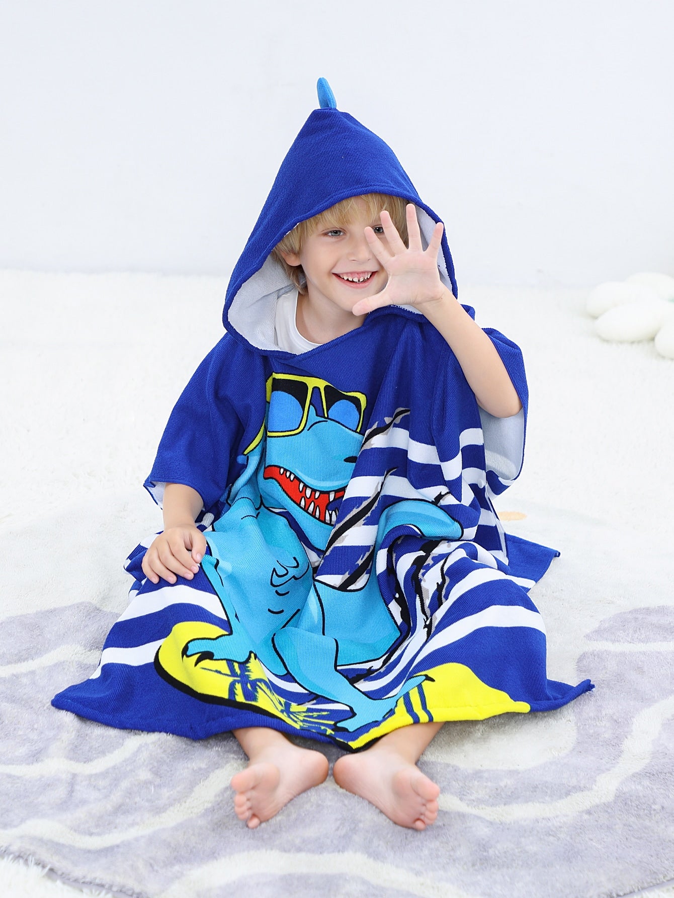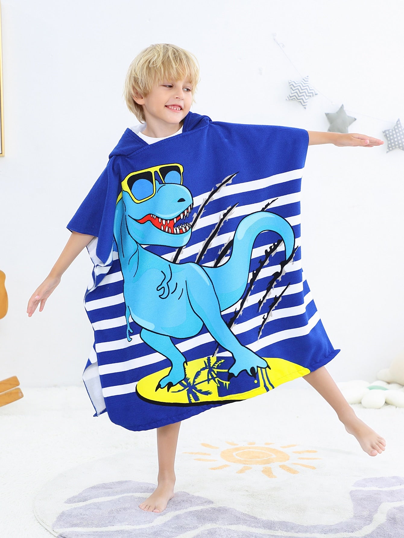 Bath Towel featuring a playful cartoon dinosaur design. Made of soft, absorbent material, this towel will quickly become a favorite for both kids and parents. Keep your child warm and dry while providing an enjoyable bath experience."