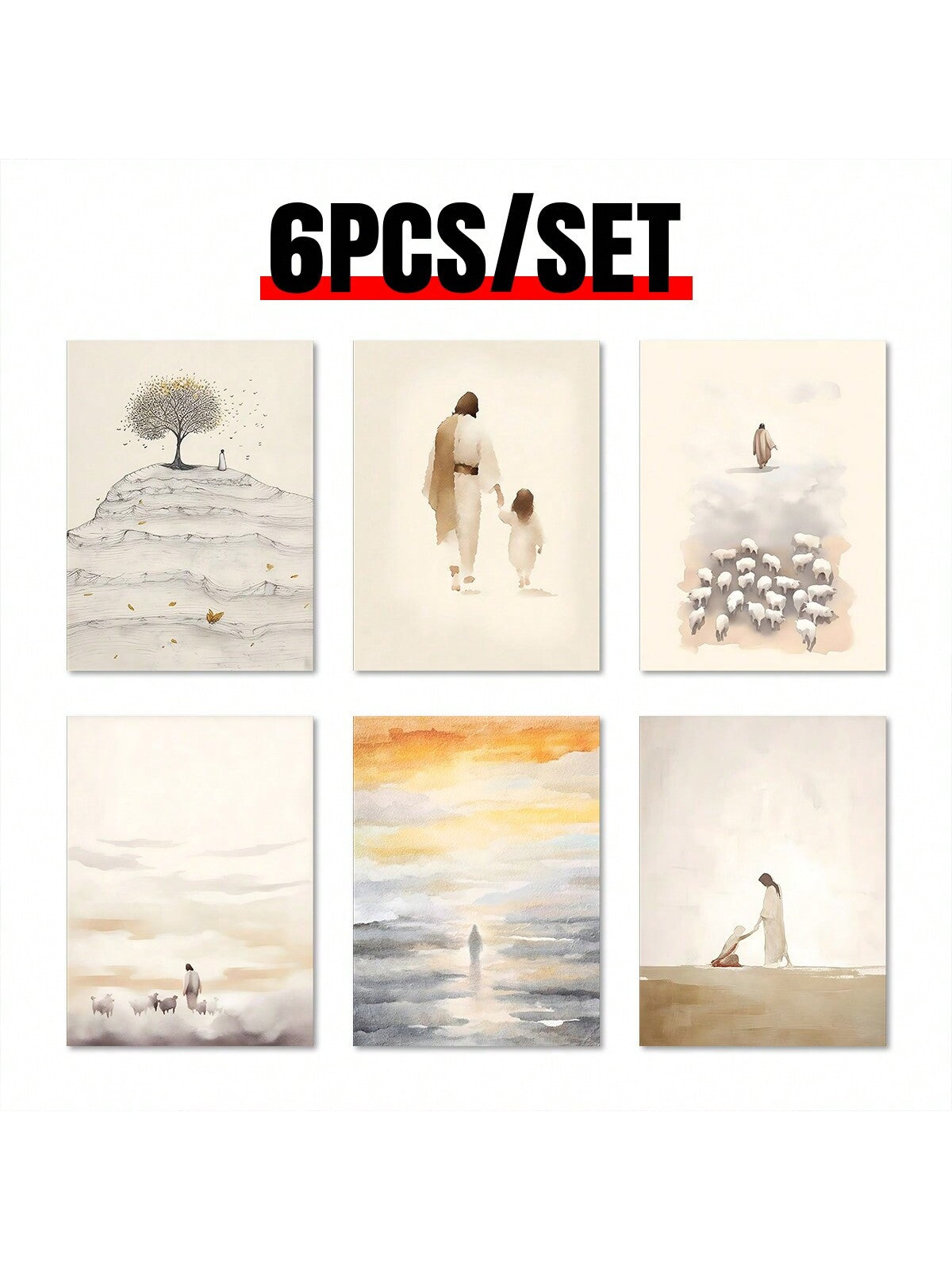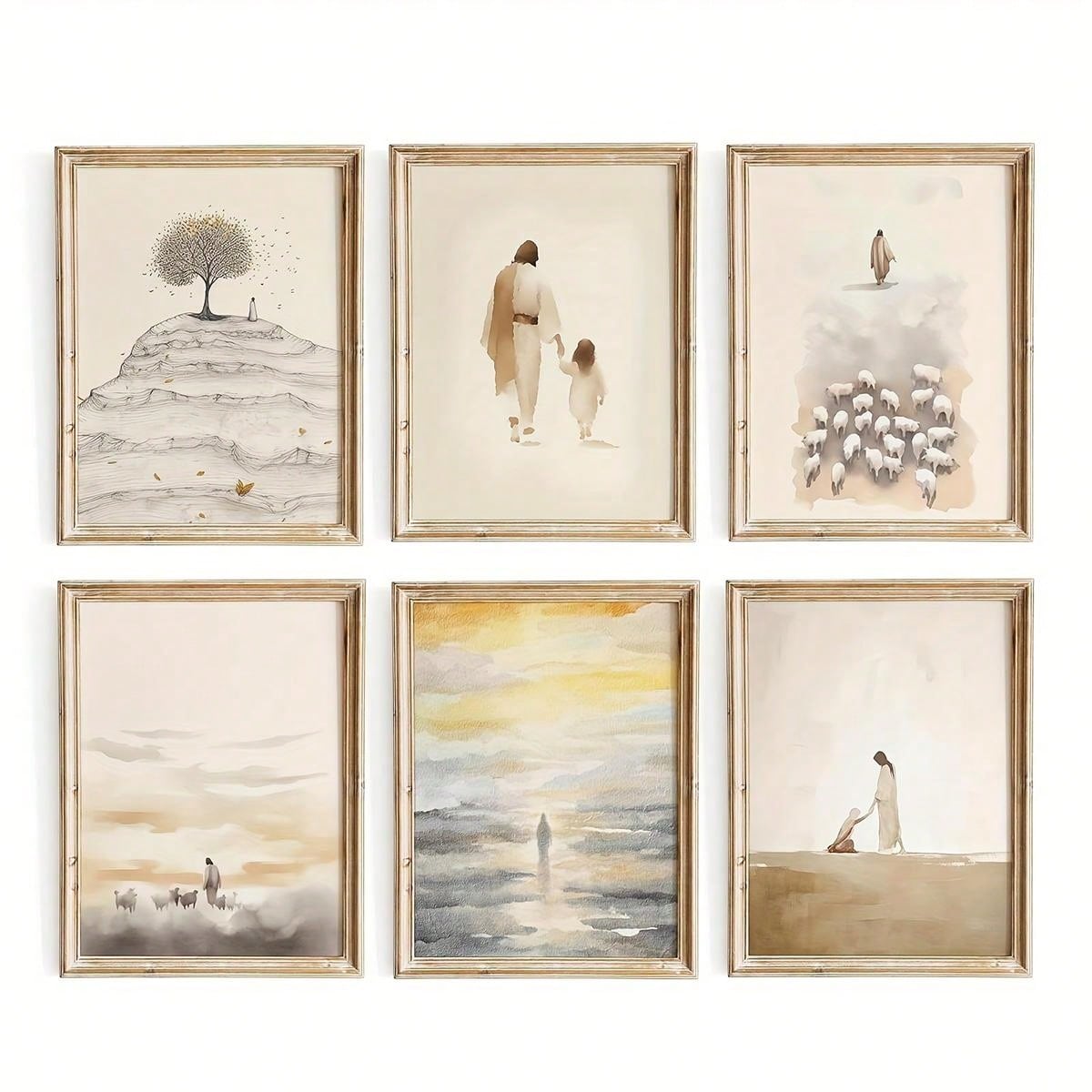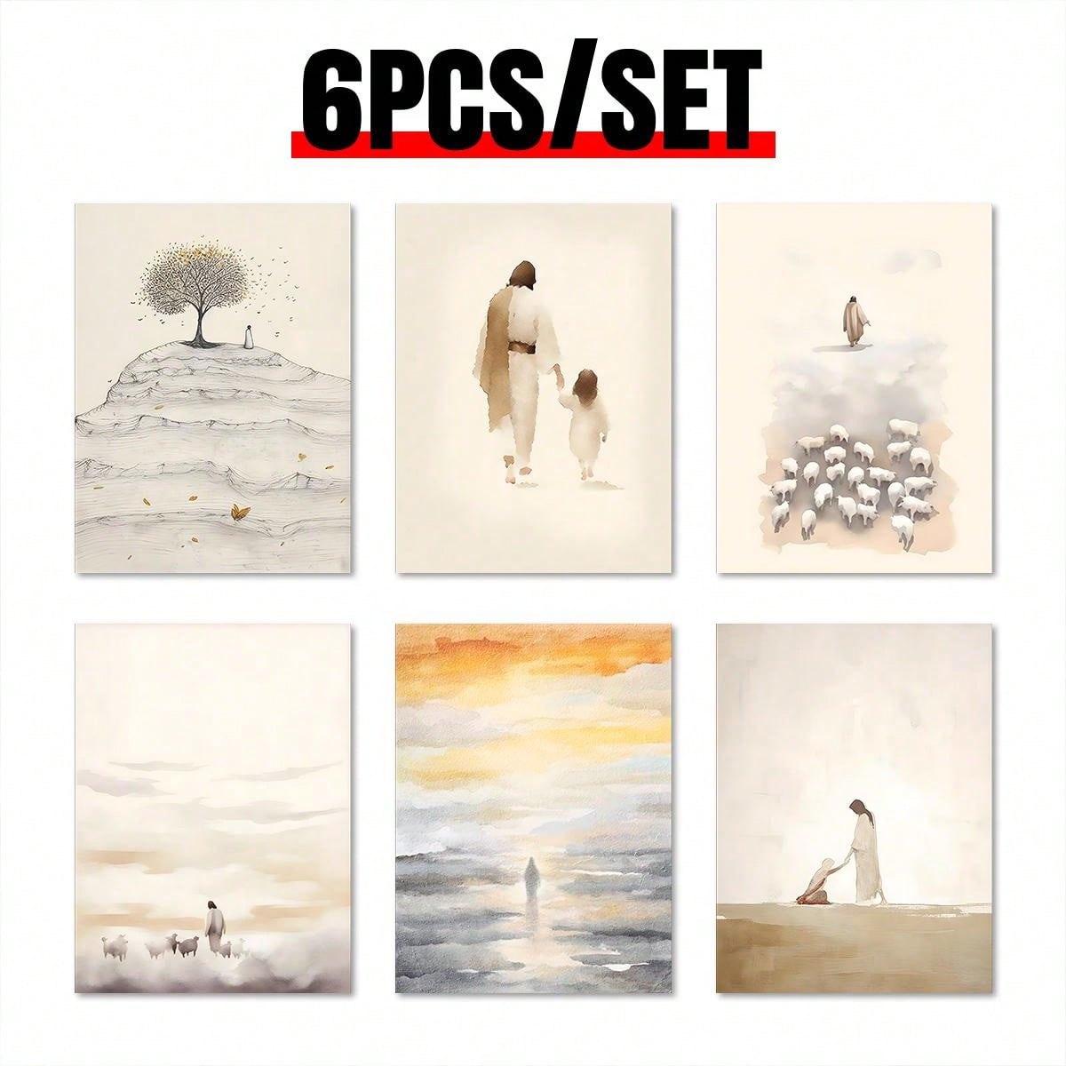 Divine Inspiration: 6-Piece Christian Canvas Poster Set for Home Decor