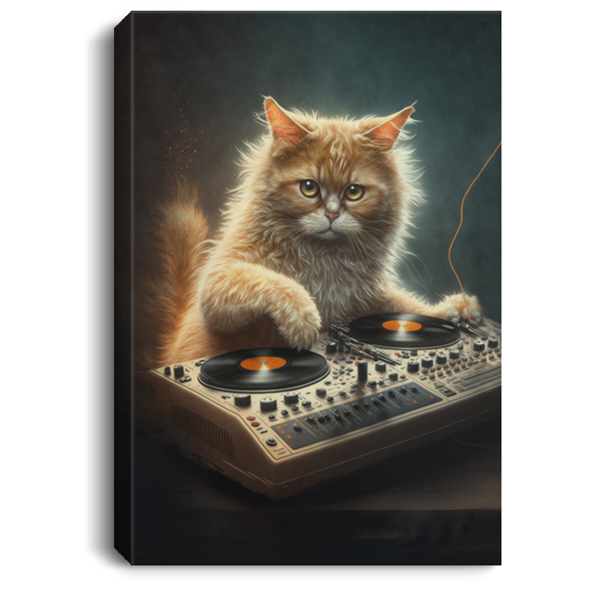 This canvas print of DJ Cat captures the image of a cool cat in the heat of the moment. Featuring vivid and detailed colours to bring the image to life, this canvas is the perfect choice for music enthusiasts and DJs. With the highest quality canvas and printing technology, this product is sure to take pride of place in your music-themed room.