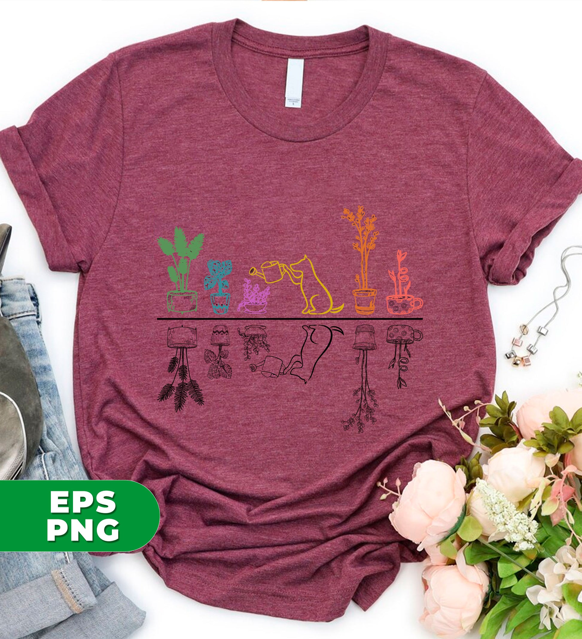 Dogs And Plants, Love Dog, Dog Mom, Dogs Watering Plants, Digital Files, Png Sublimation