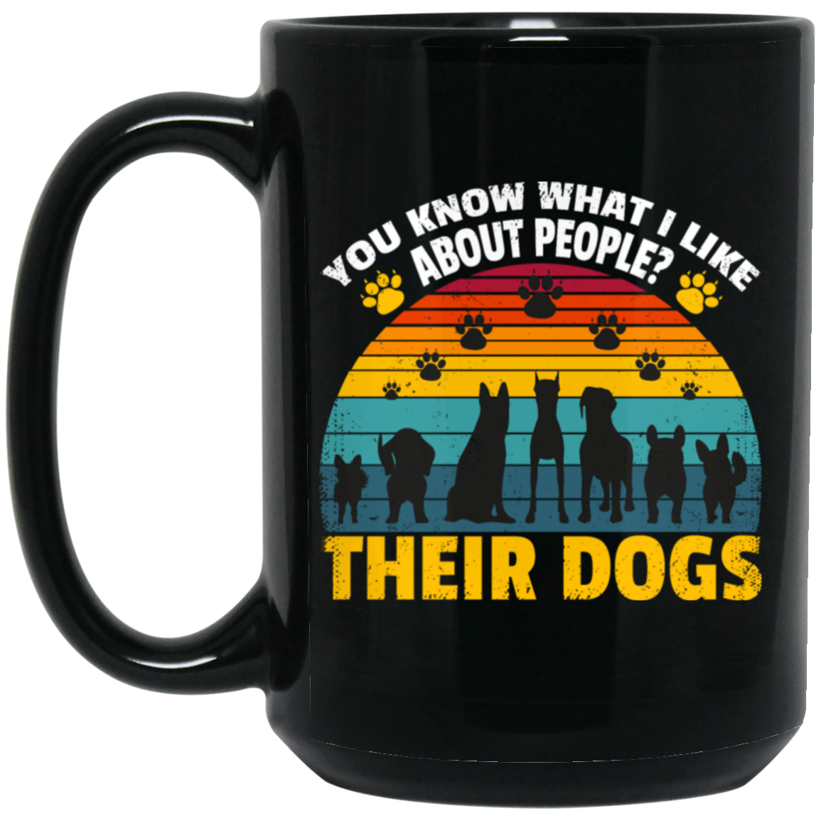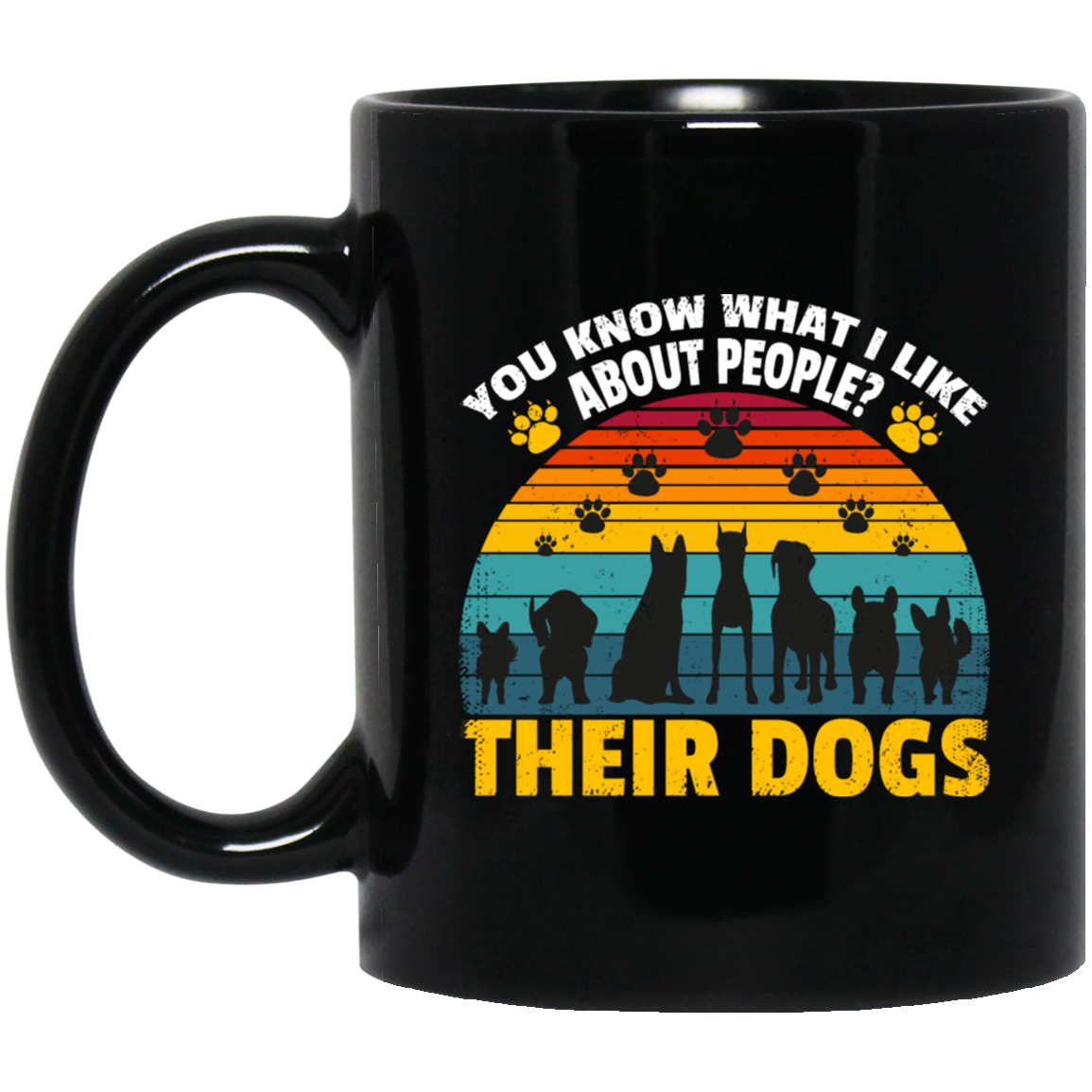 Dogs Lover Retro Gift, You Know What I Like About People, I Like Their Dogs Black Mug