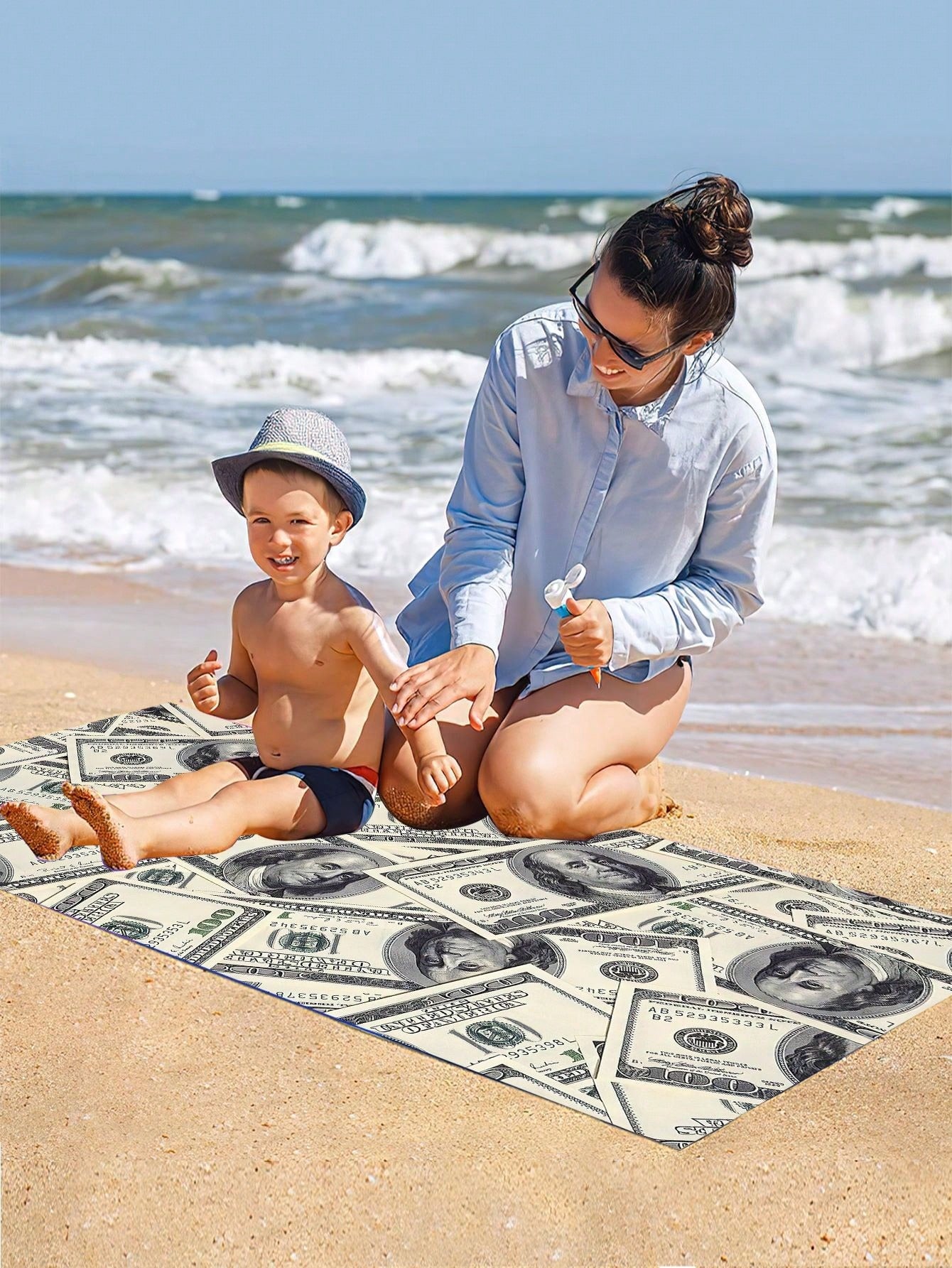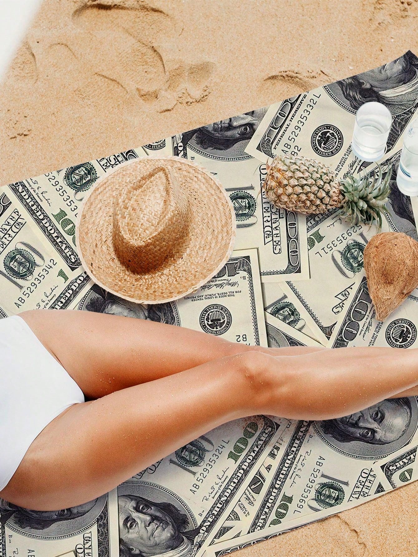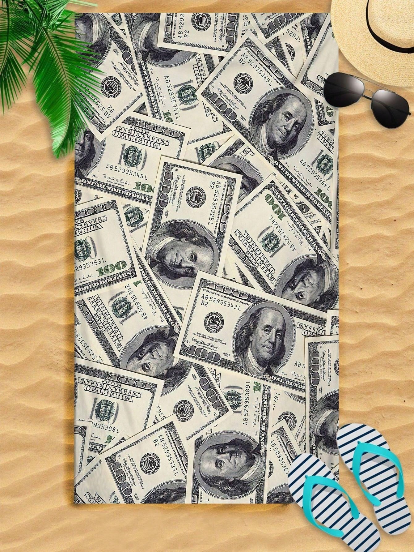 Dollar Pattern Printed Beach Towel: Your Essential Travel Companion for Swimming, Camping, and Yoga!