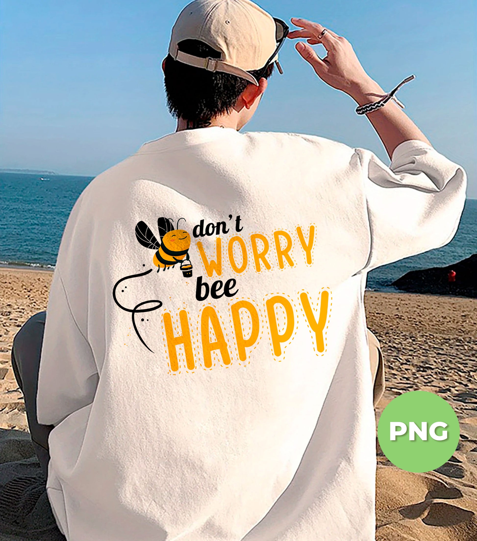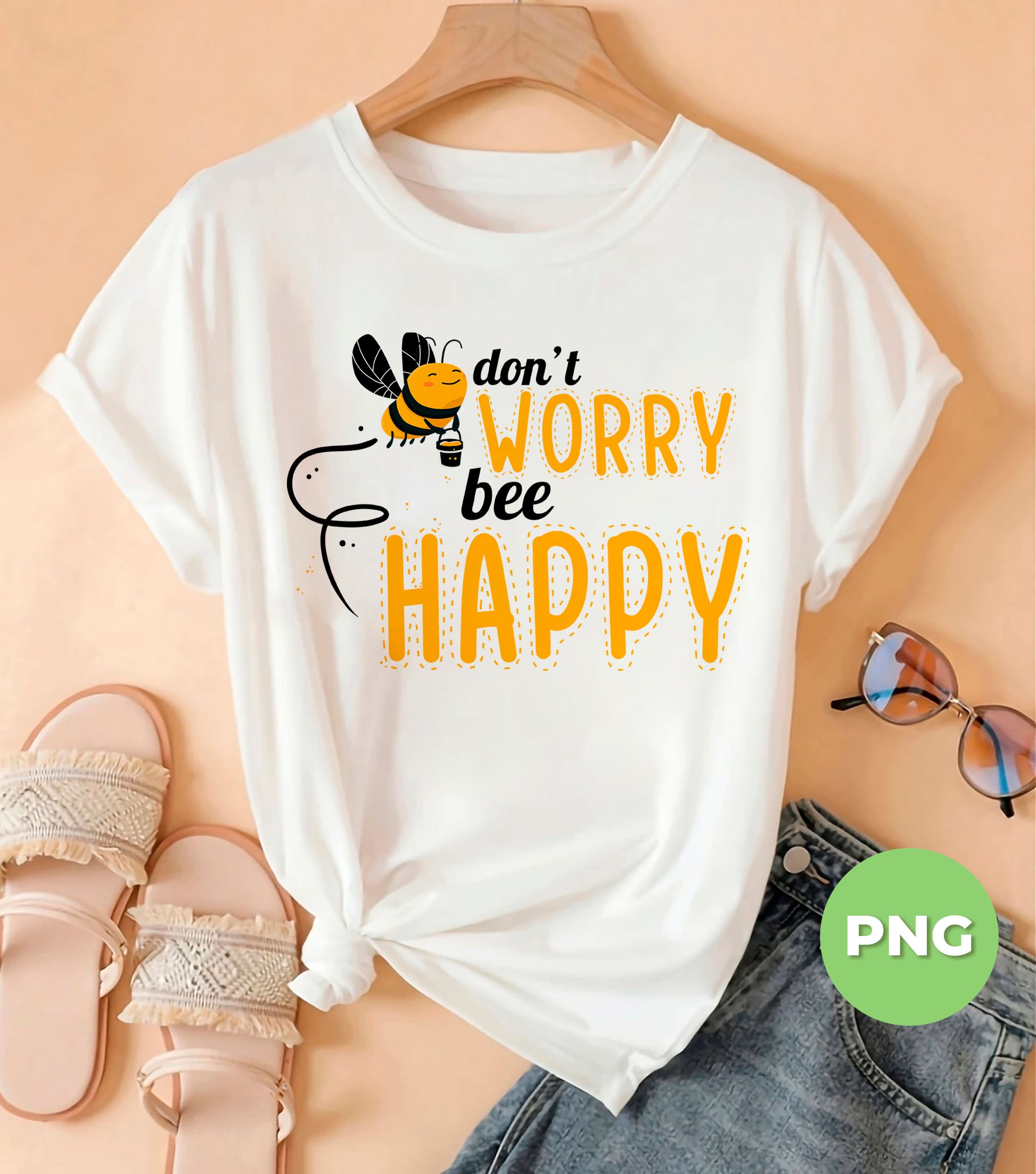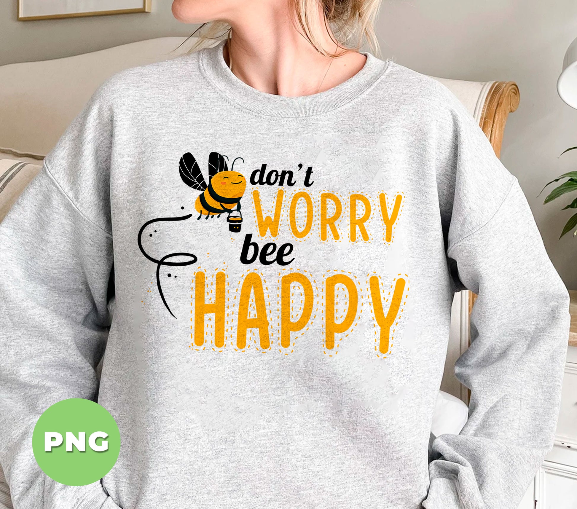 Don’t Worry Bee Happy PNG, Cute Bumble Bee Sublimation Design, Funny Positive Quote, Happy Bee, Honey Bee