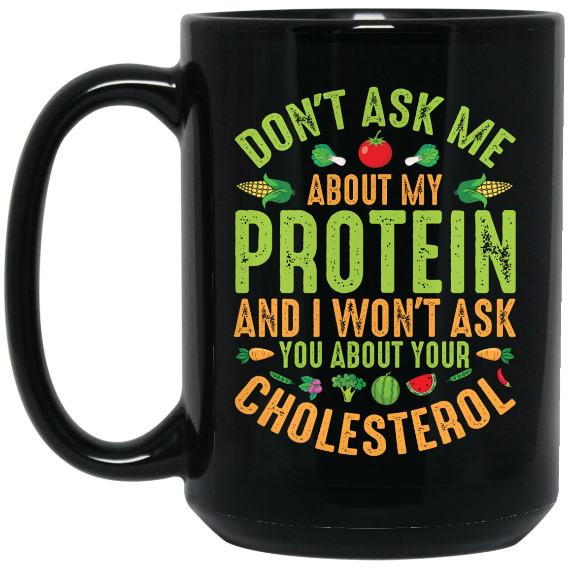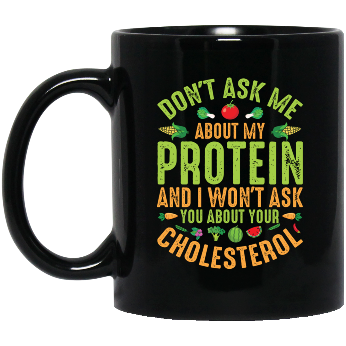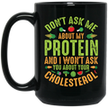 Don't Ask Me About My Protein, I Won't Ask You About Your Cholesterol Black Mug