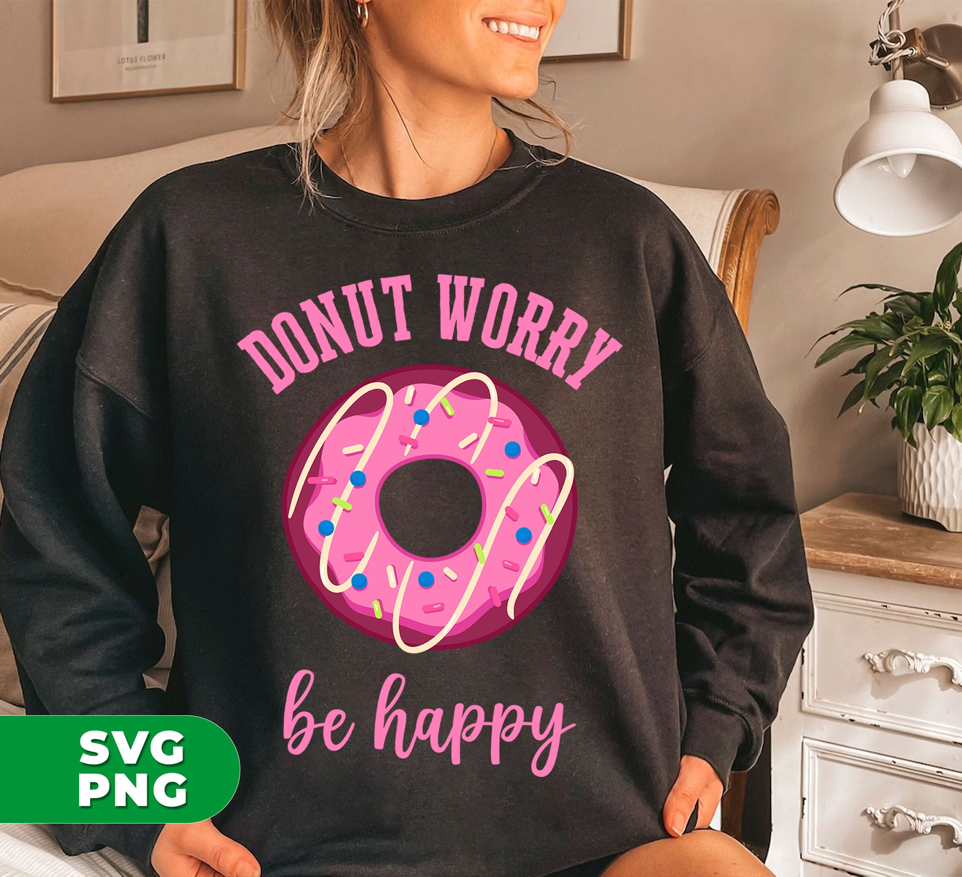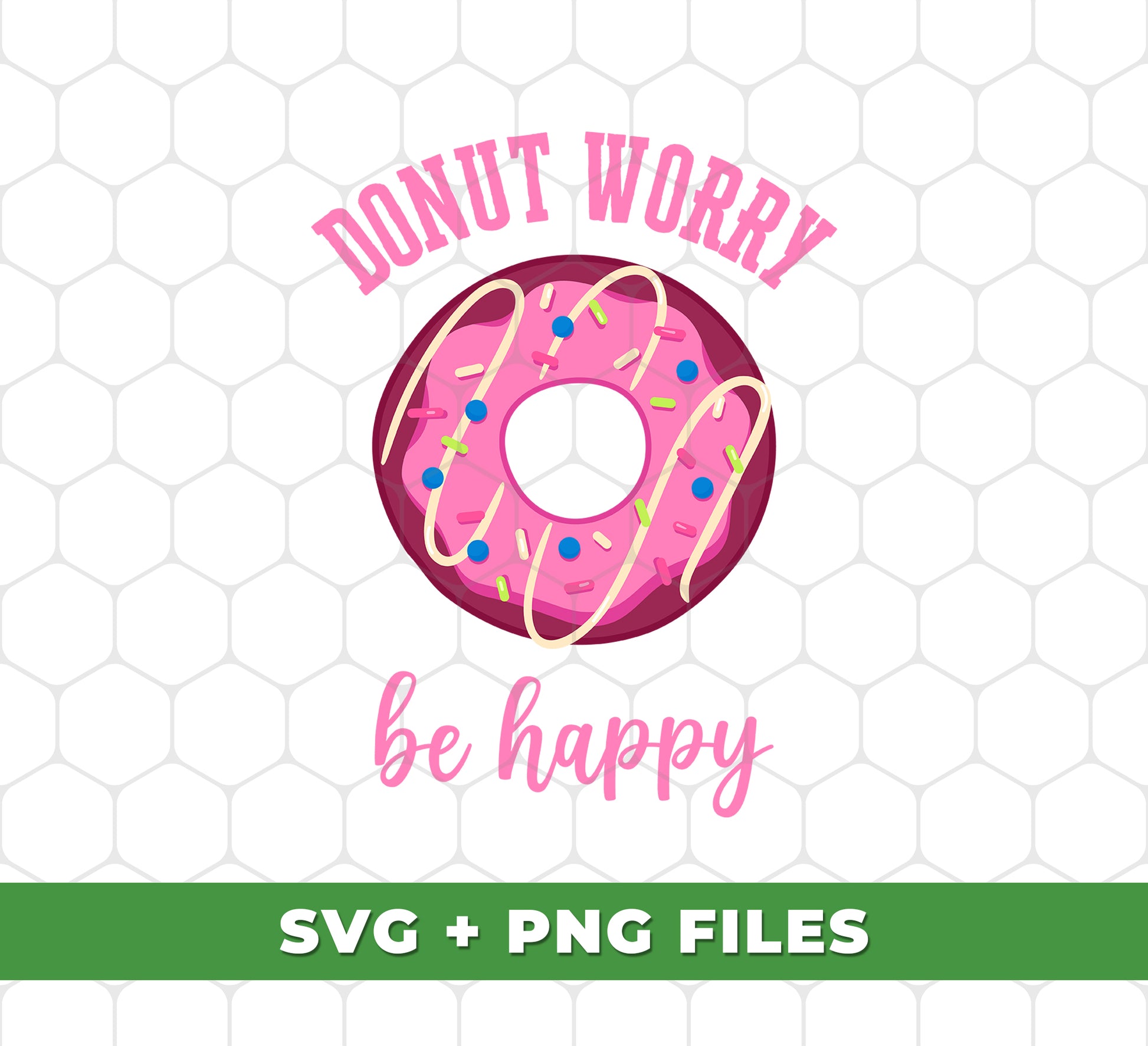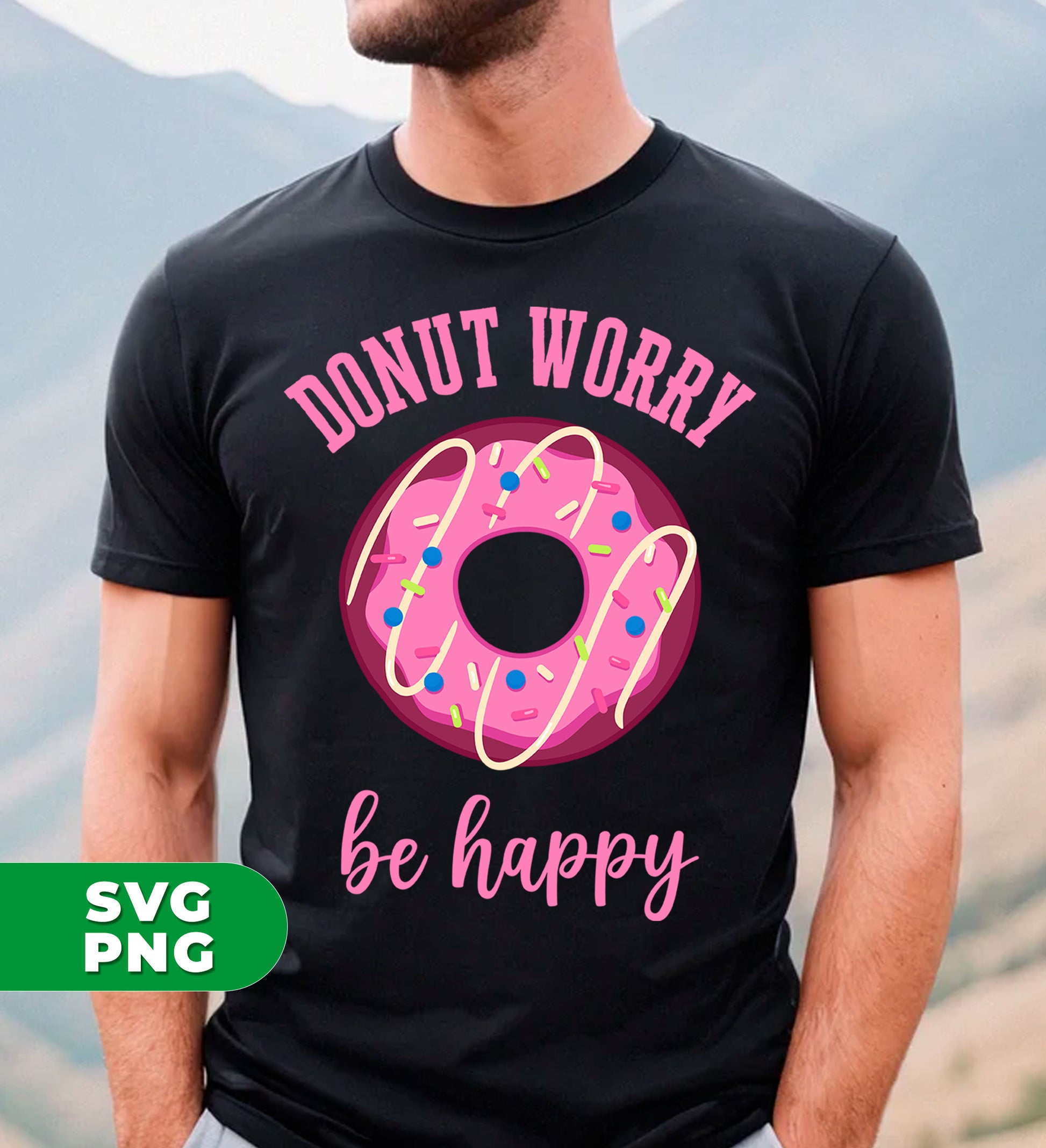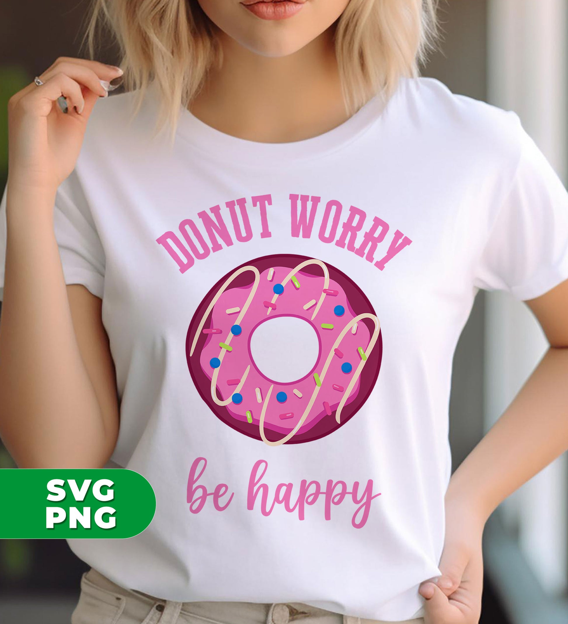 Donut Worry, Be Happy, Pink Donut, Love Doughnut, Digital Files, Png Sublimation