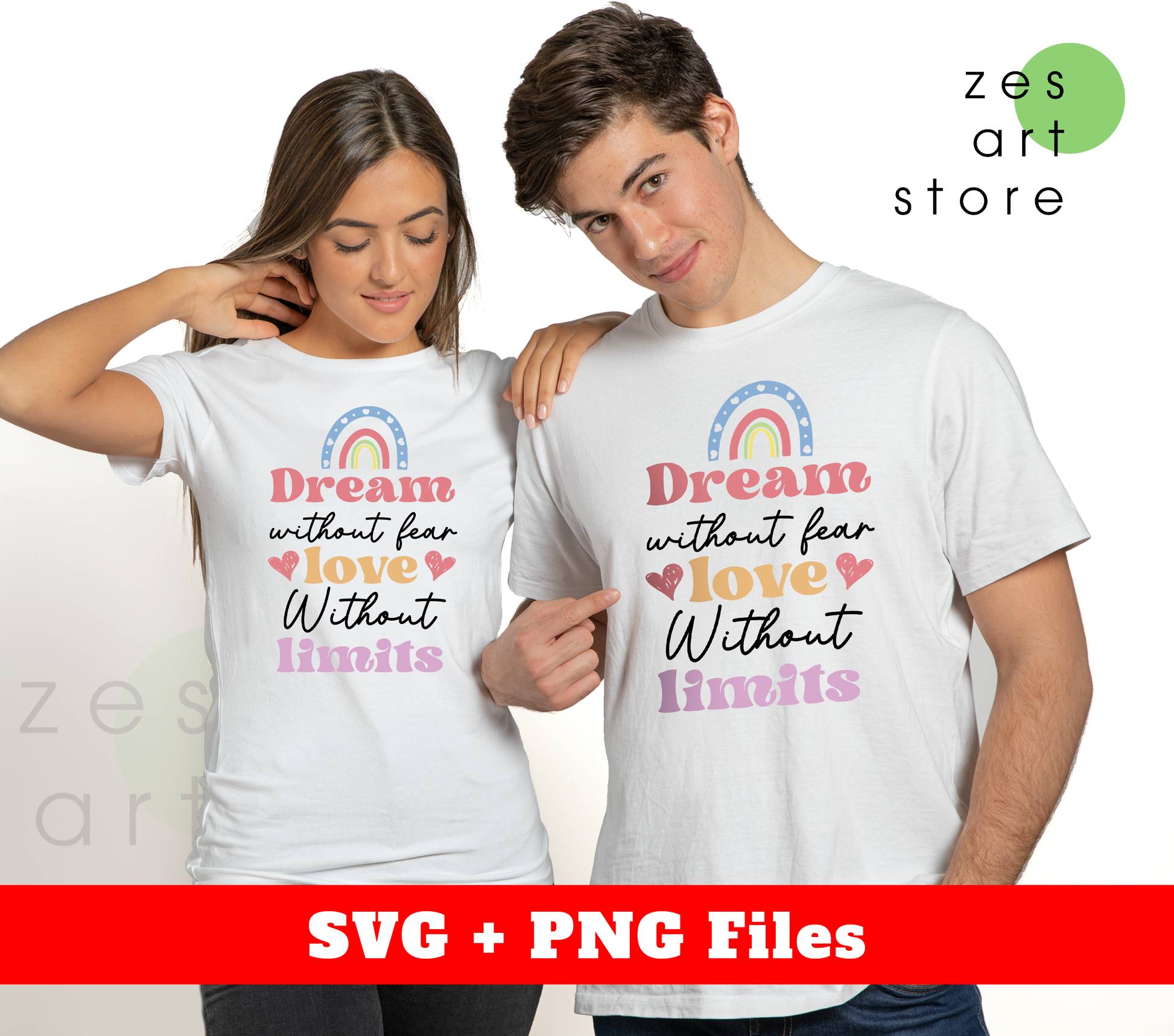 Dream Without Fear, Love Without Limits, Rainbow Dream, Svg Files, Png Sublimation