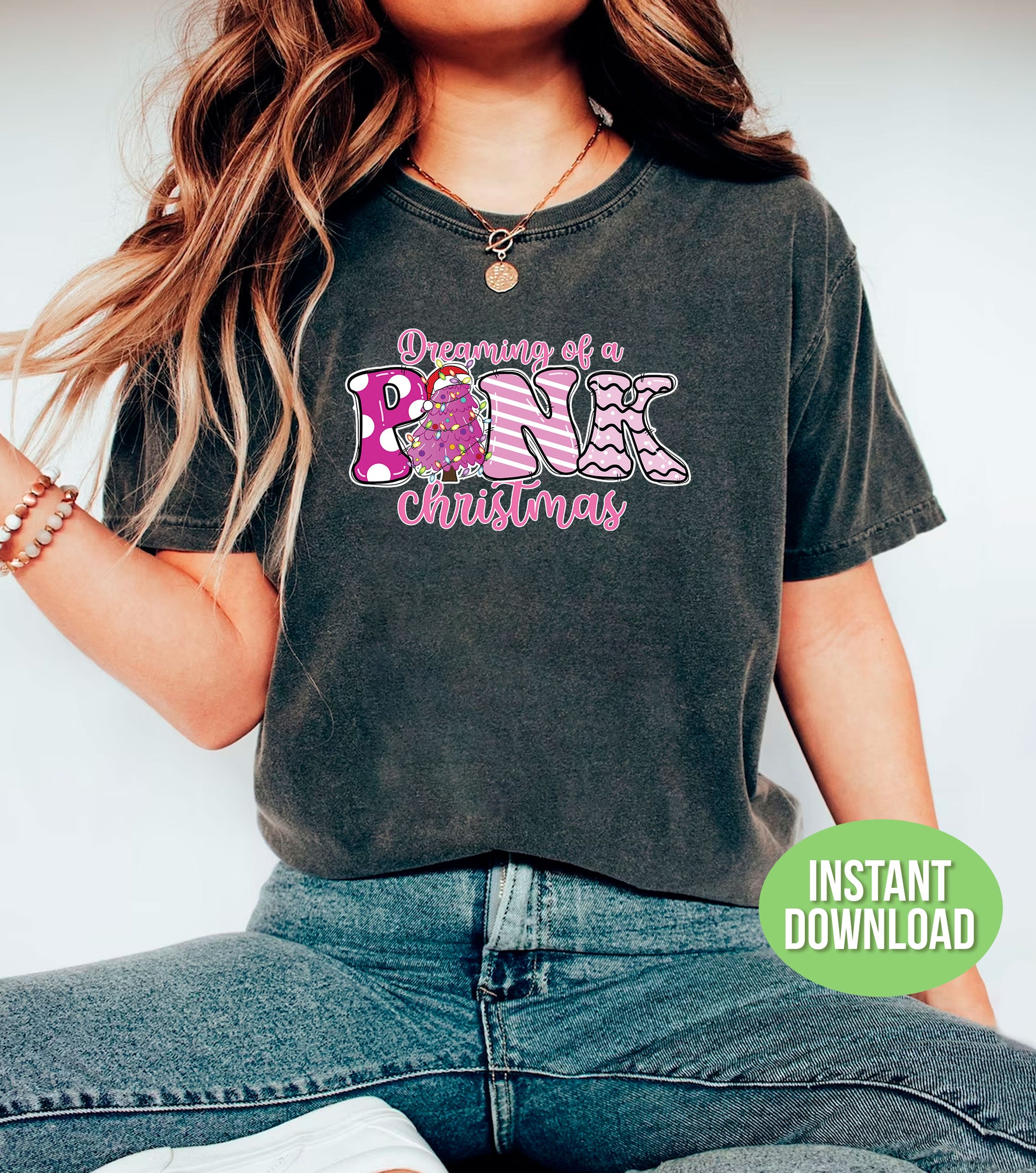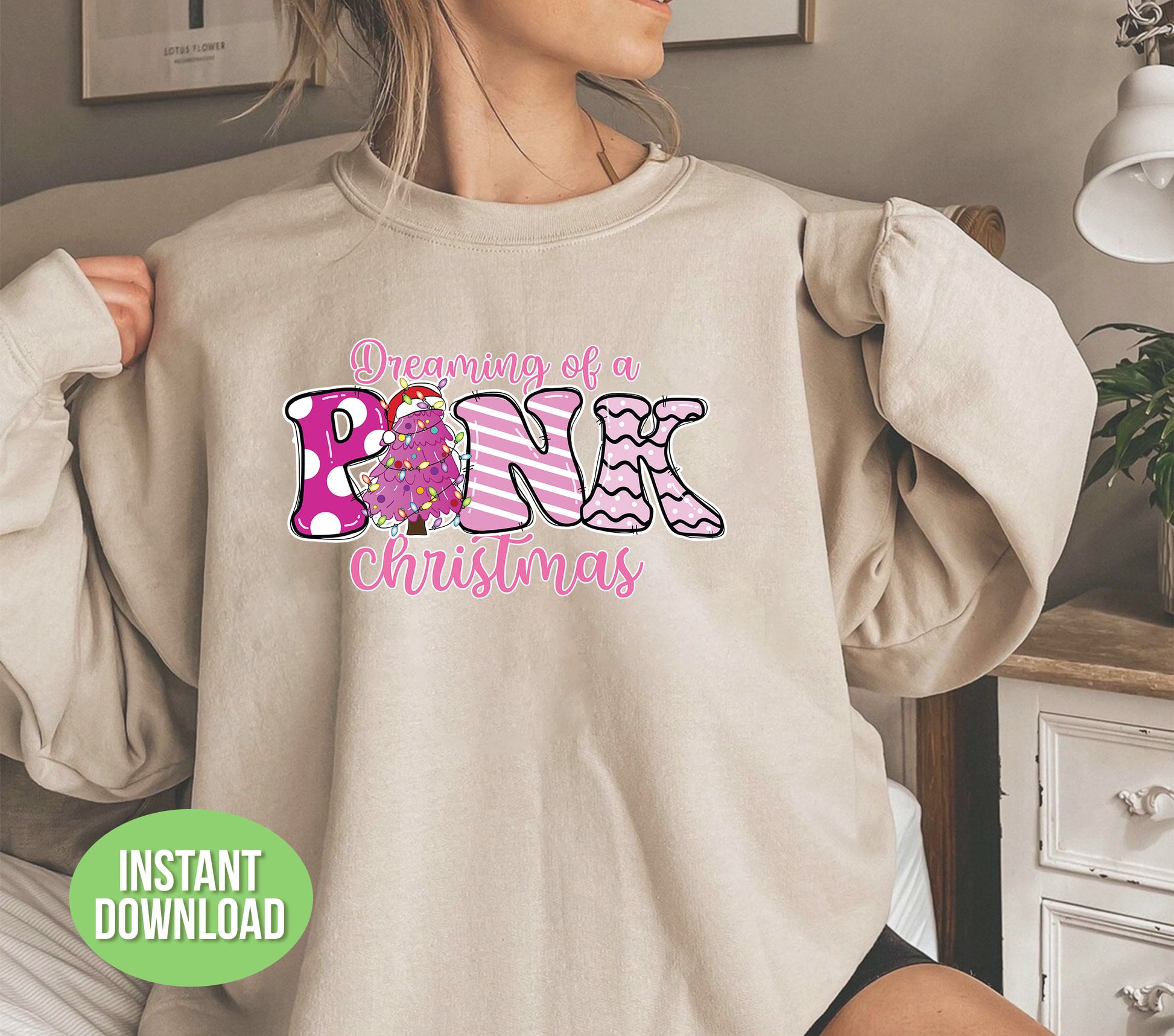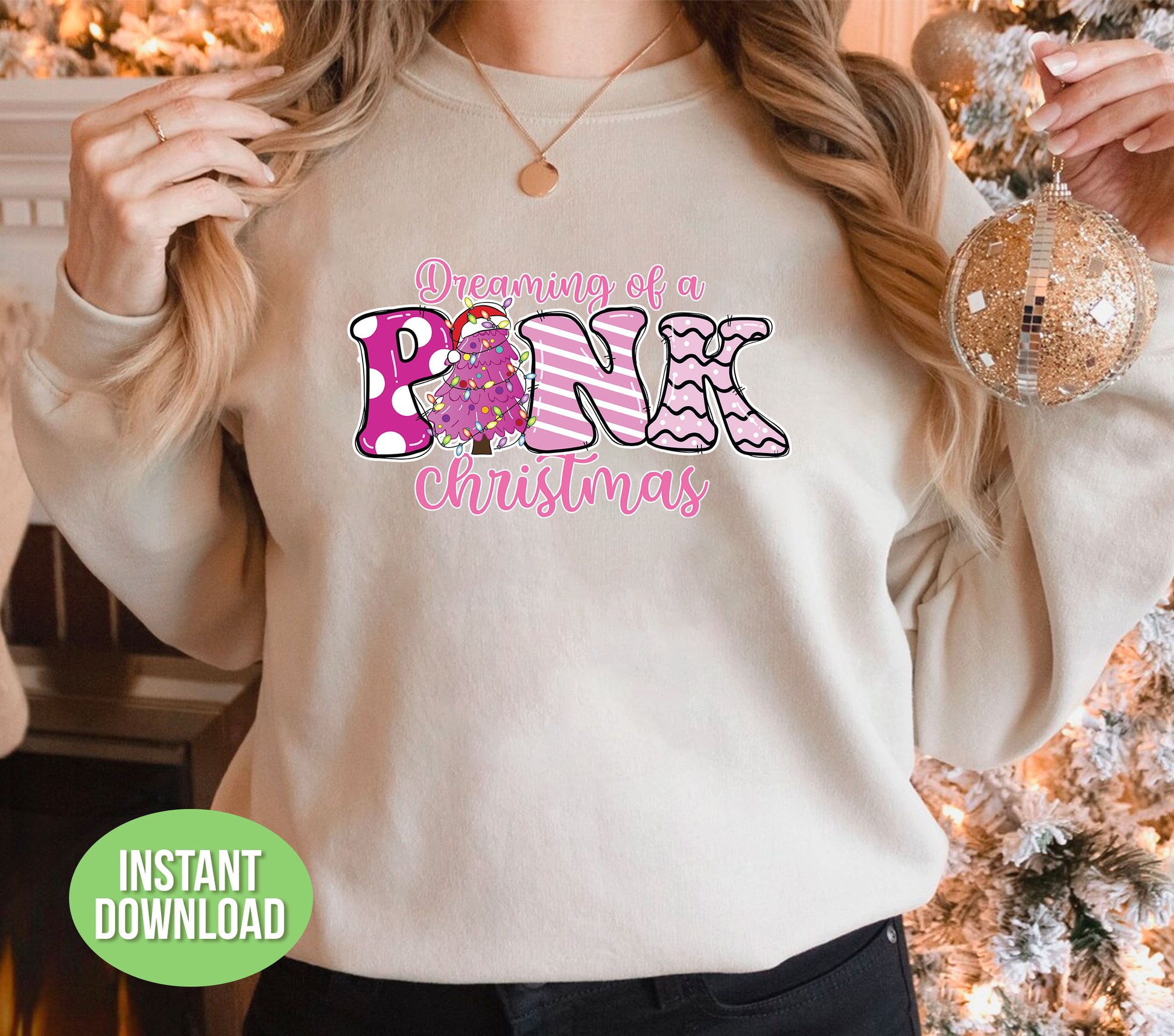 Dreaming Of A Pink Christmas, Merry Christmas, Trendy Christmas, Png Sublimation
