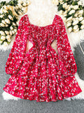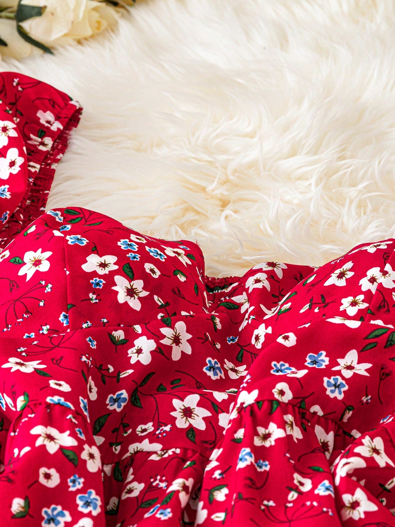 DreamSkyne Plus Size Women Elegant Floral Layered Ruffle Waist Midi Dress