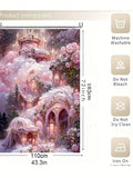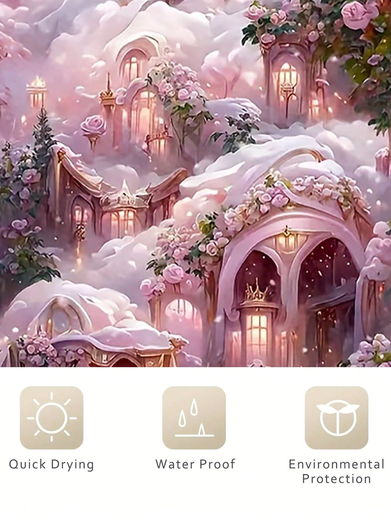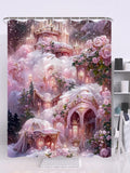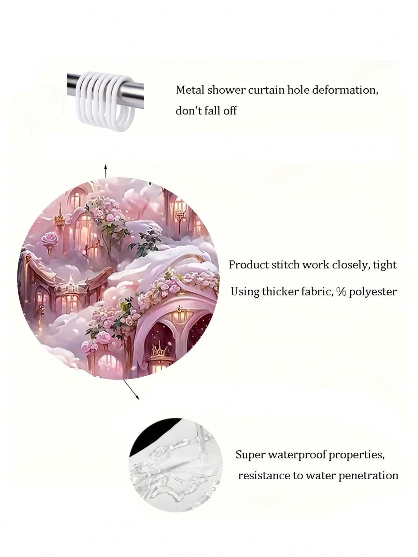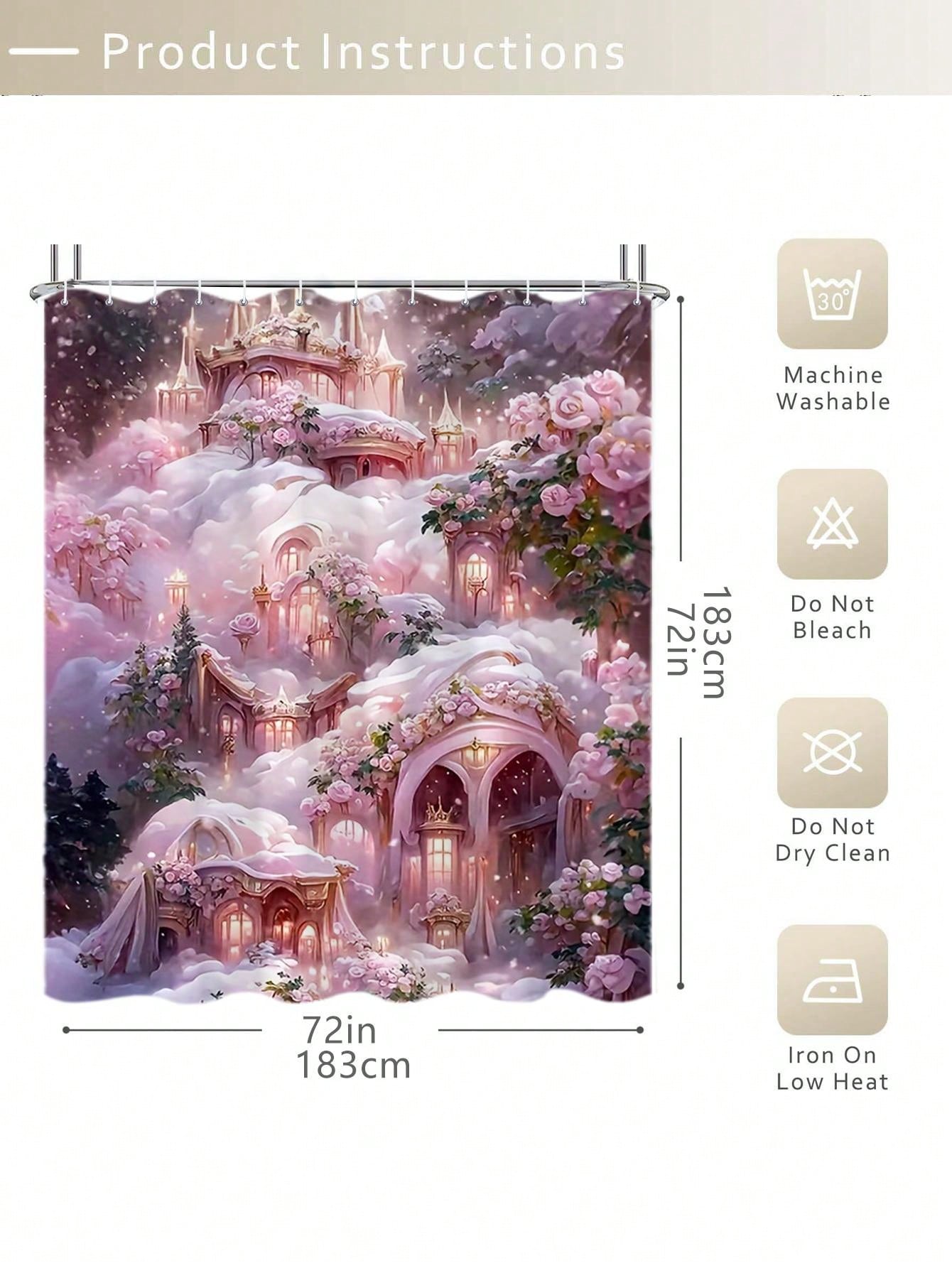 Dreamy Pink House Pattern Printed Shower Curtain: Easy Installation with Hooks Included