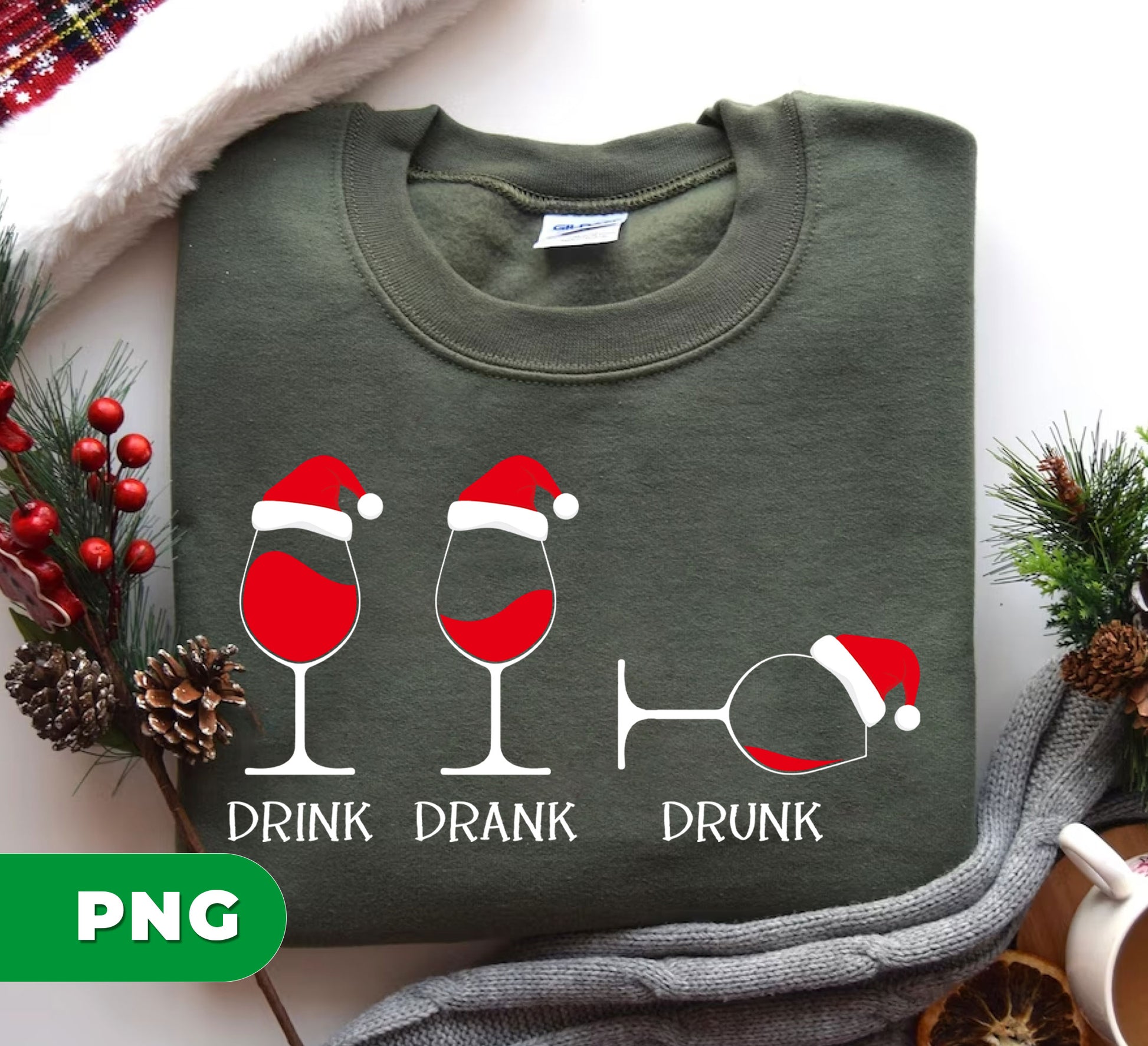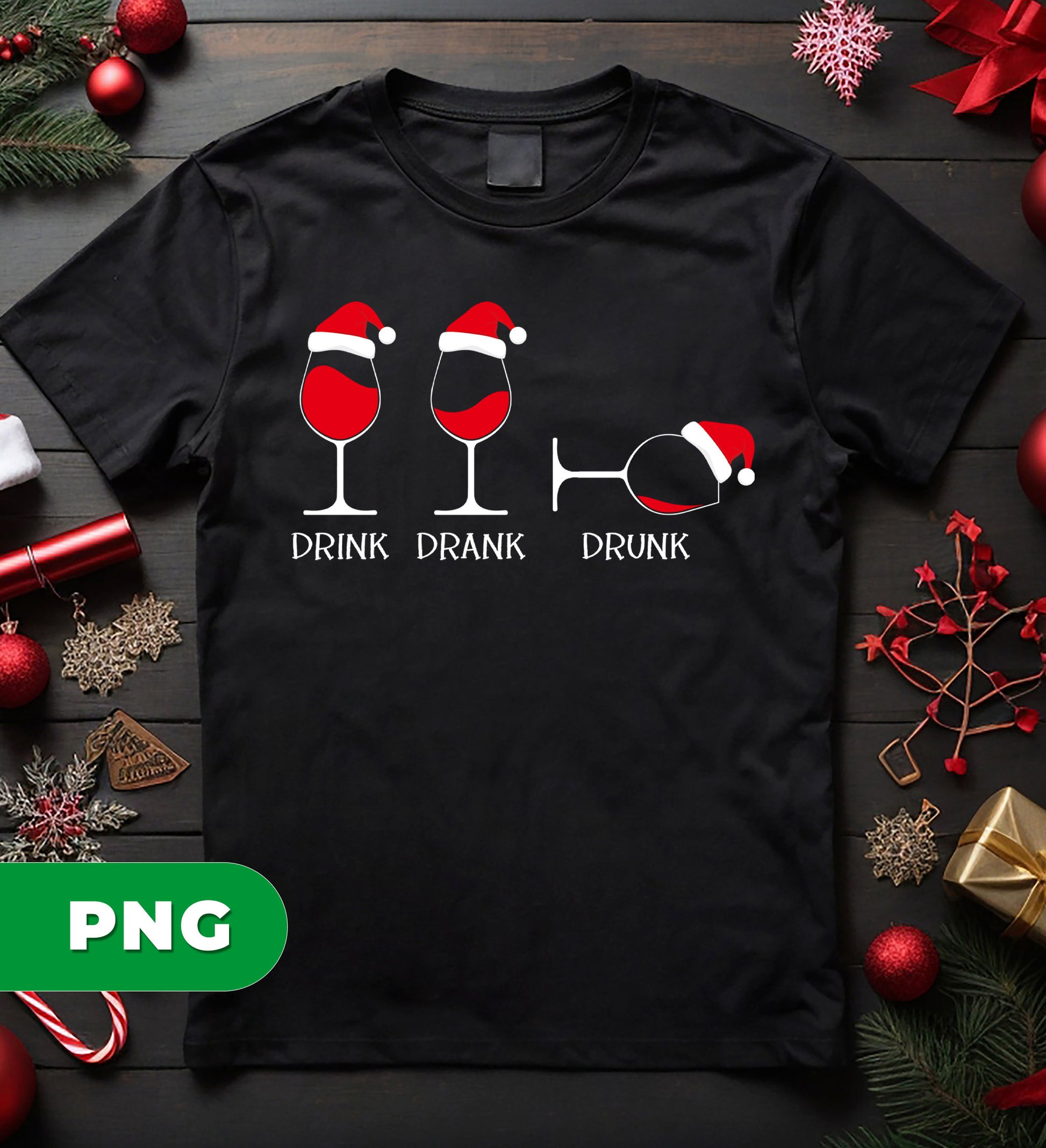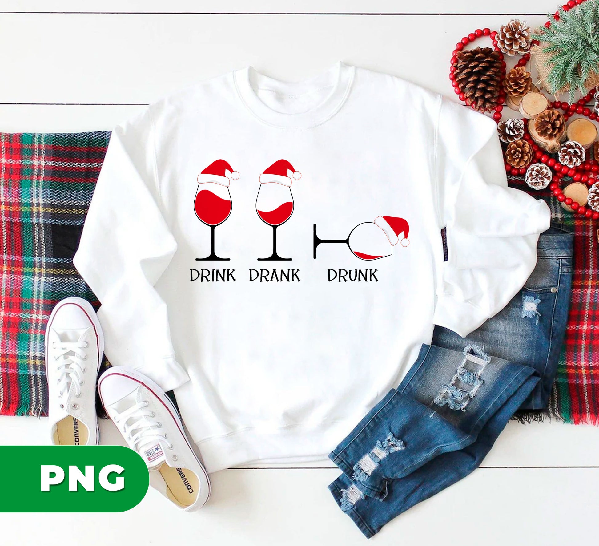 Drink Drank Drunk Christmas PNG, Funny Wine Glass Santa Hat Sublimation, Xmas Party Clipart, Drunk Santa Shirt, Holiday Humor Design