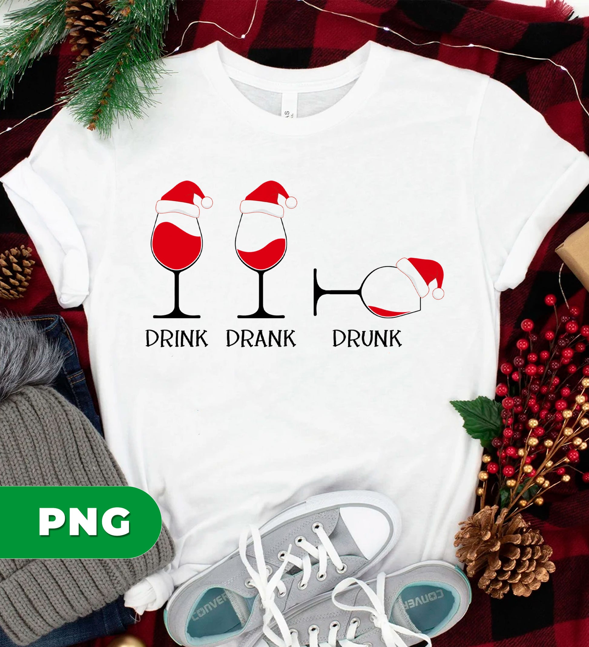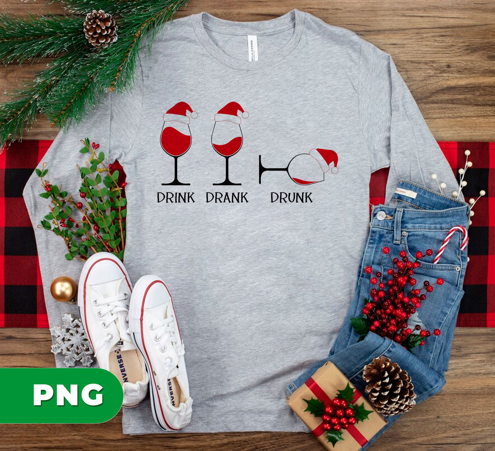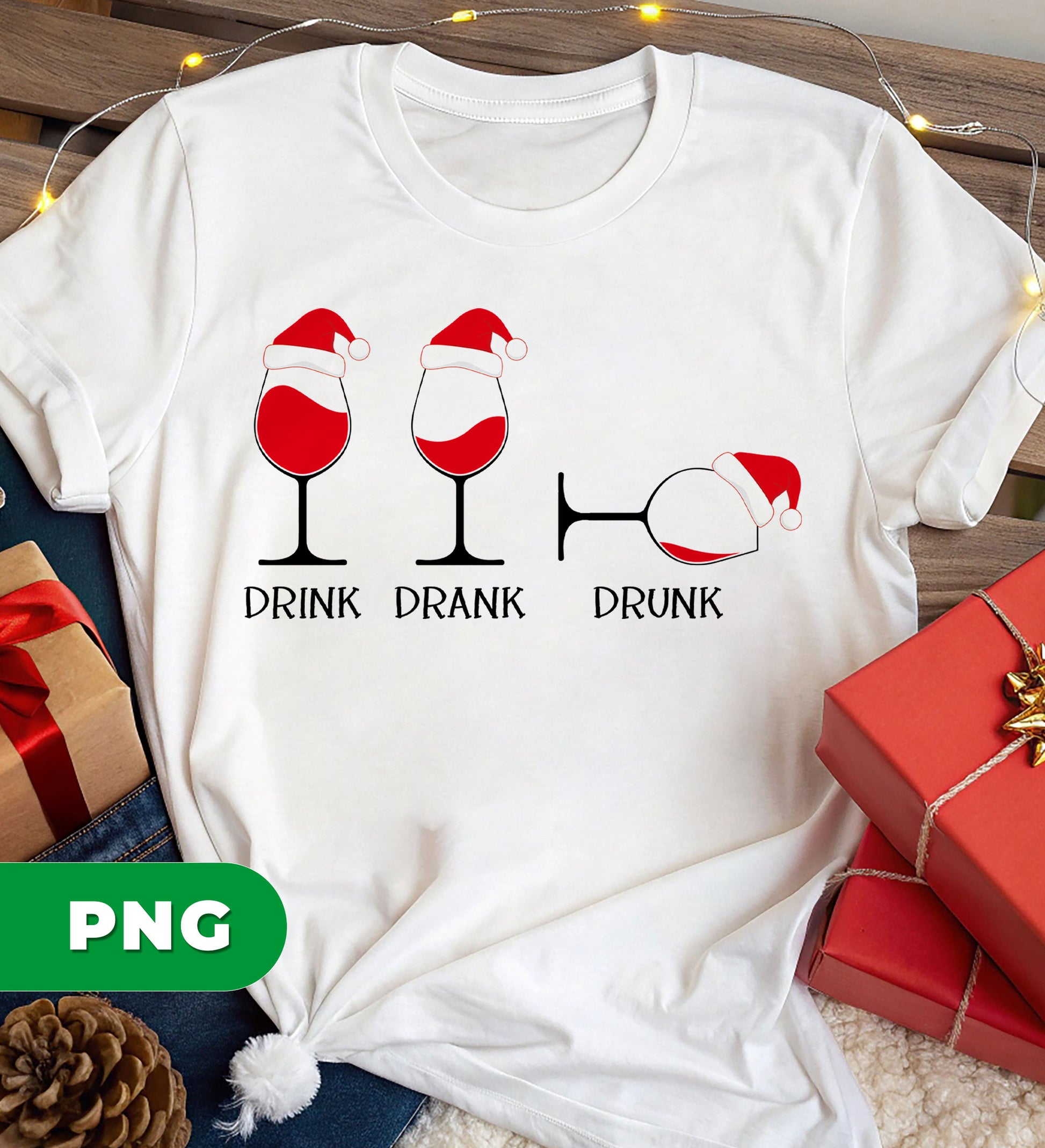 Drink Drank Drunk Christmas PNG, Funny Wine Glass Santa Hat Sublimation, Xmas Party Clipart, Drunk Santa Shirt, Holiday Humor Design