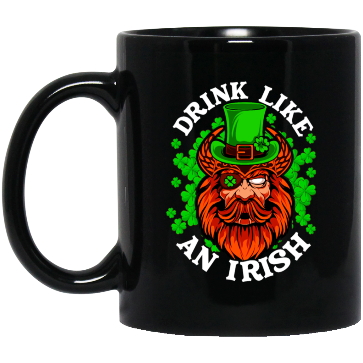 Drink Like An Irish, St Patrick Day, Pirate In Patrick Style, Funny Pirate Black Mug