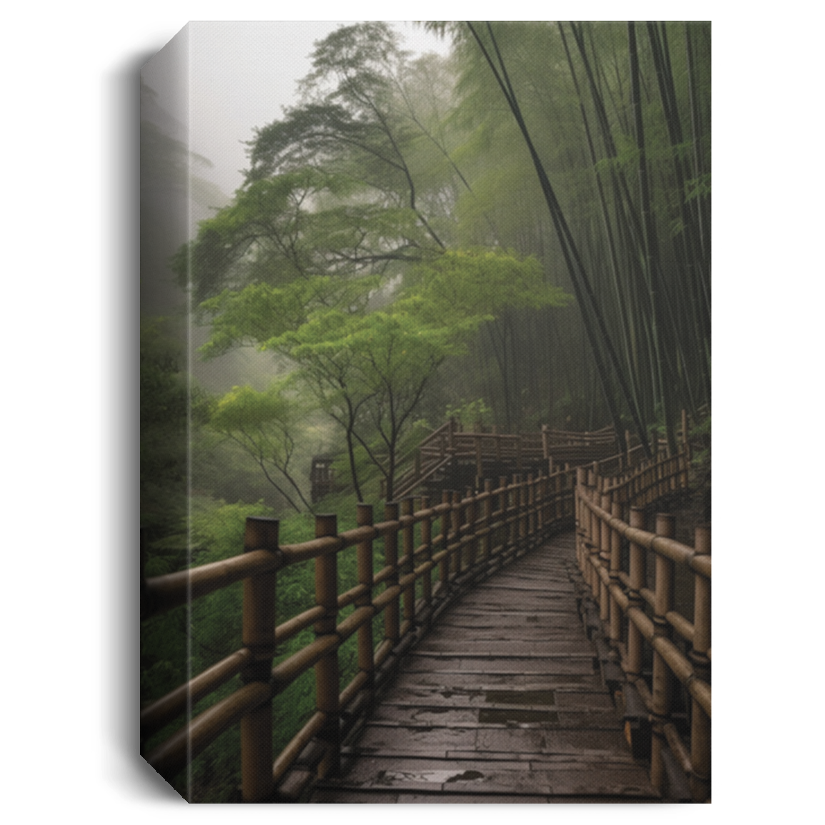 Drizzle In Bamboo Forest, Endless Mountain, Small Bridge In The Forest Canvas