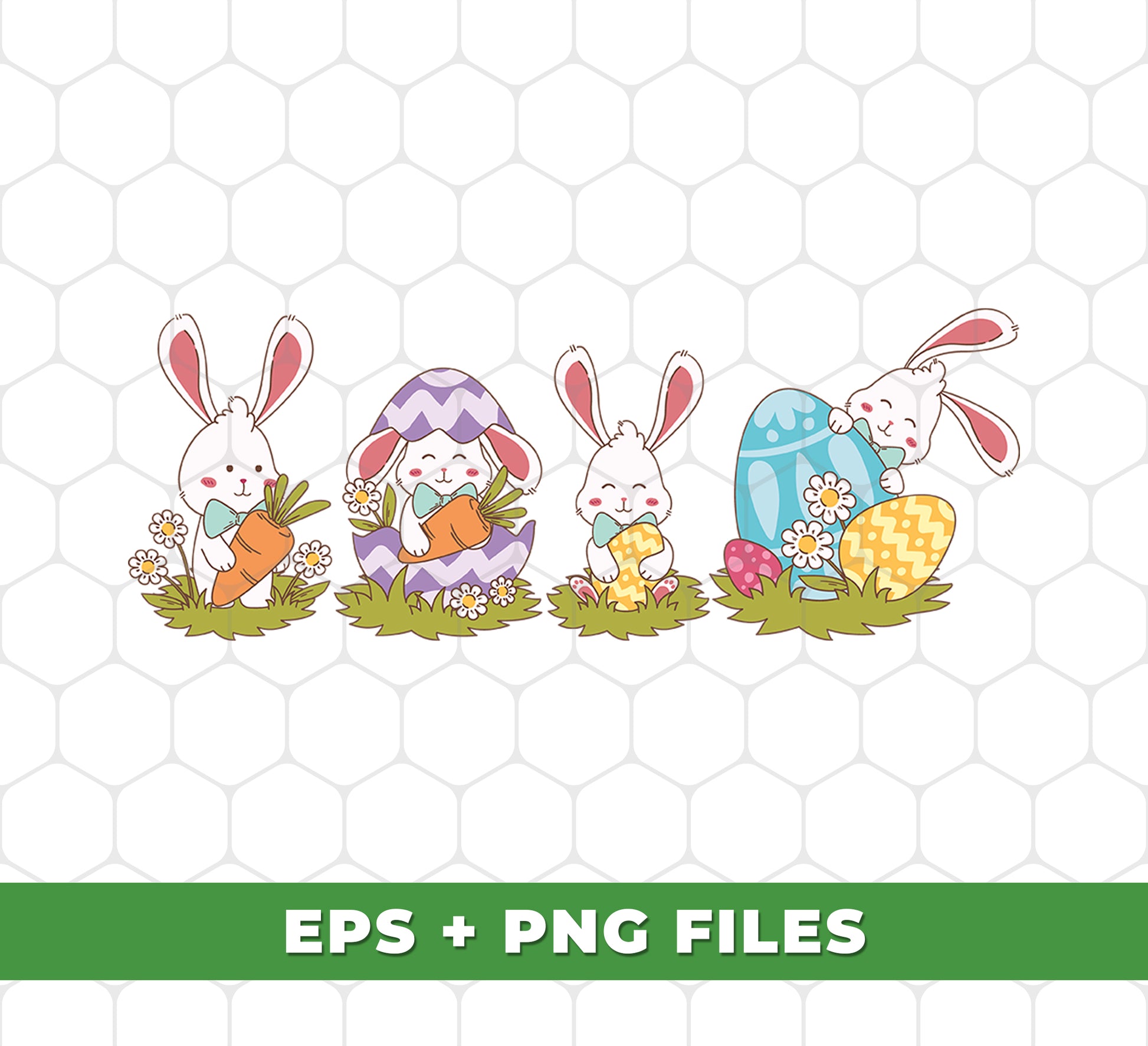 Celebrate Easter with these adorable digital files! 4 Bunnies Easter and colorful Easter eggs are included in this download, perfect for your next sublimation project. Enhance your designs with these high-quality Png files. Happy Easter!