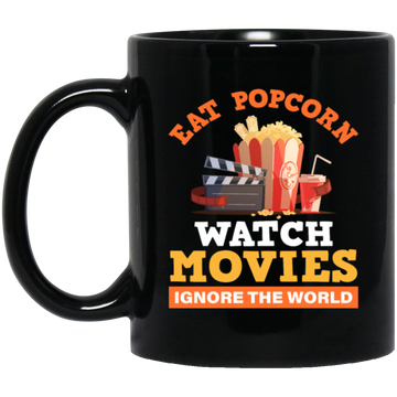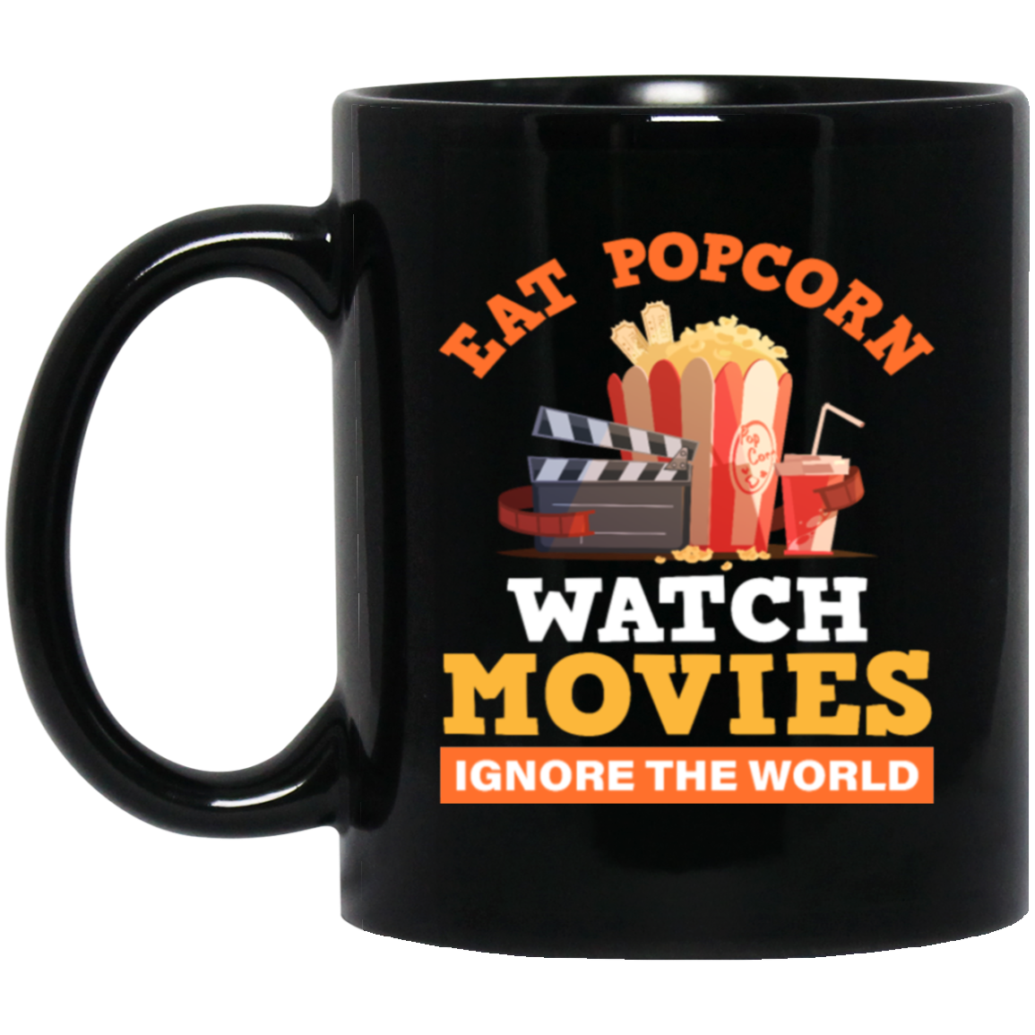 Eat Popcorn, Watch Movies, Ignore The World, My Life Is Movie, Retire And Relax Black Mug