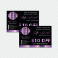 - Scratch to win: 3.5''x2'' ($5 off, $10 off, 5% off, 10% off, free shipping, try again, and blank card - you can write your discount.)