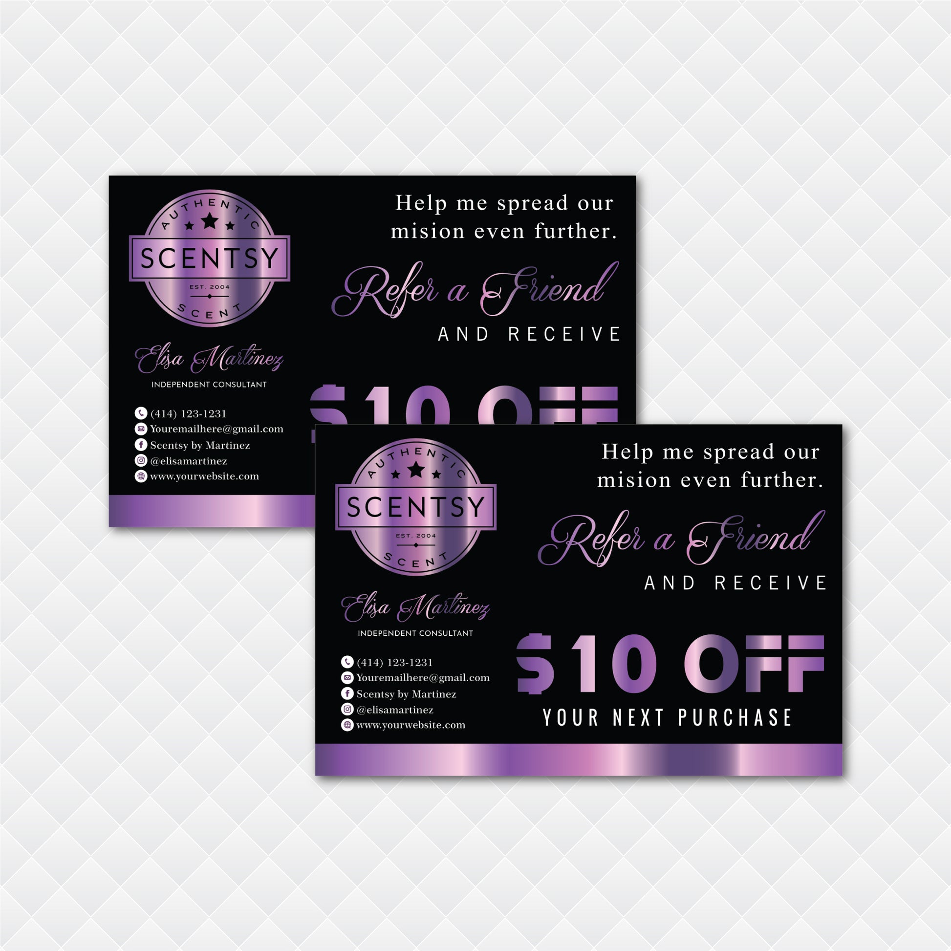 Editable Violet Lash Scentsy Refer A Friend Cards, Personalized Scentsy Business Cards SS13