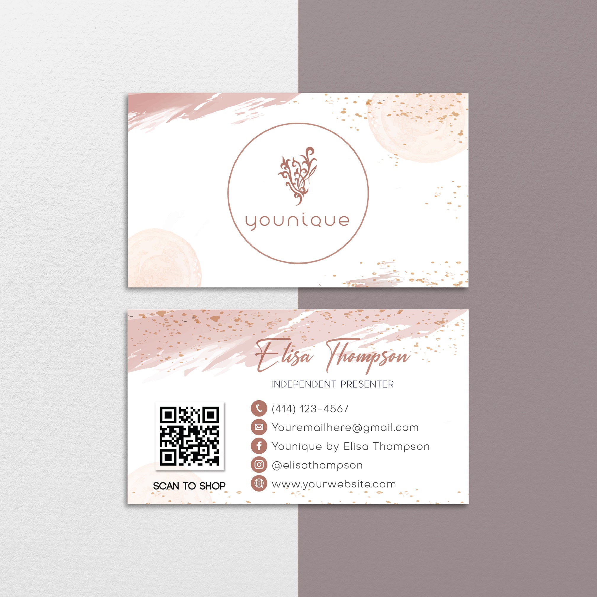 Editable Younique Business Card, Elegant Watercolor Business Card, Personalized Younique Business Cards YQ24